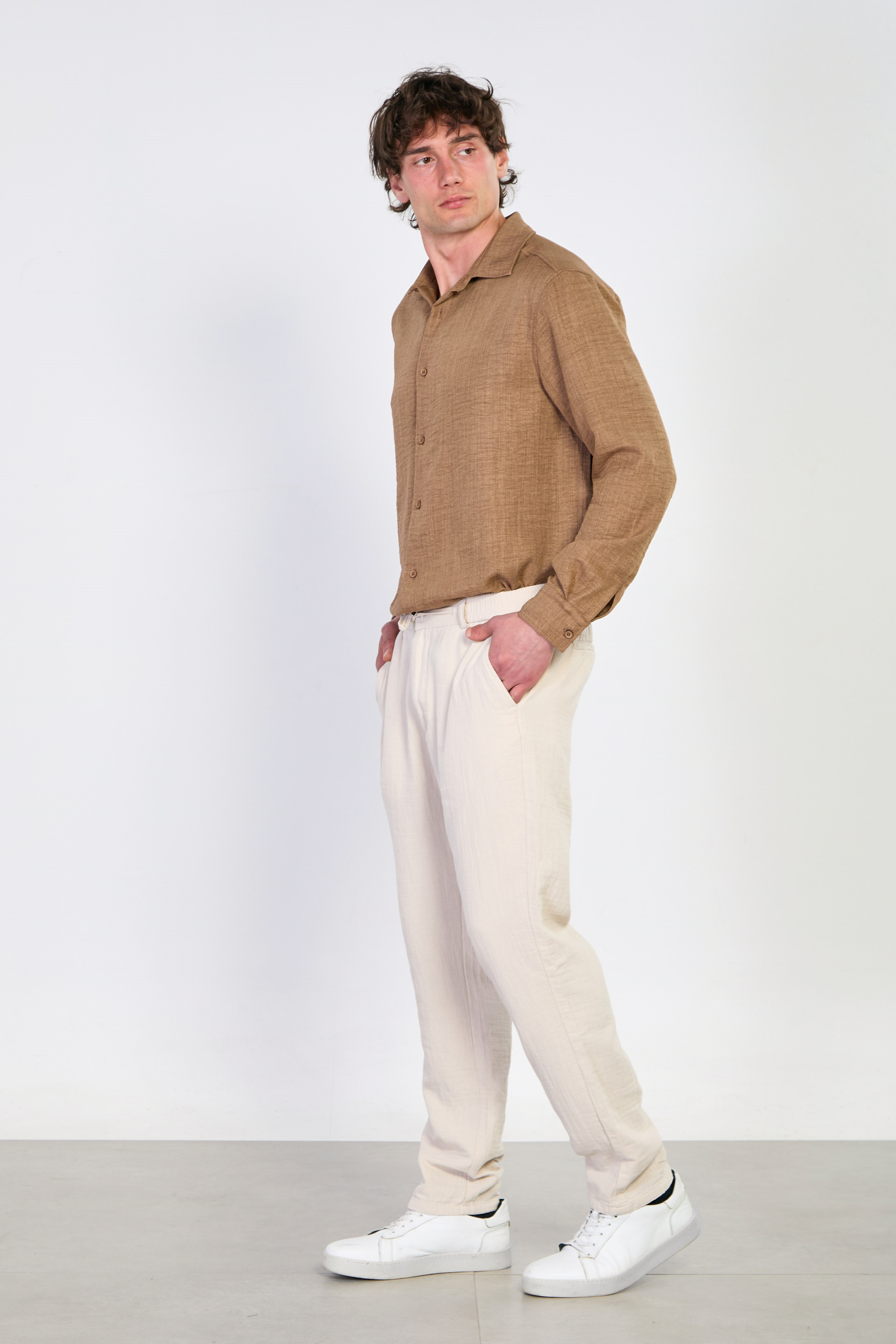 Erkek Müslin Jogger Pantolon - Taş