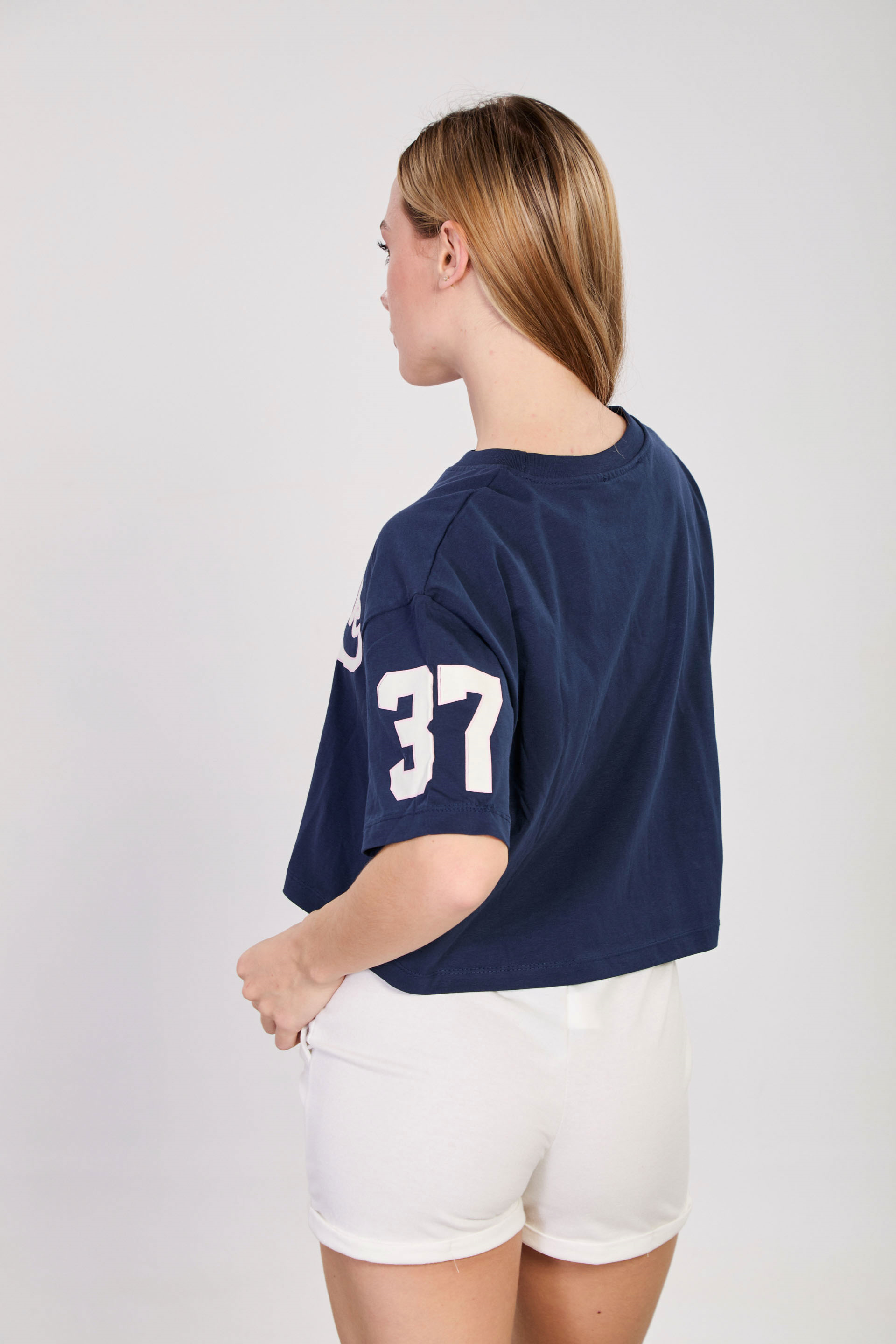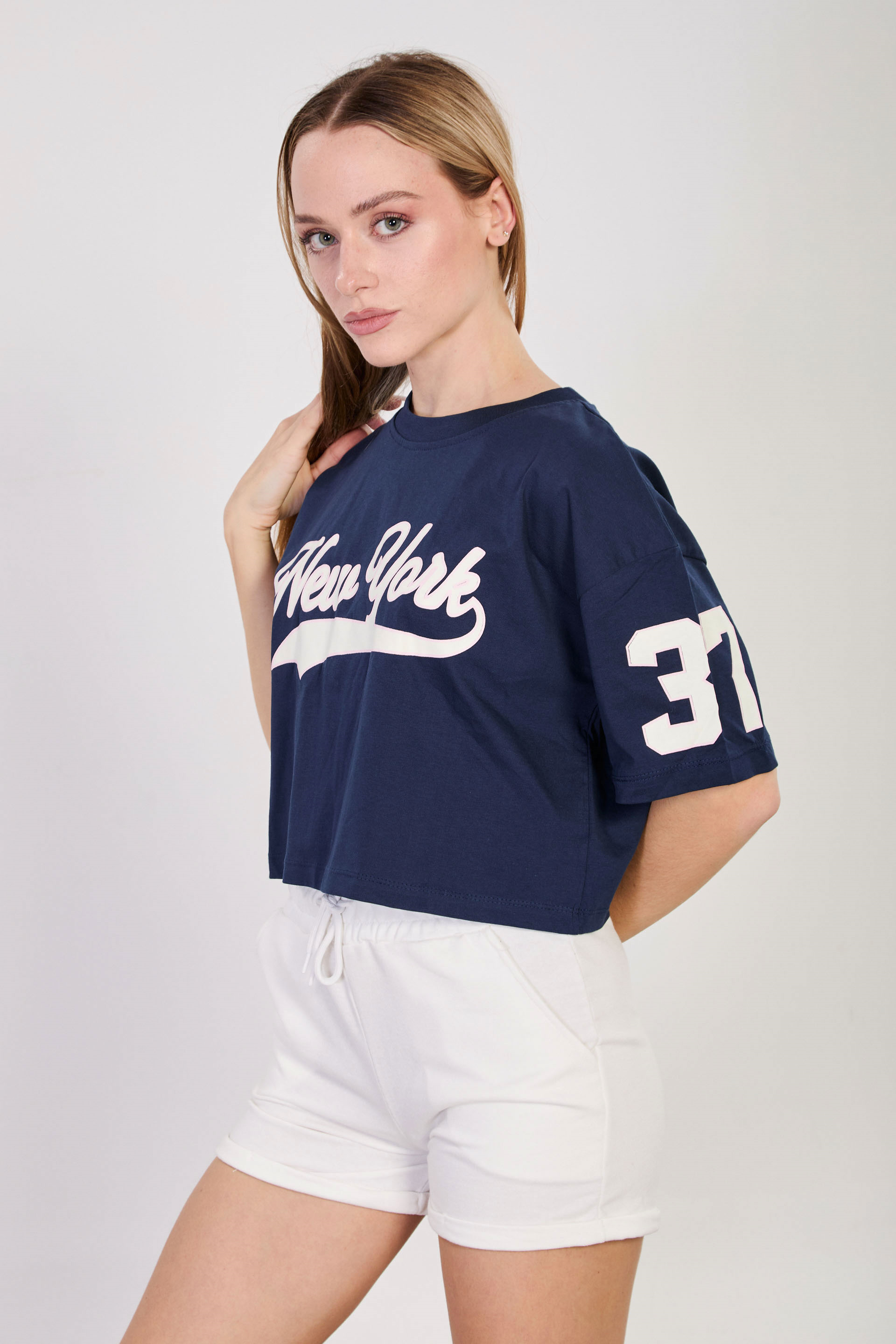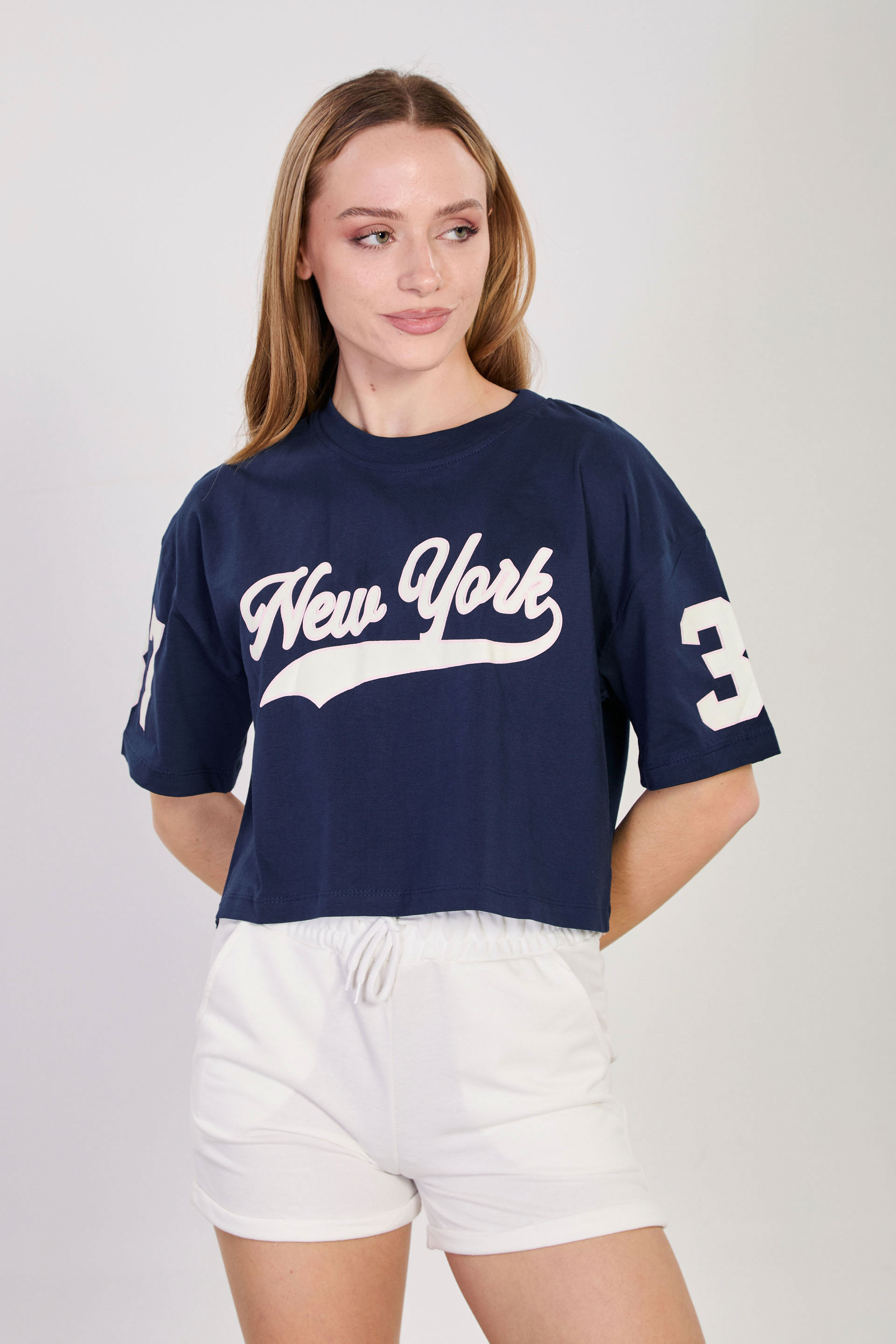 Kadın New York Baskılı Crop T-Shirt - Lacivert