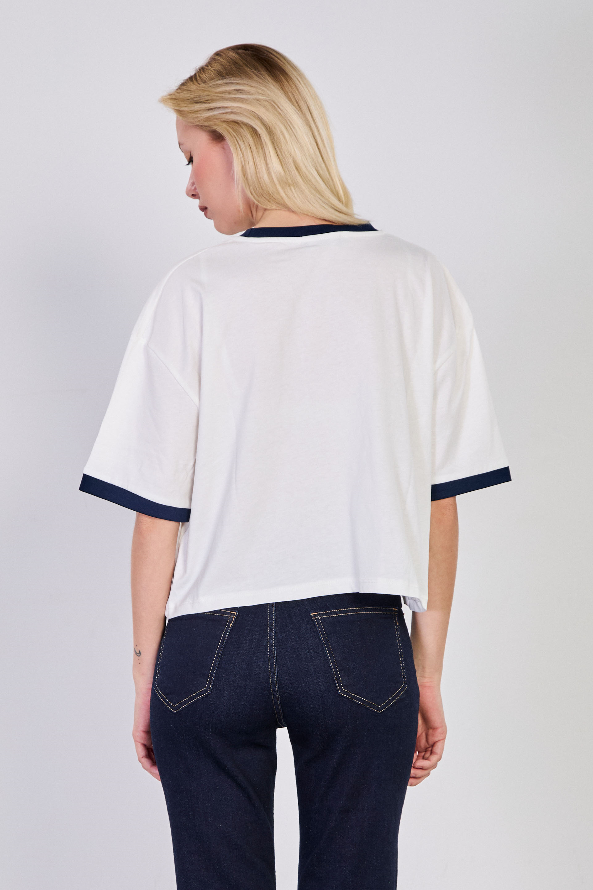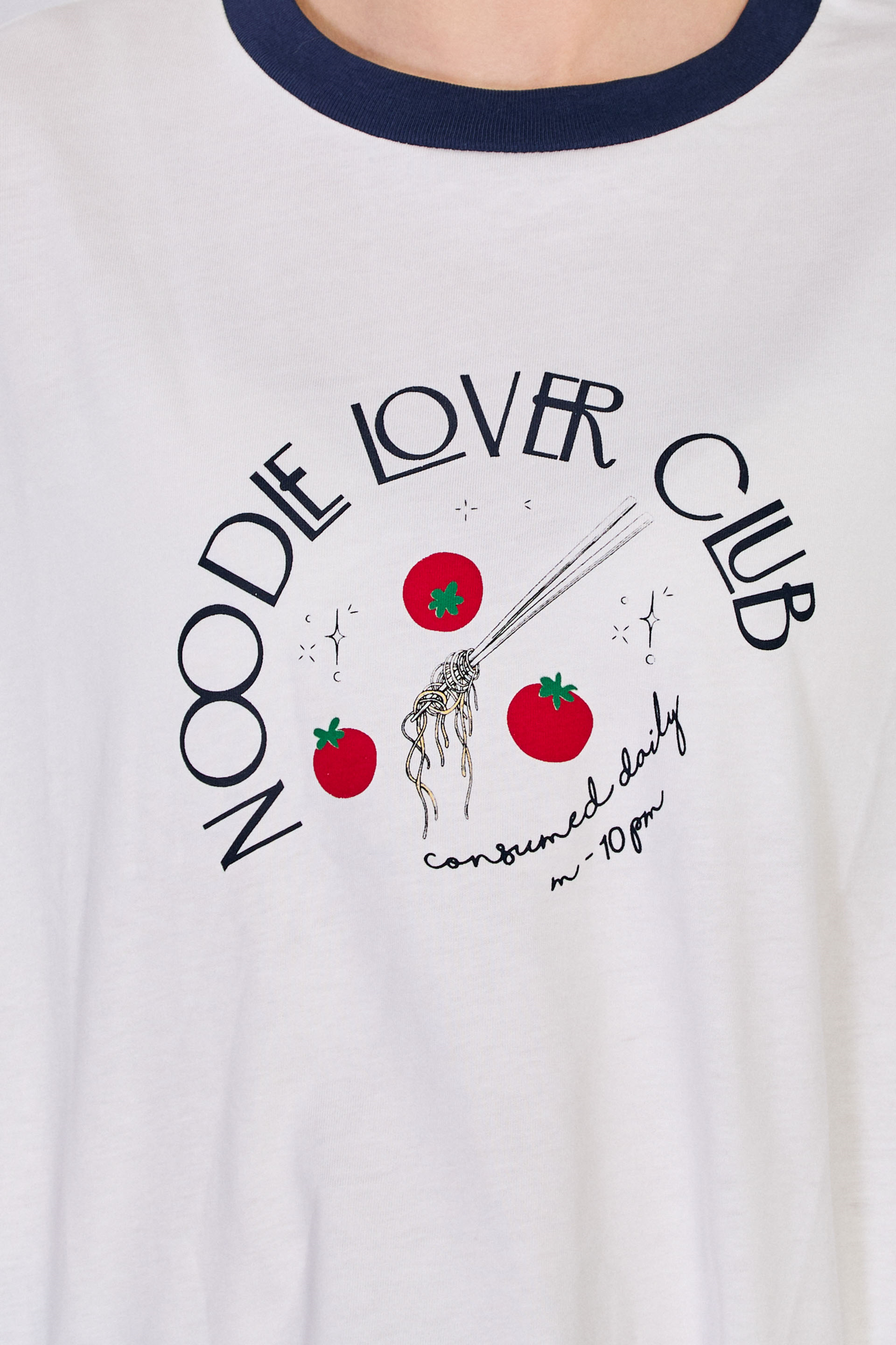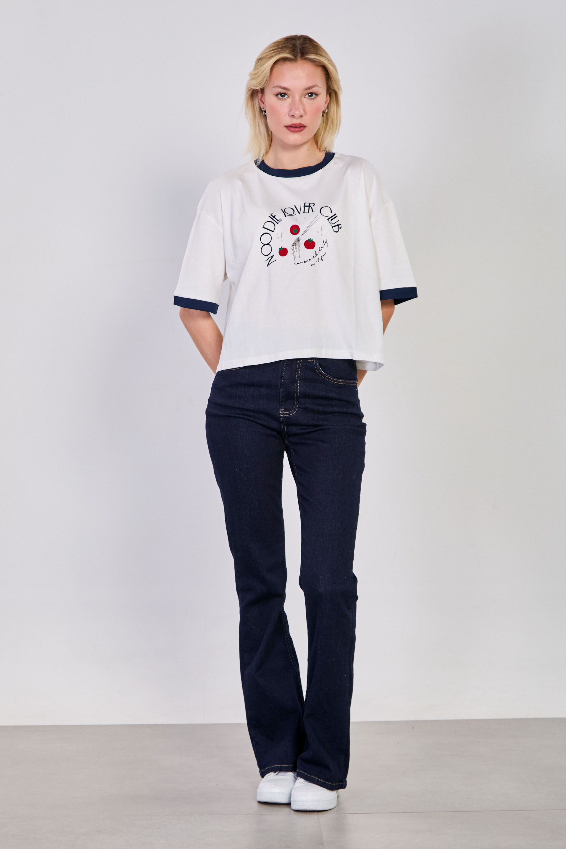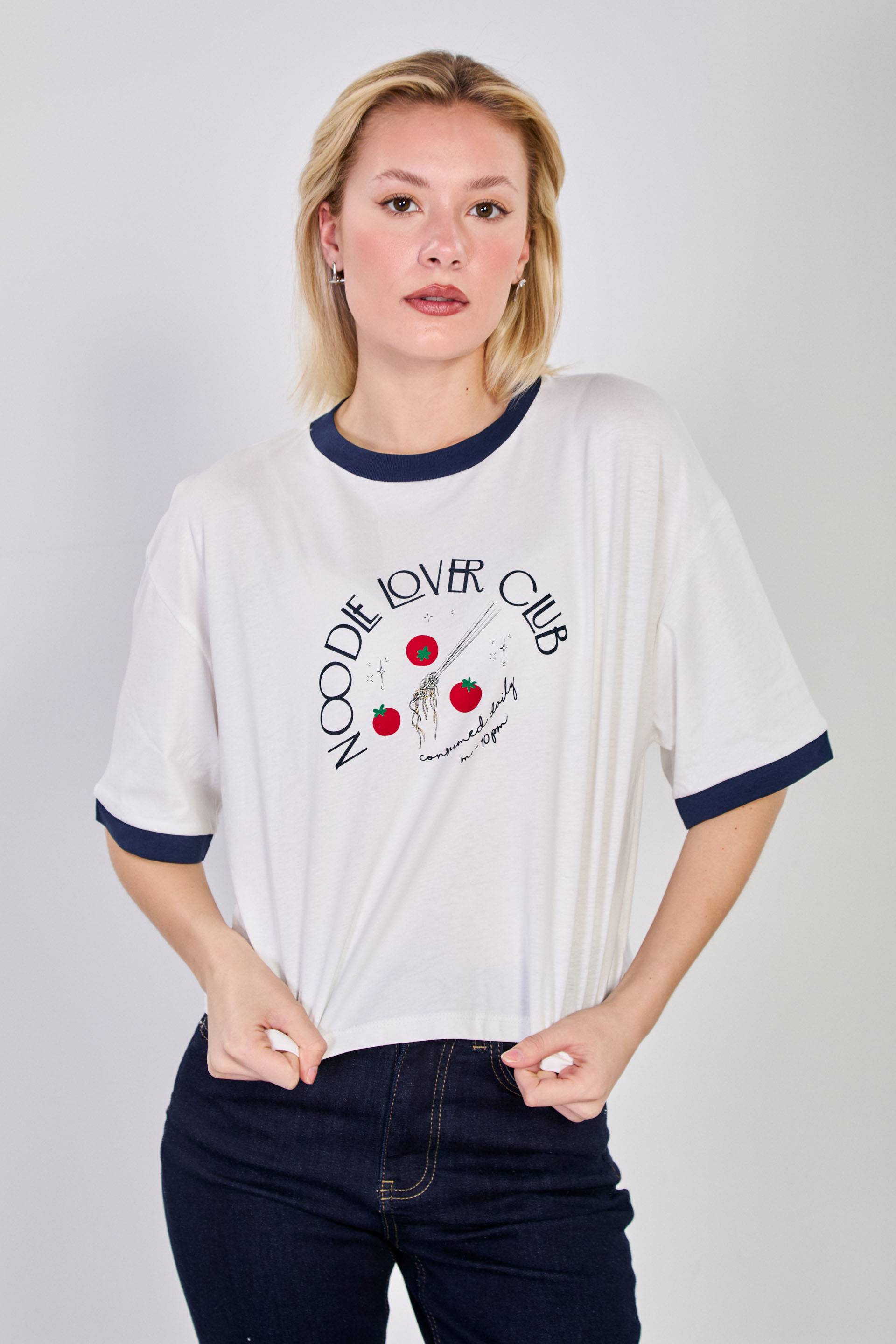 Kadın Noodle Baskılı Garnili T-Shirt - Ekru