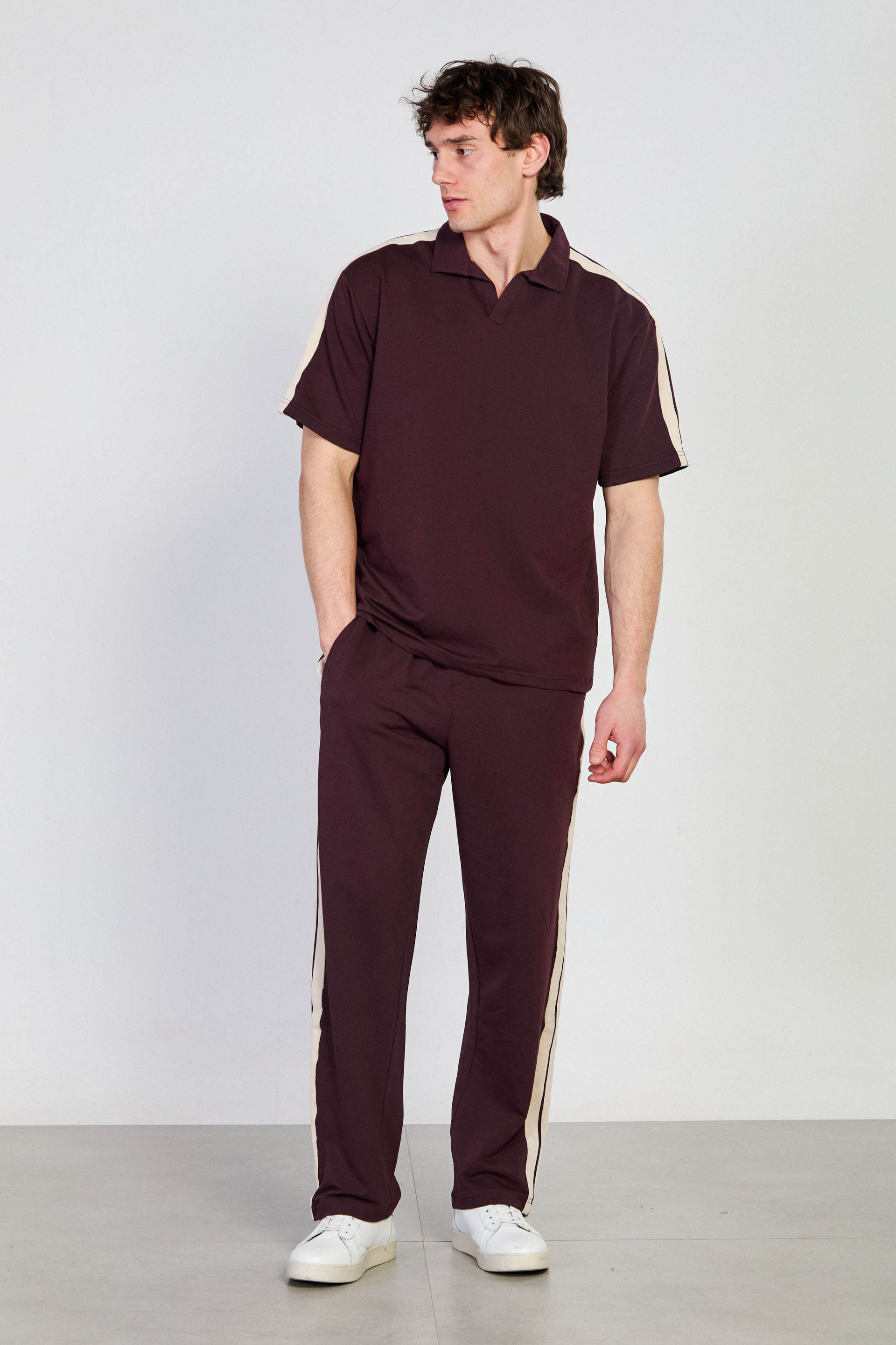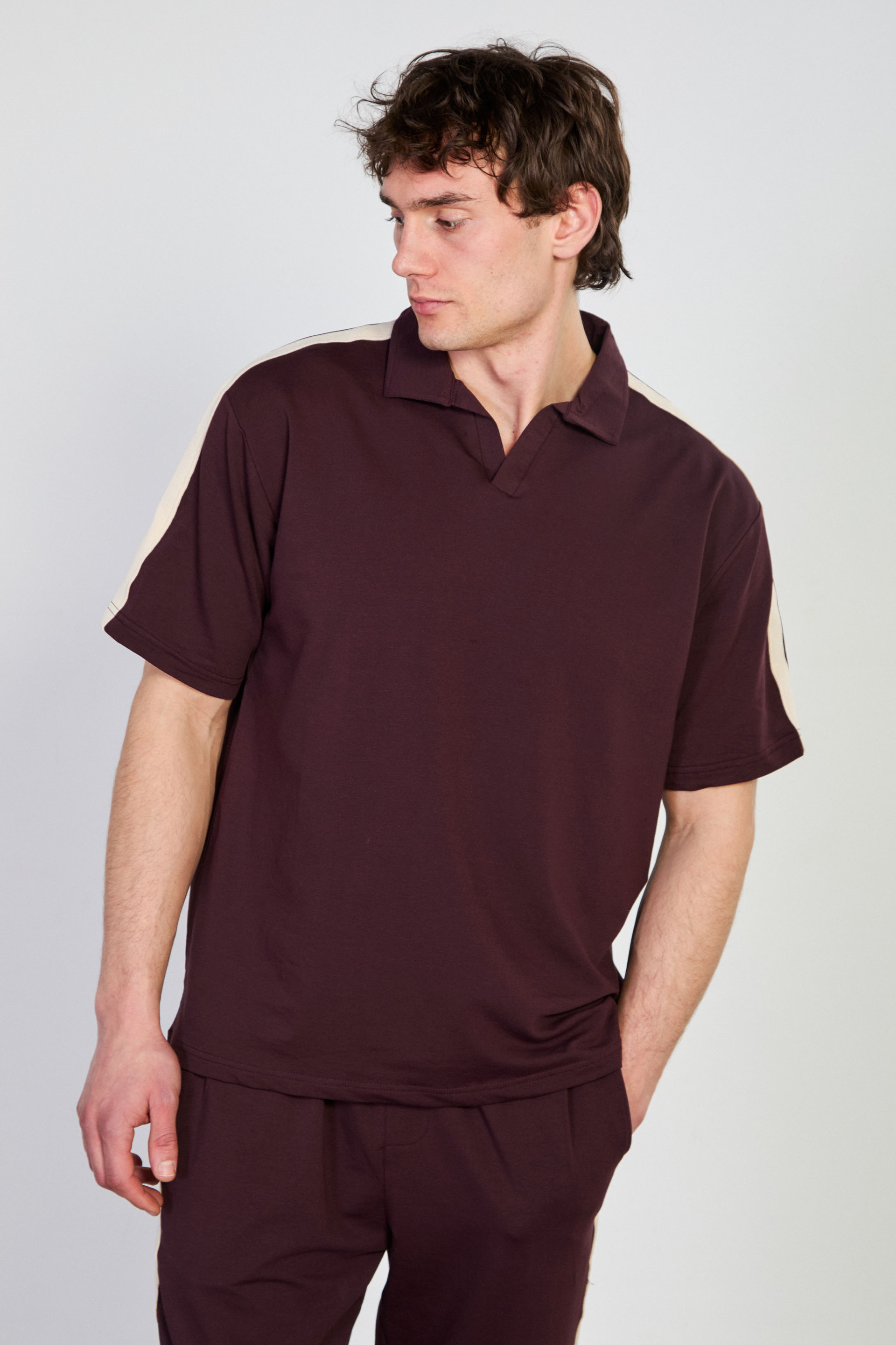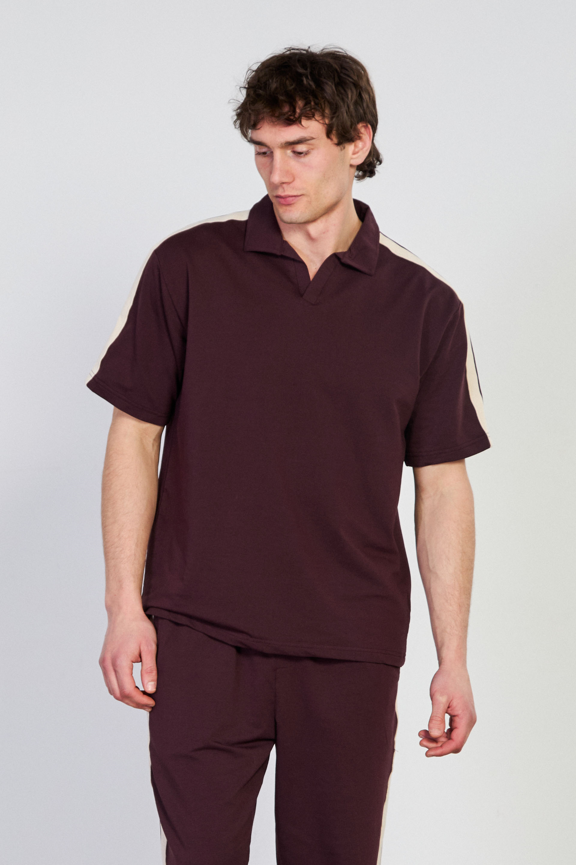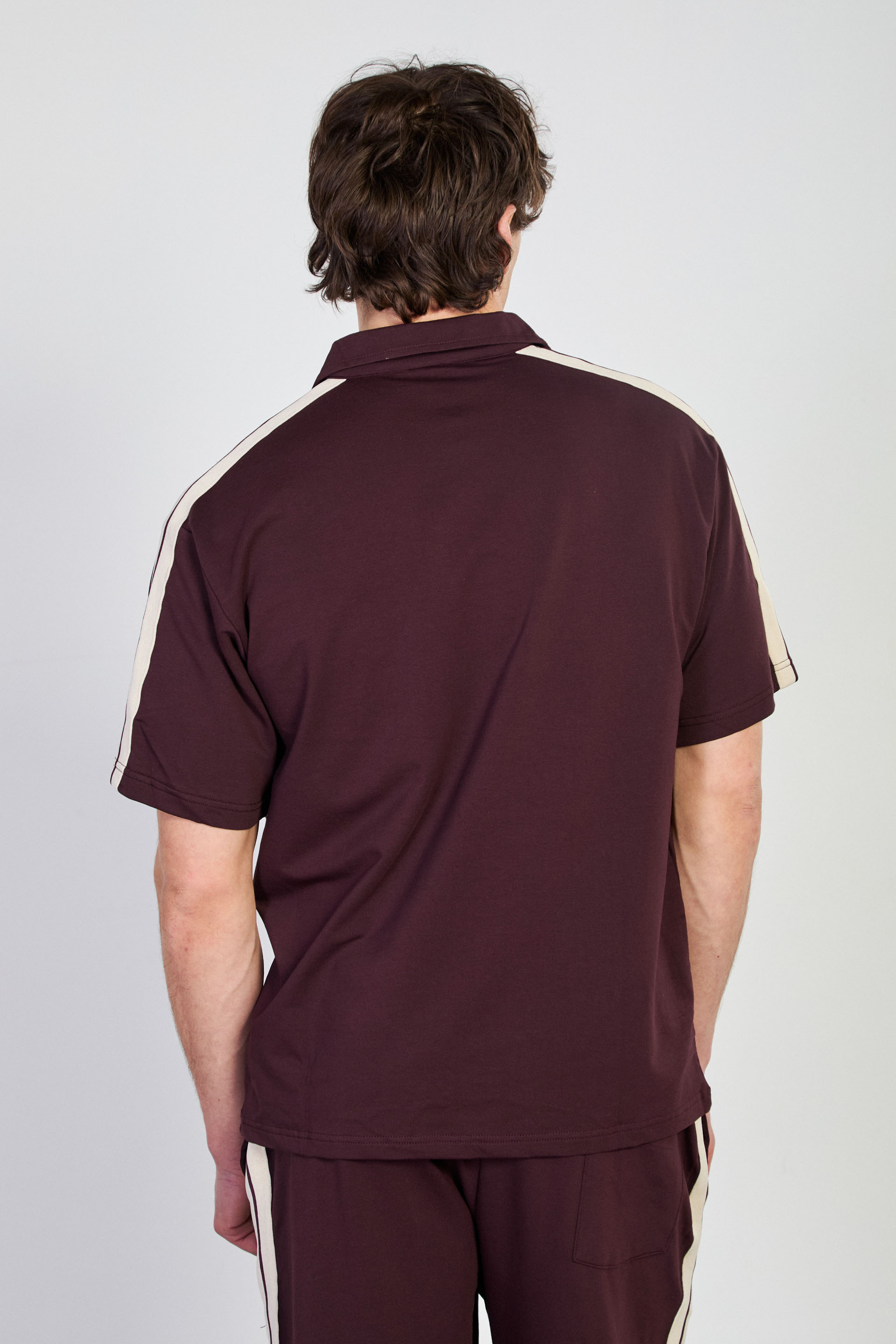 Erkek Omzu Biye Detaylı Polo Yaka T-Shirt - Bordo