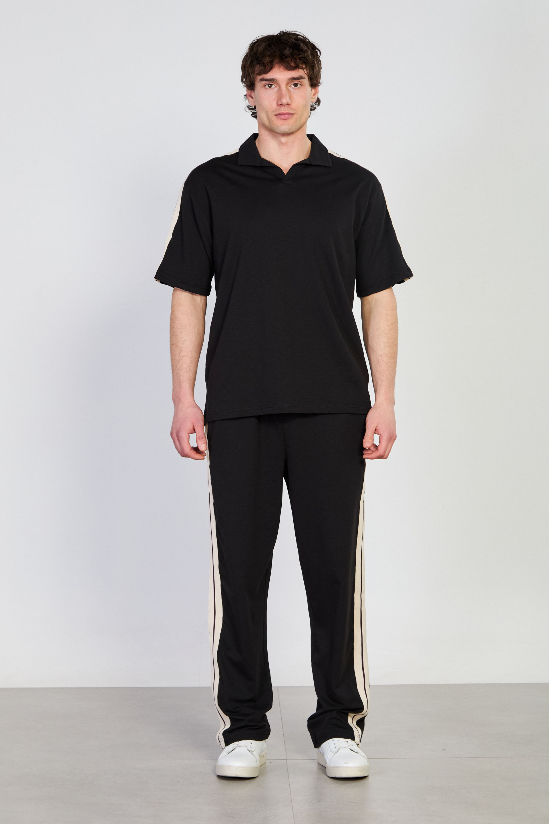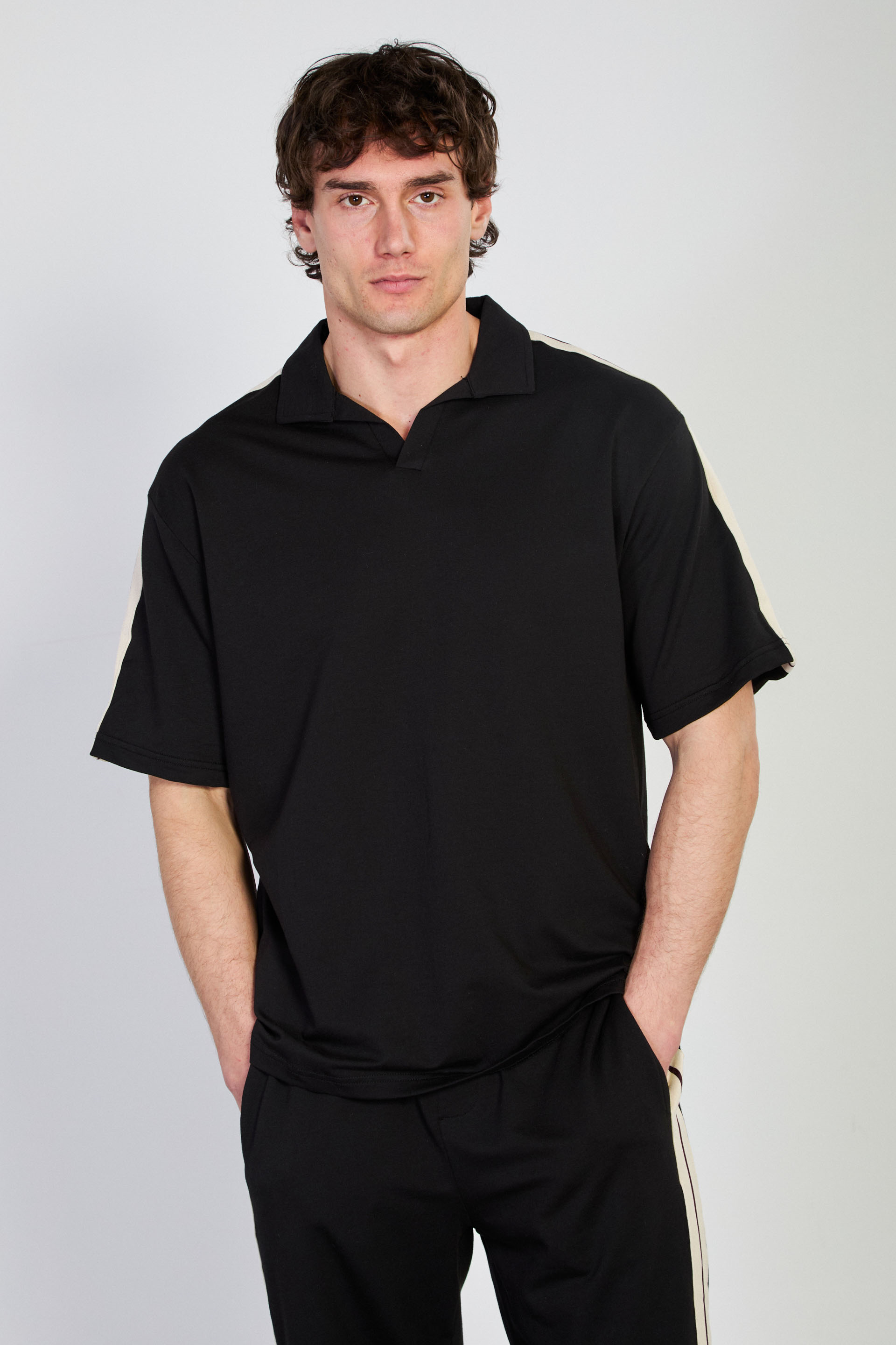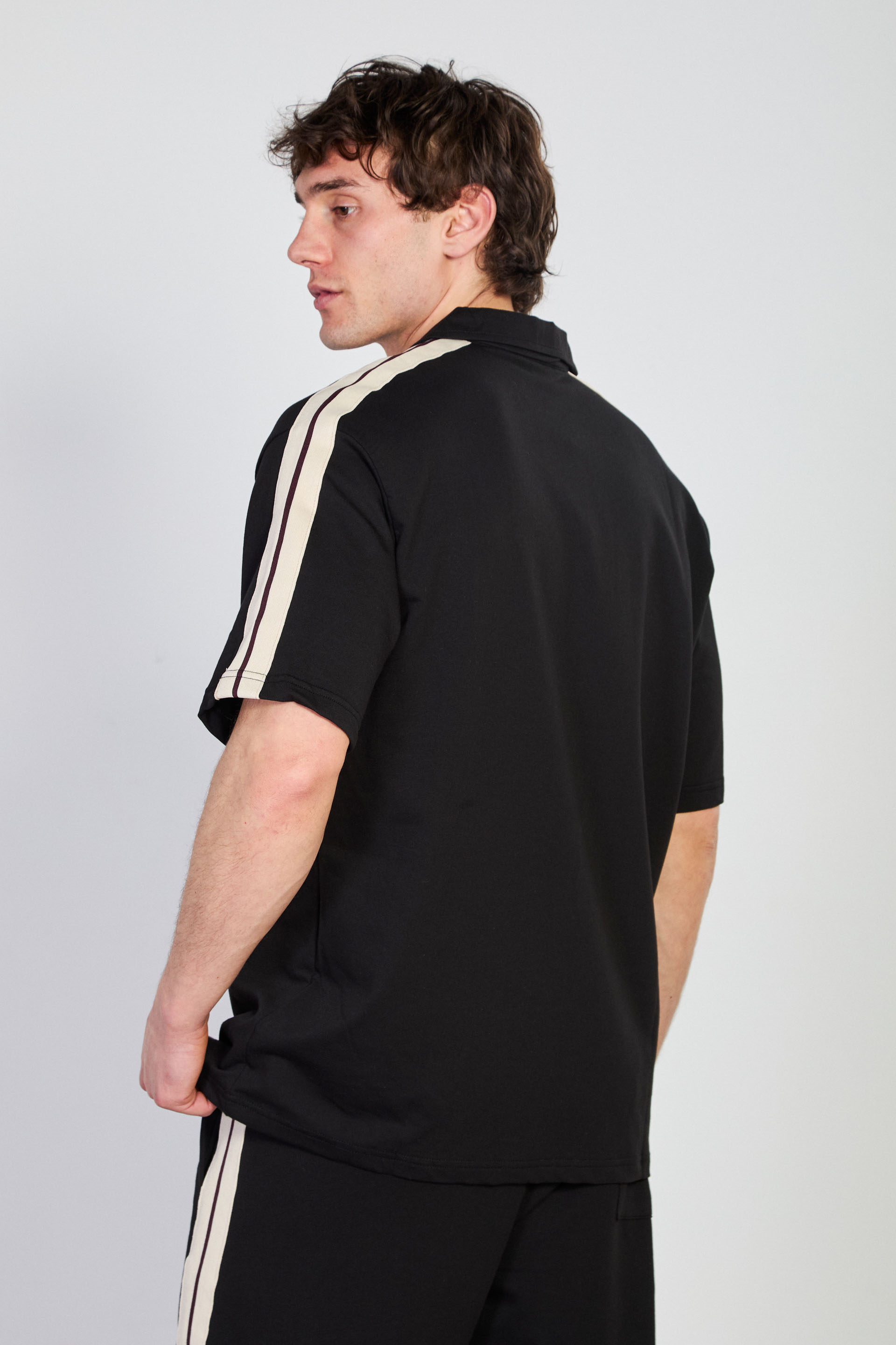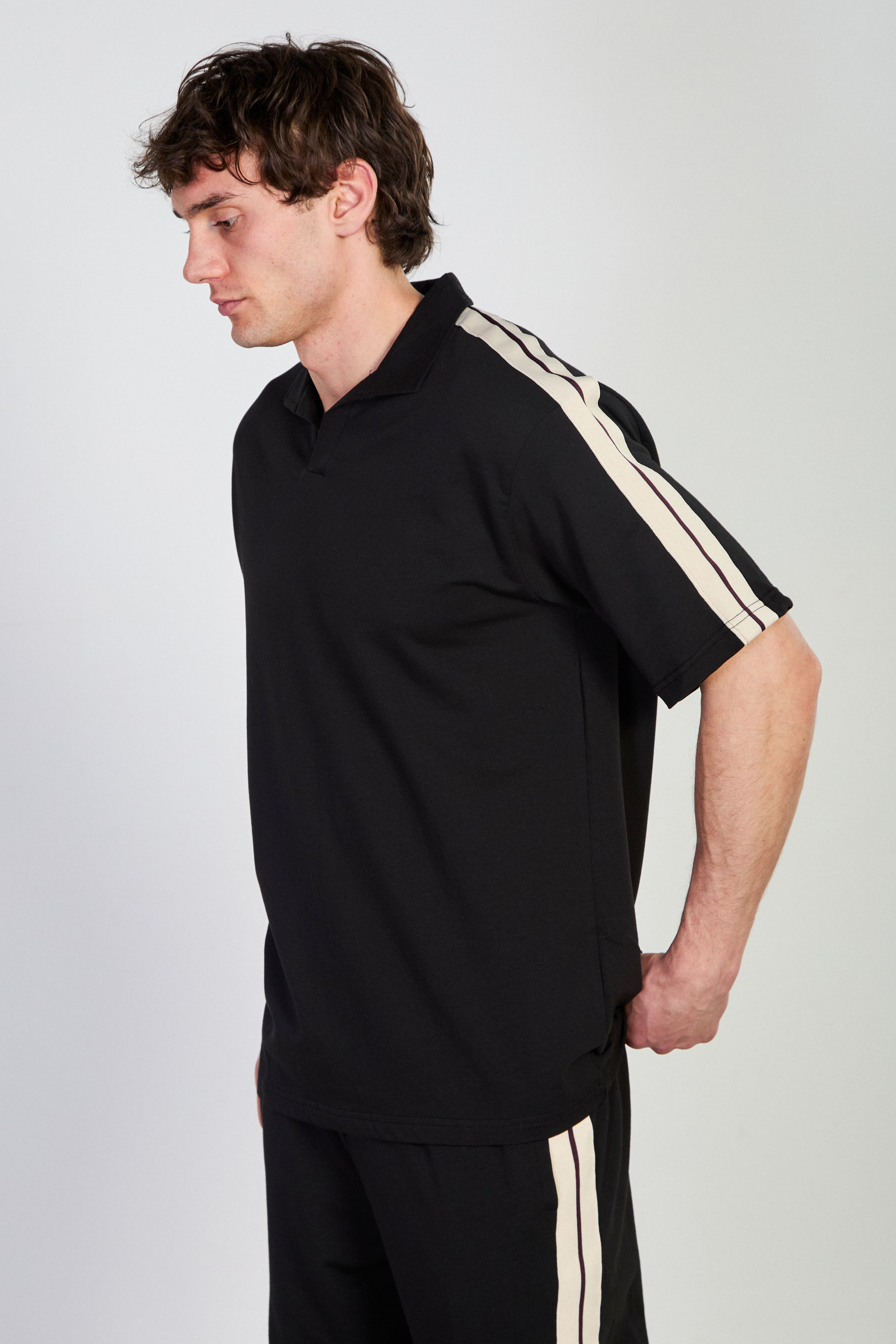 Erkek Omzu Biye Detaylı Polo Yaka T-Shirt - Siyah