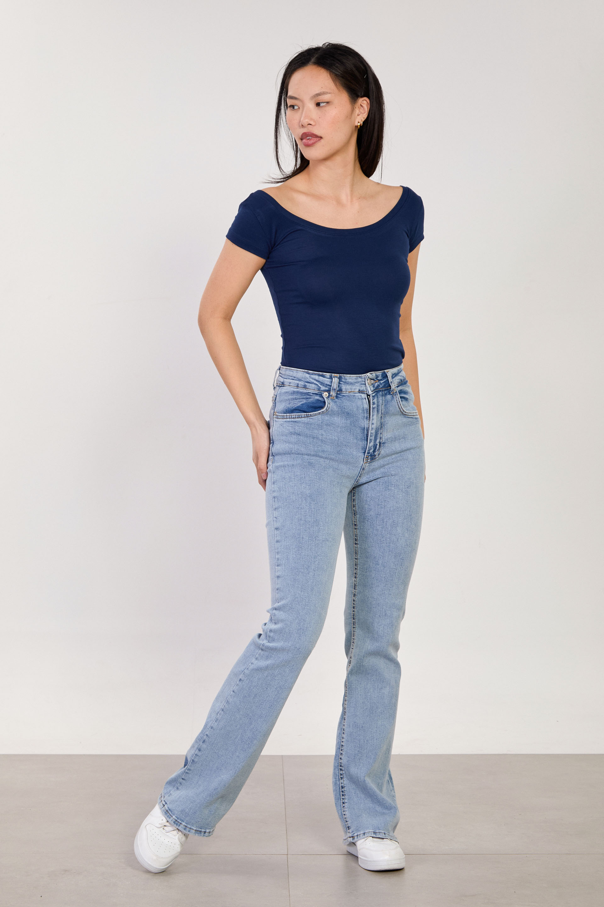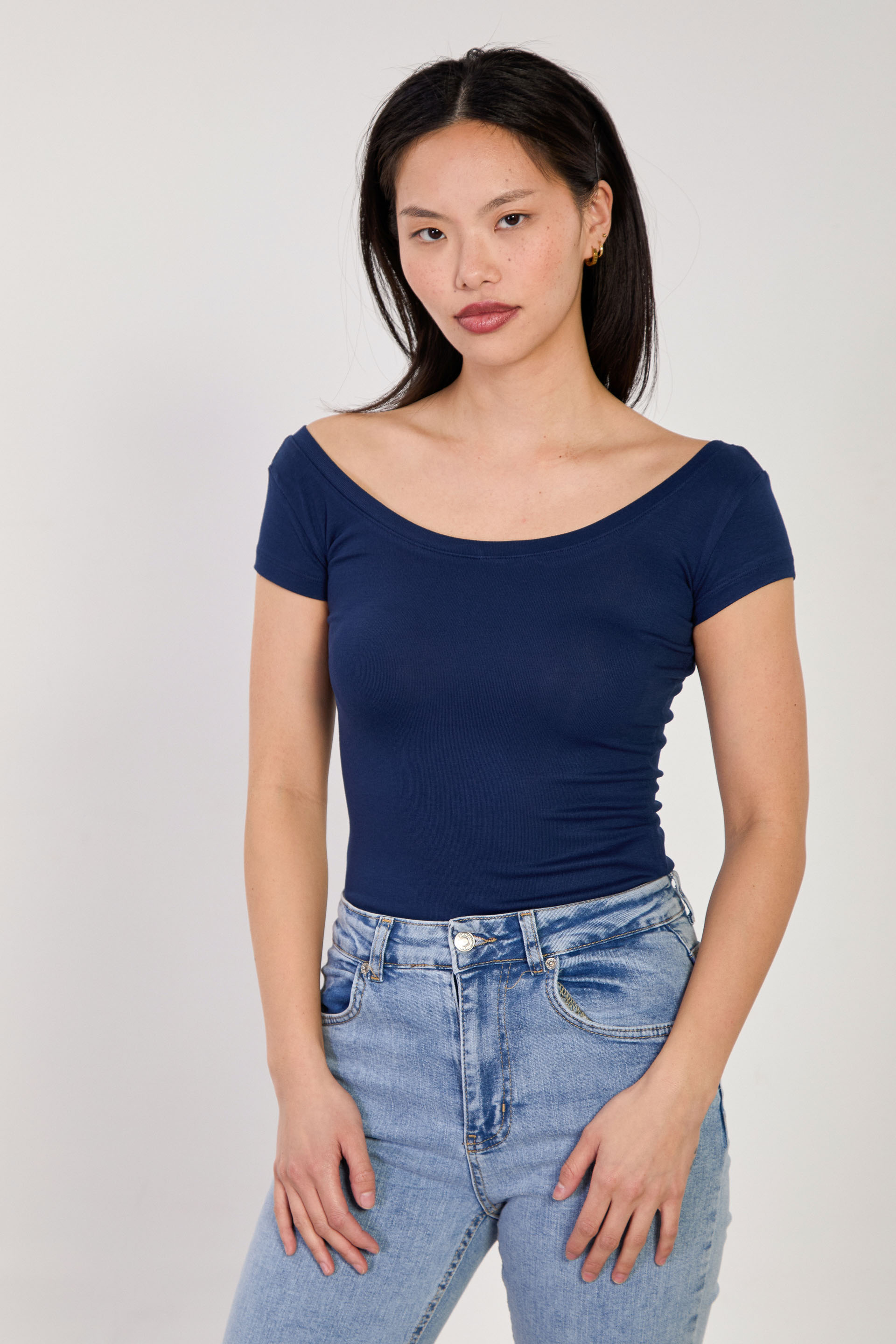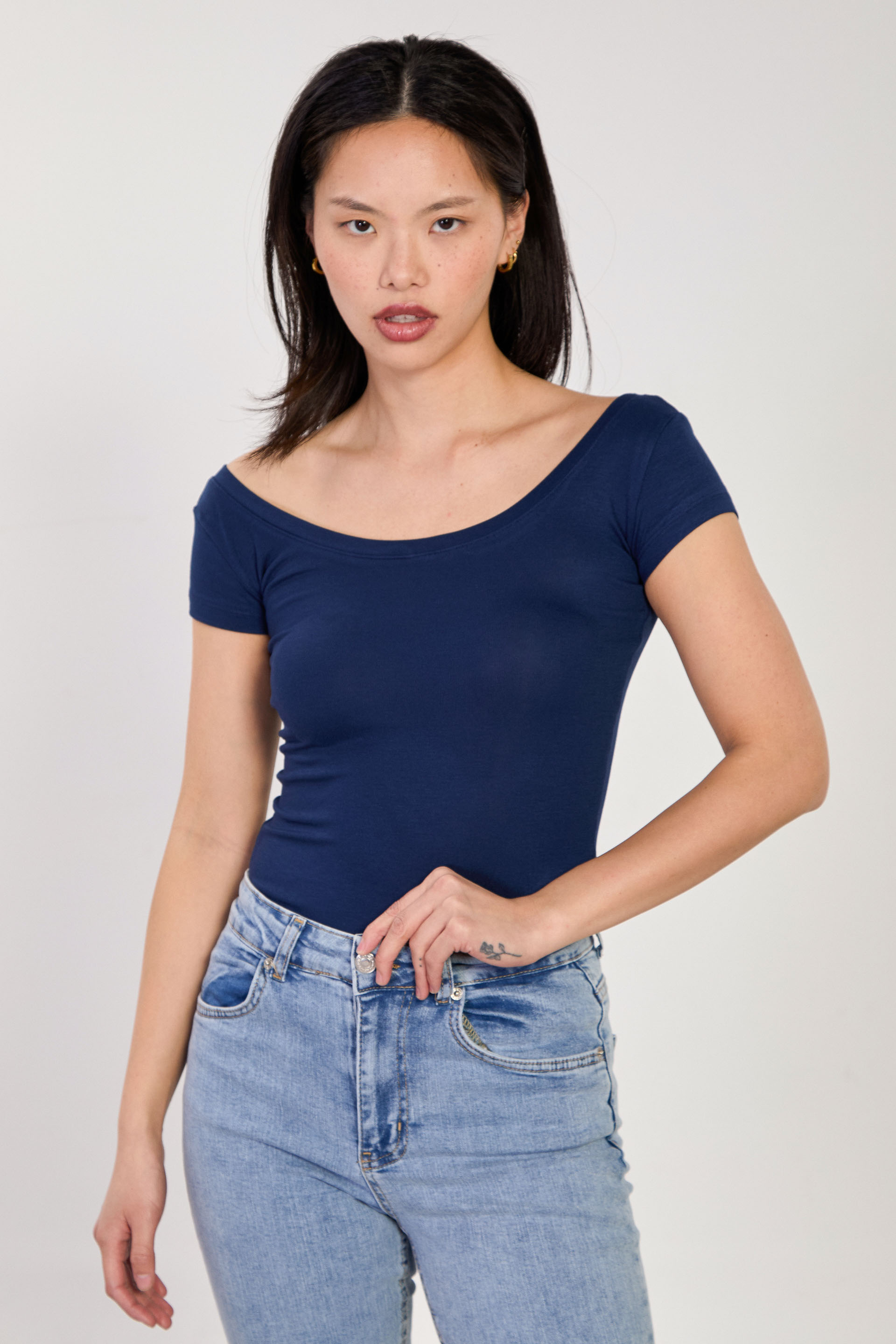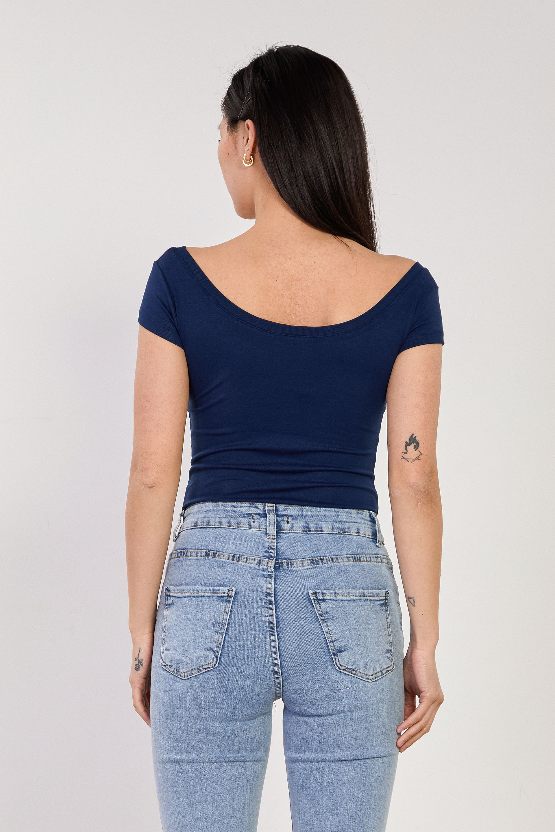 Kadın Ön Arka Açık Yaka Basic Kısa Kol Body - Lacivert