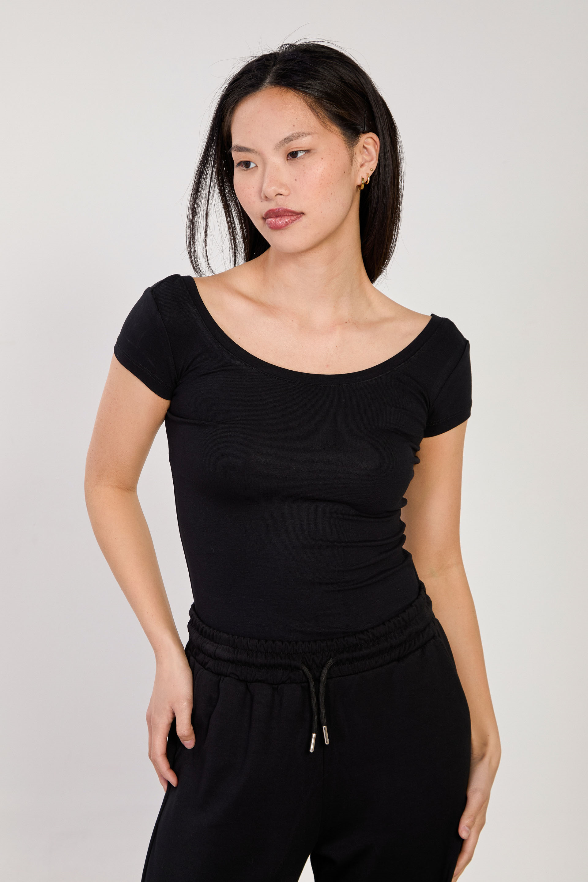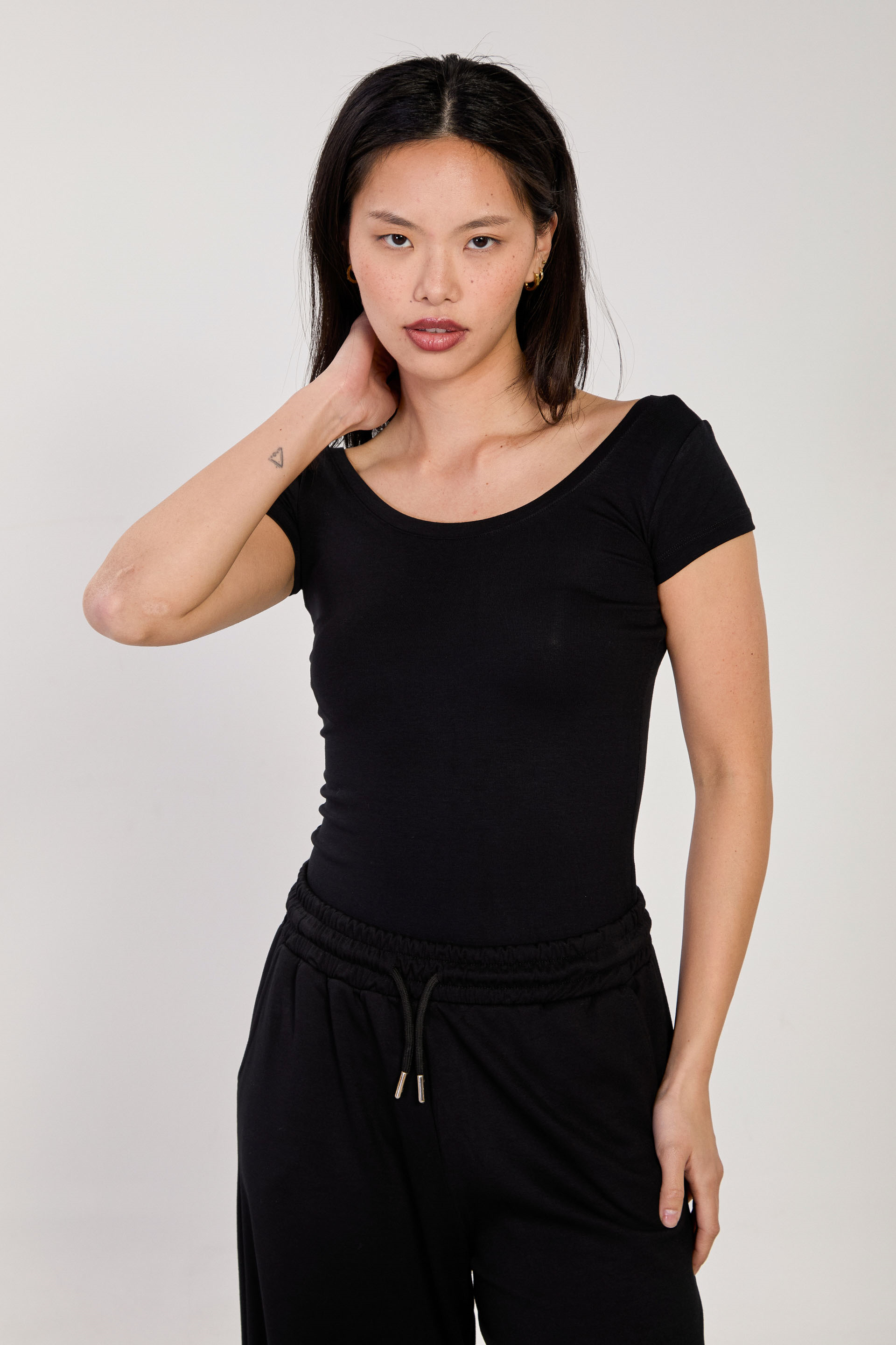 Kadın Ön Arka Açık Yaka Basic Kısa Kol Body - Siyah