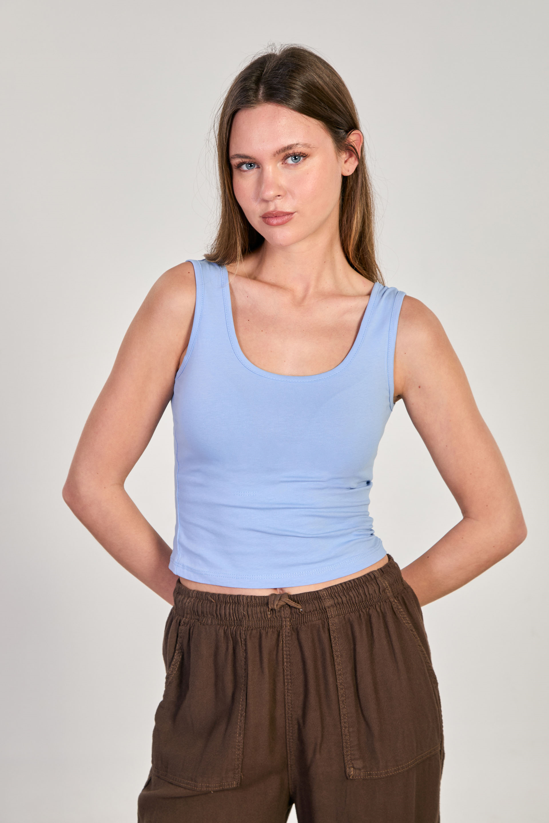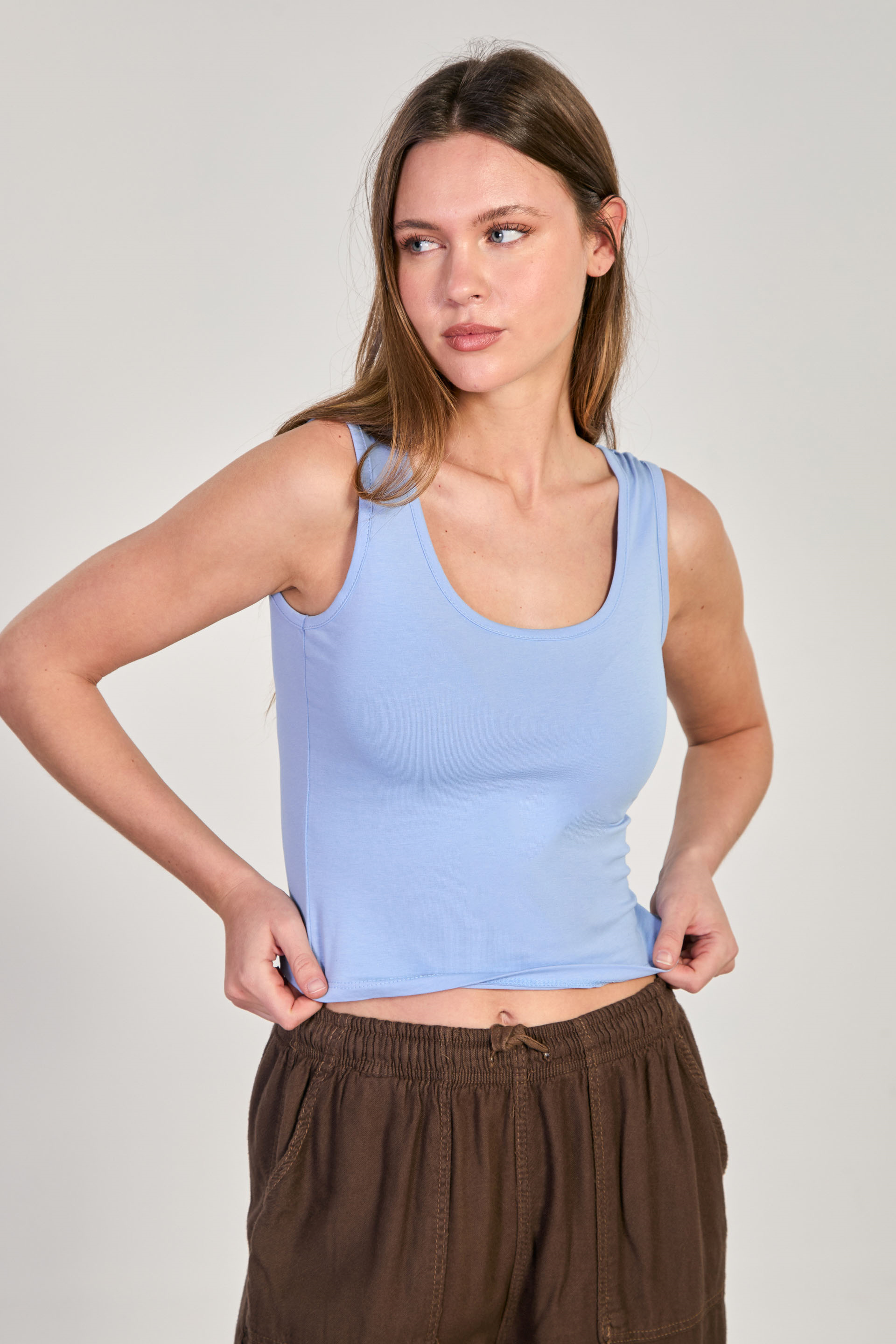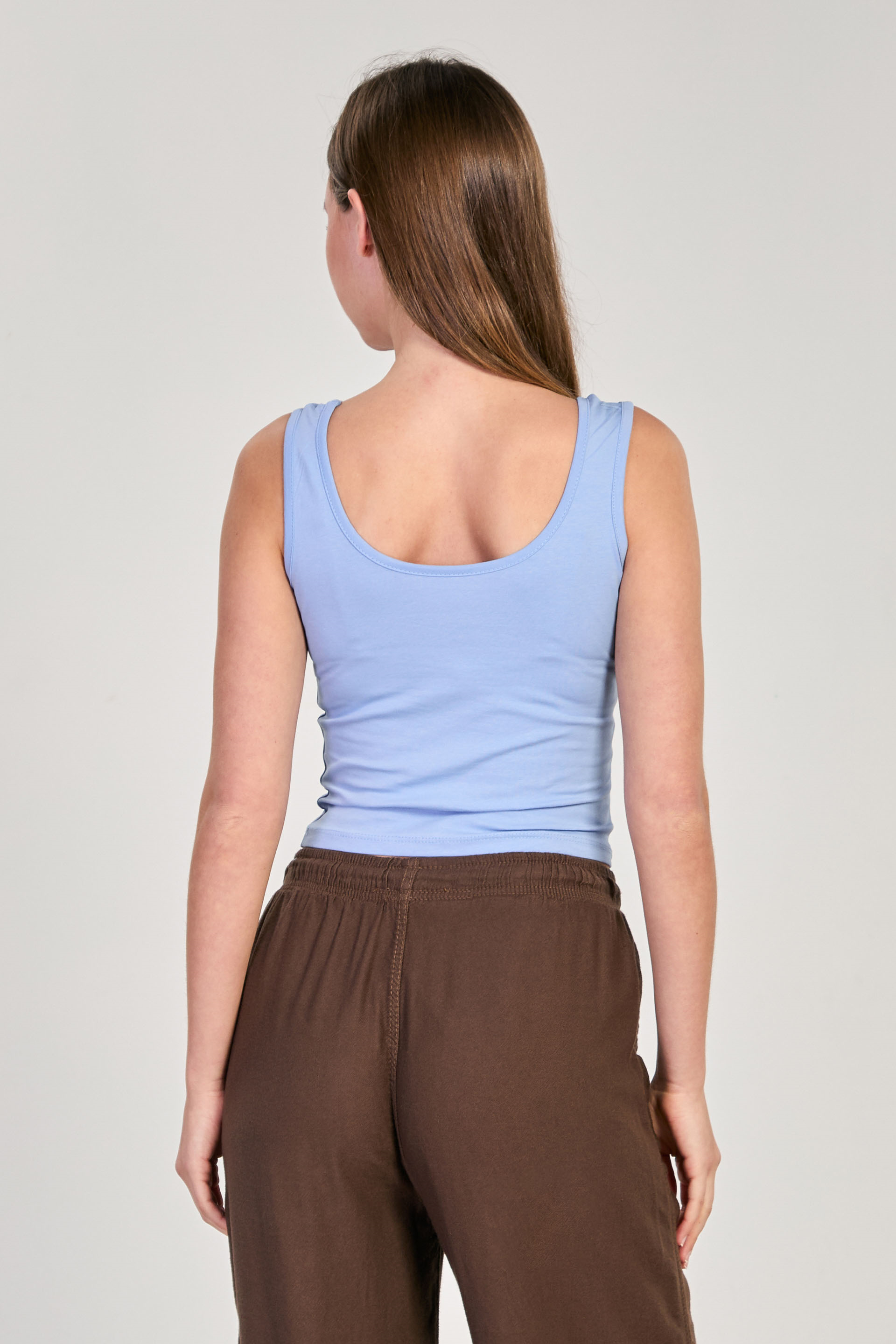 Kadın Ön Arka Derin Yaka Crop Atlet - Mavi