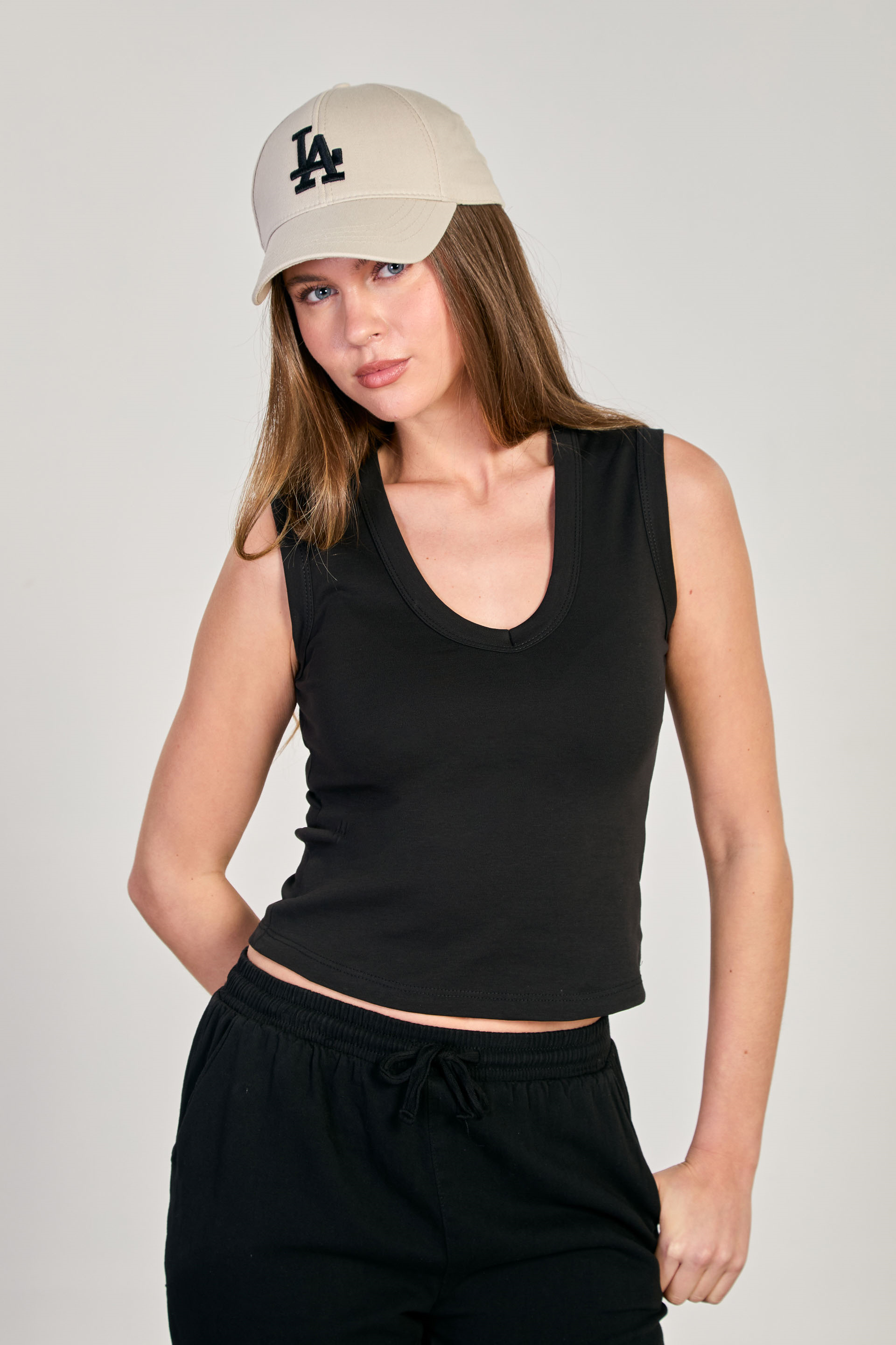 Kadın Ön Arka Derin Yaka Crop Atlet - Siyah