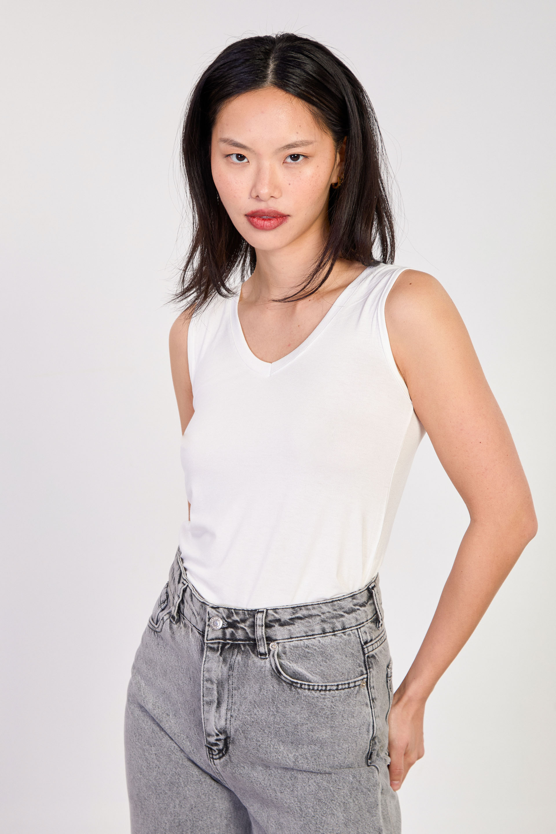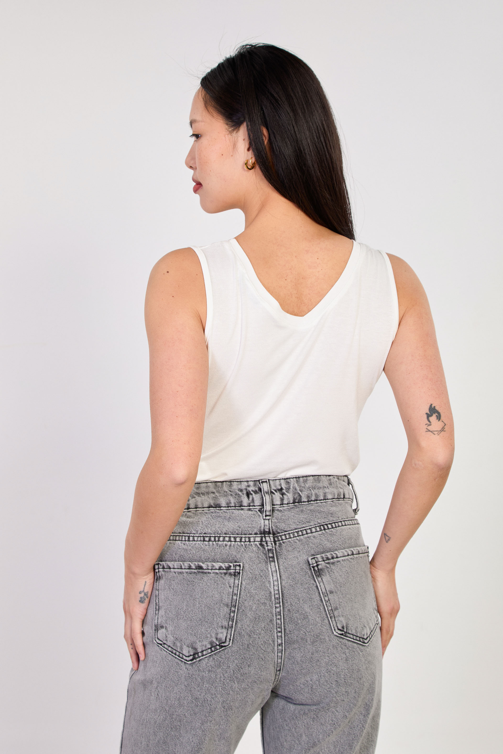 Kadın Ön Arka V Yaka Bluz - Ekru