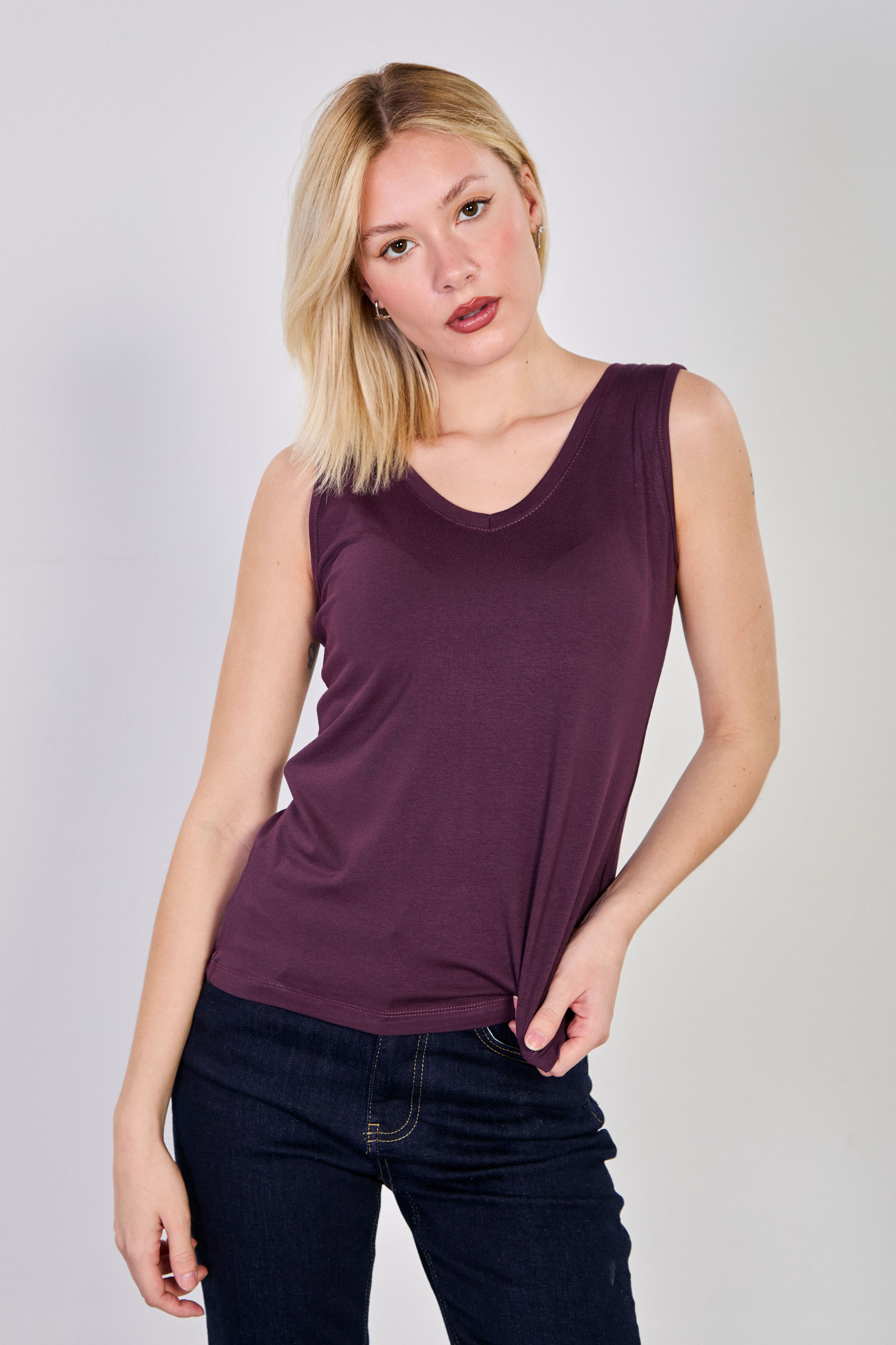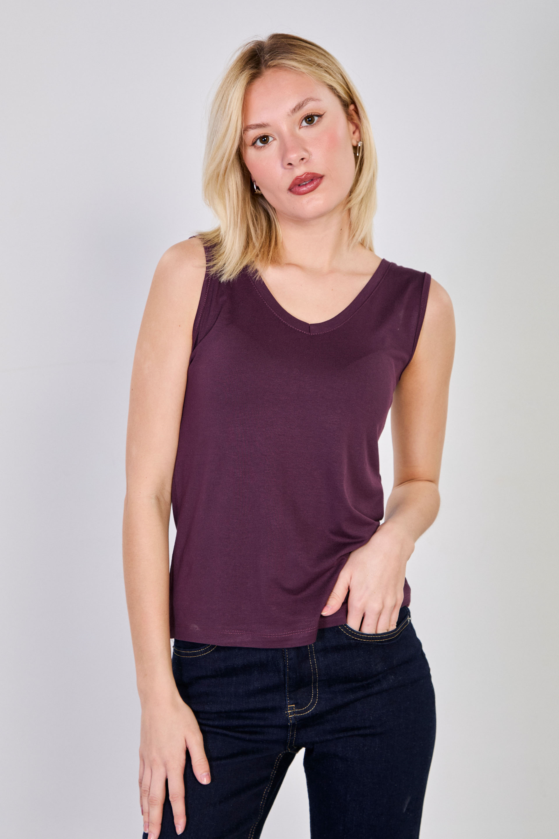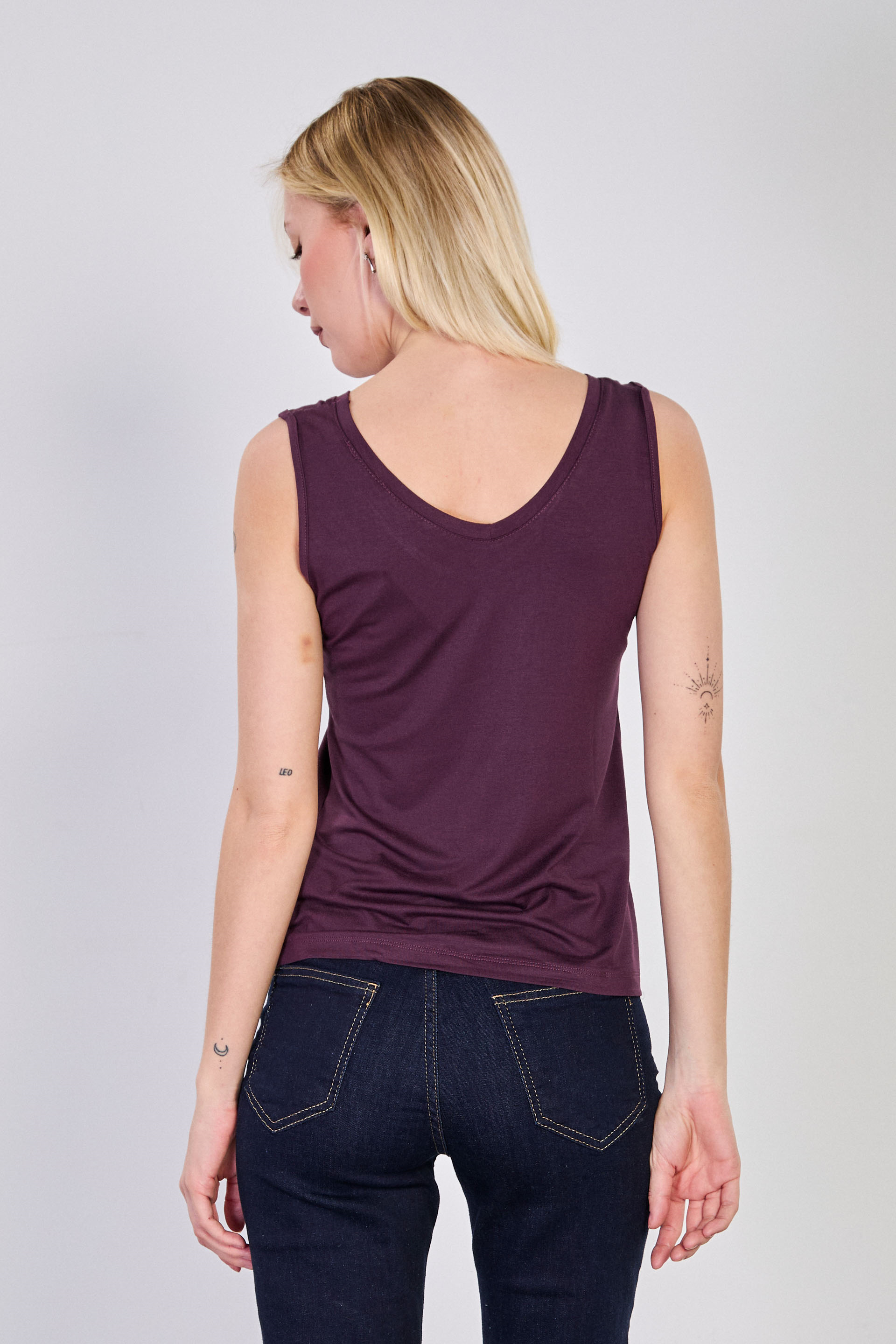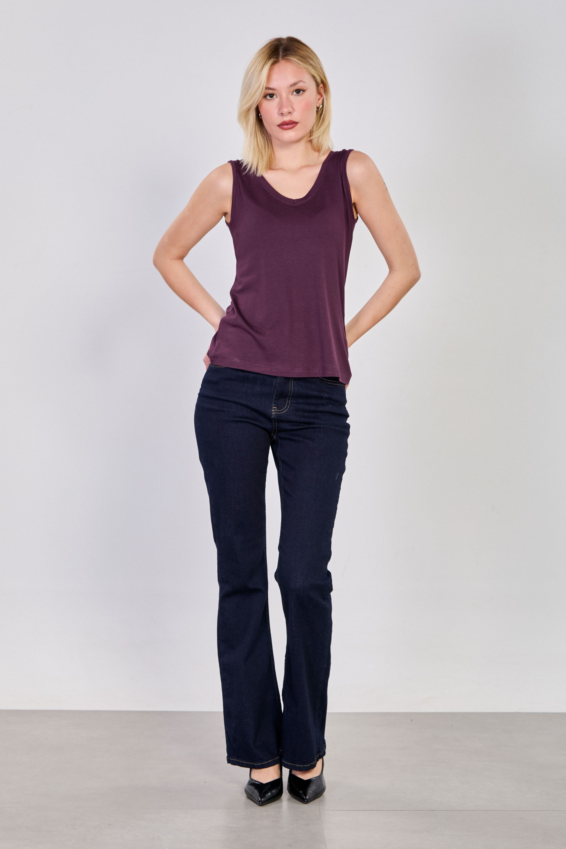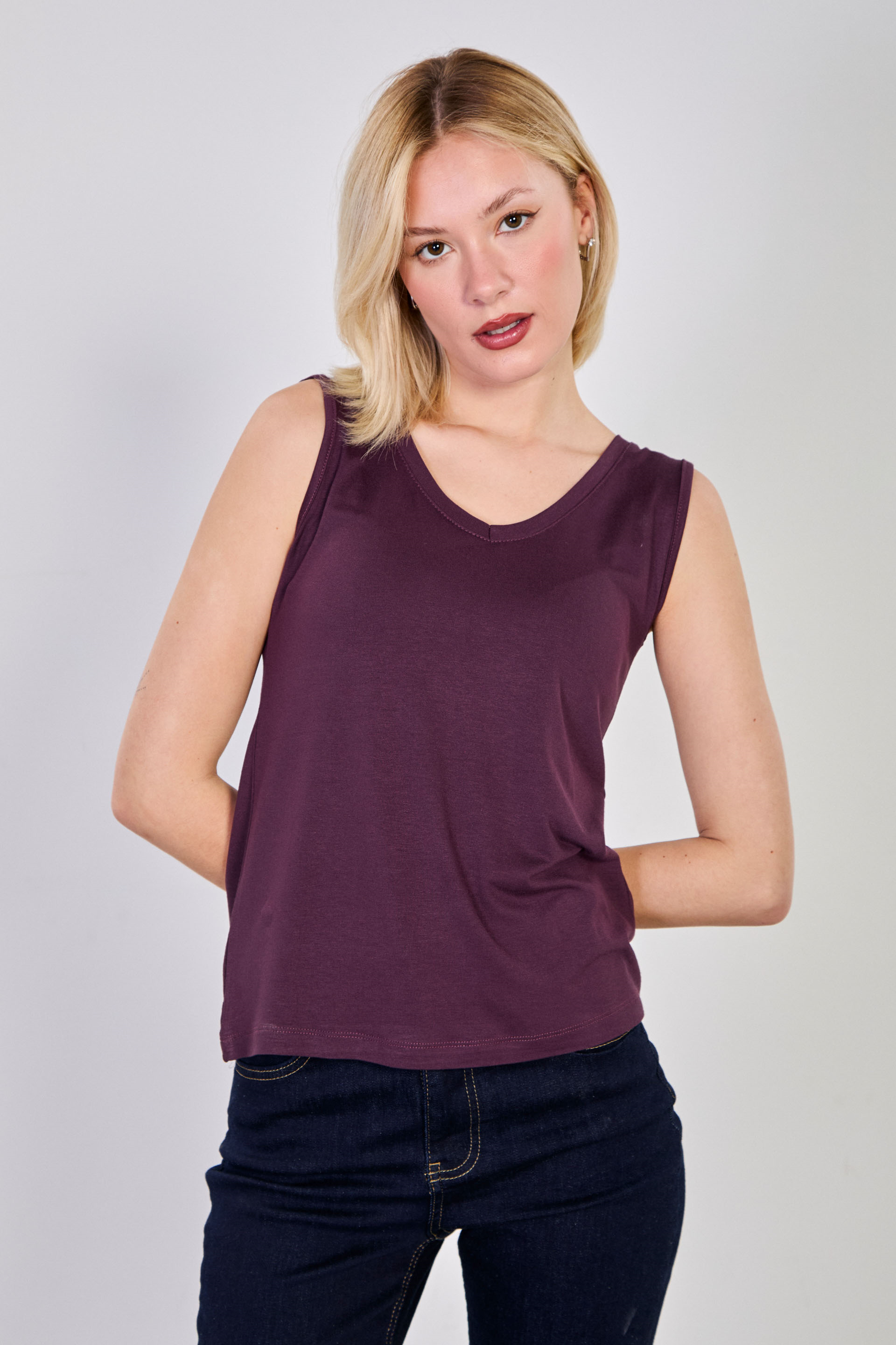 Kadın Ön Arka V Yaka Bluz - Mürdüm