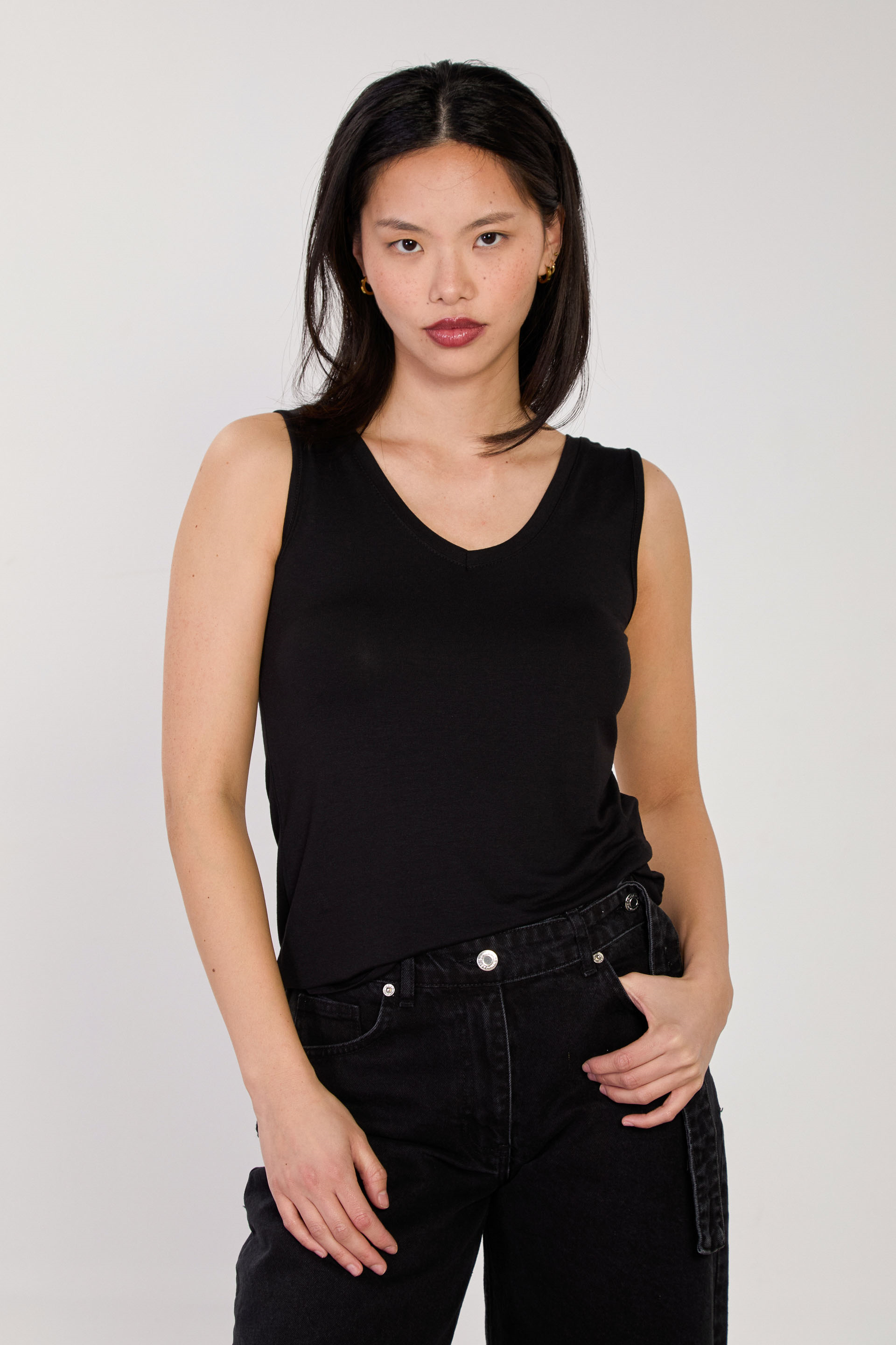 Kadın Ön Arka V Yaka Bluz - Siyah