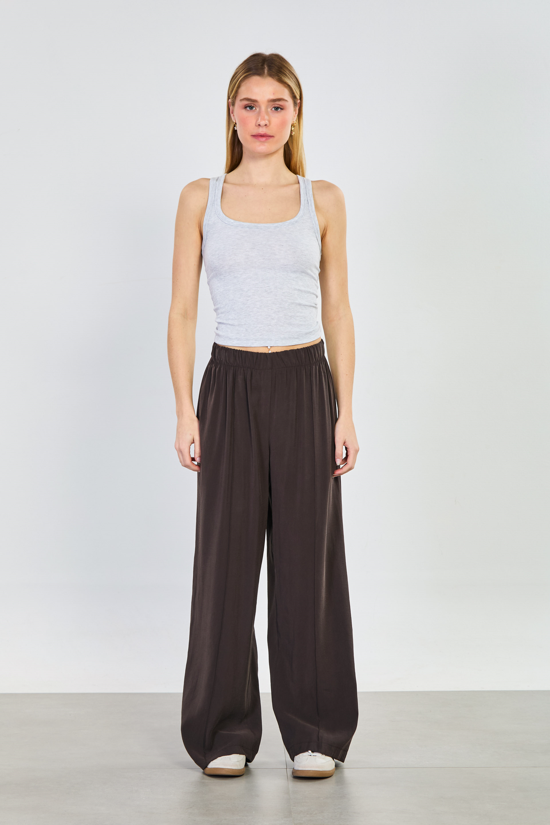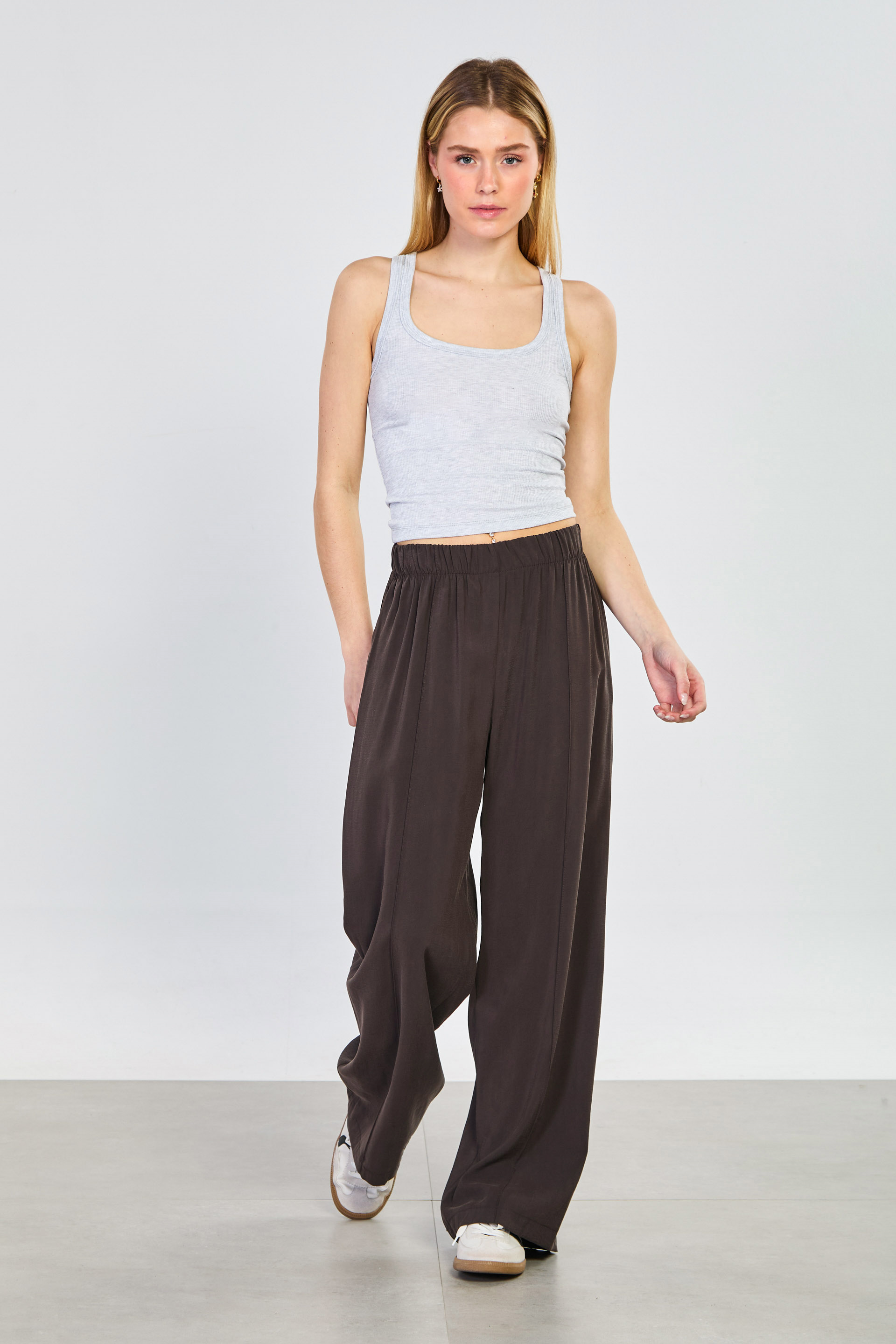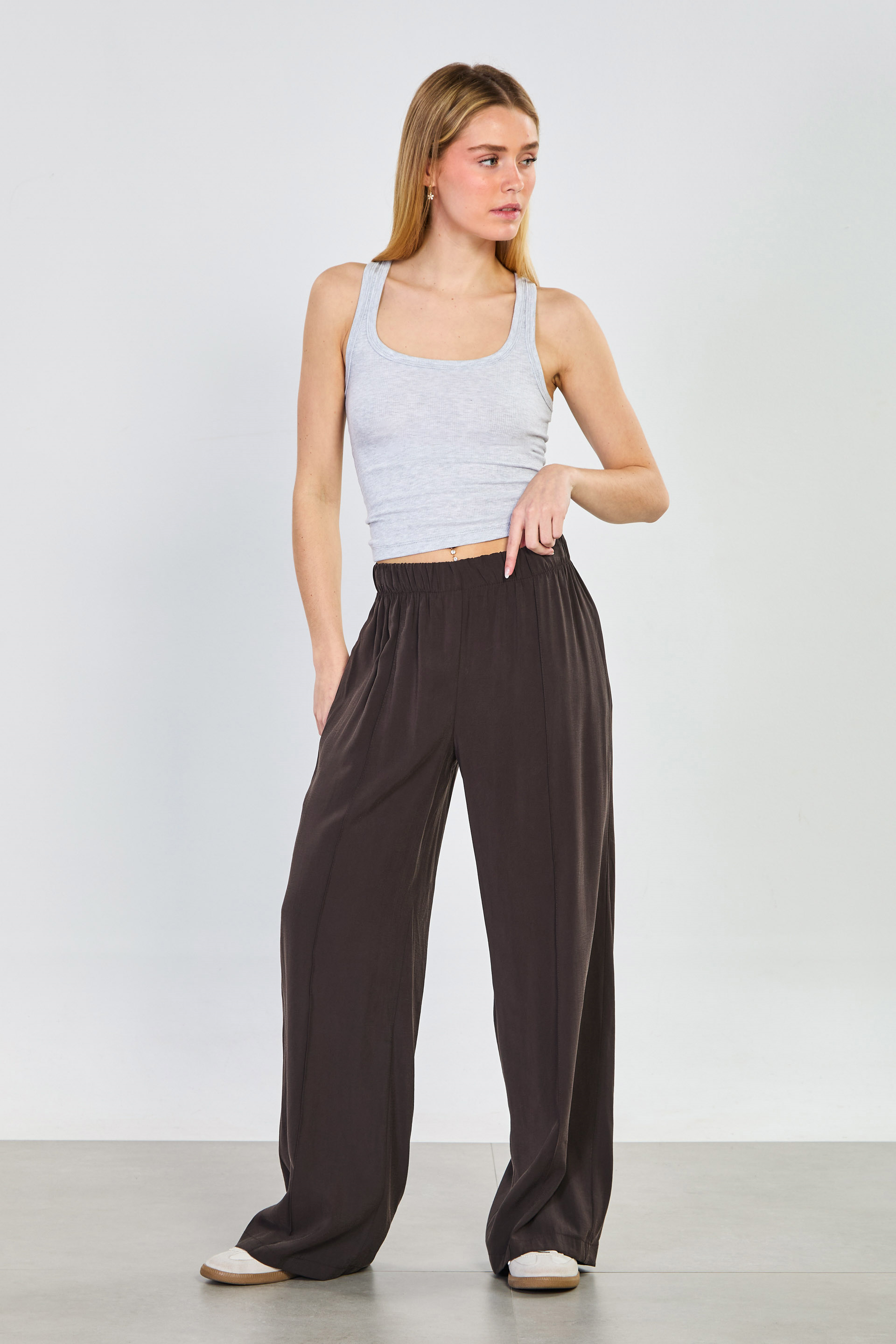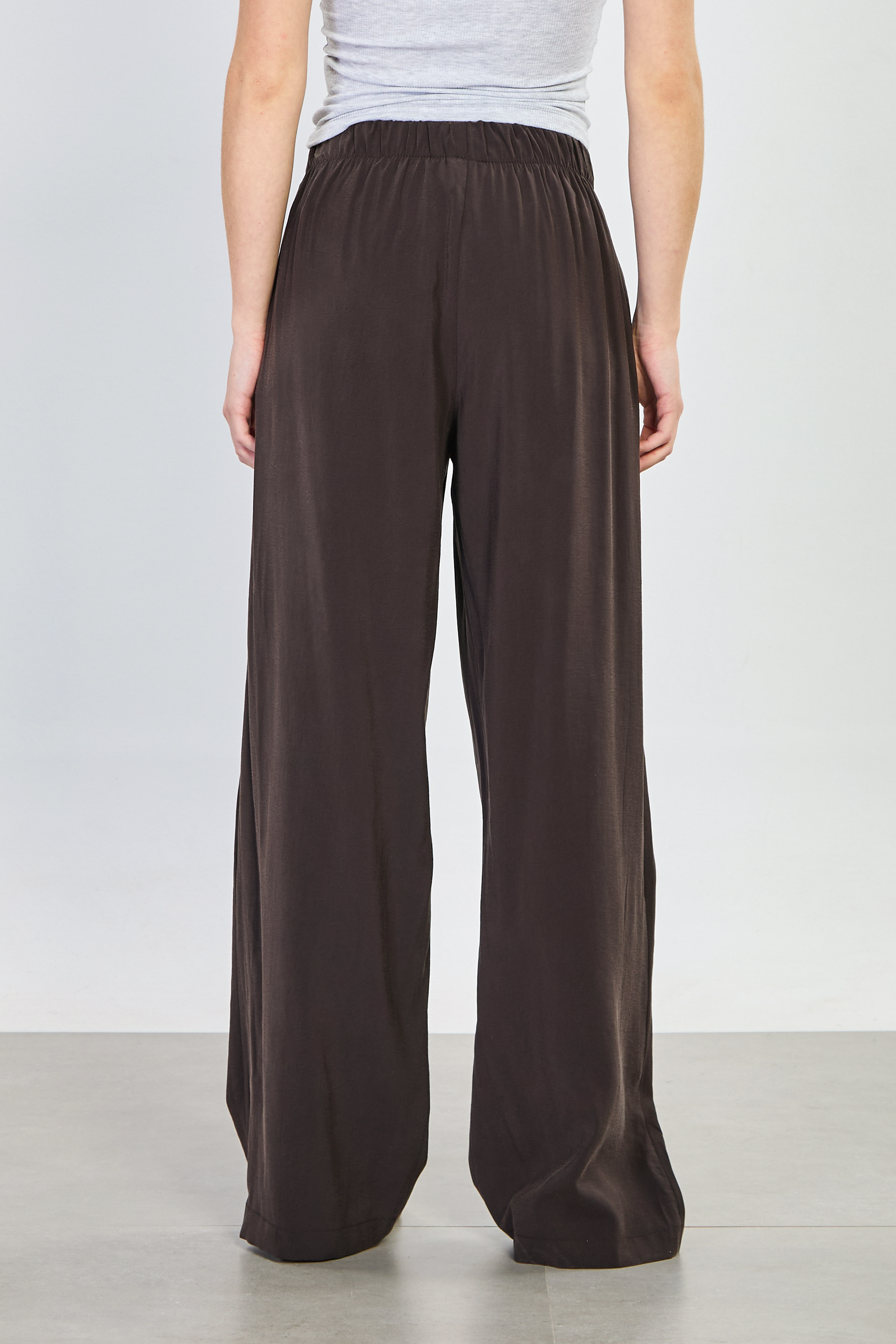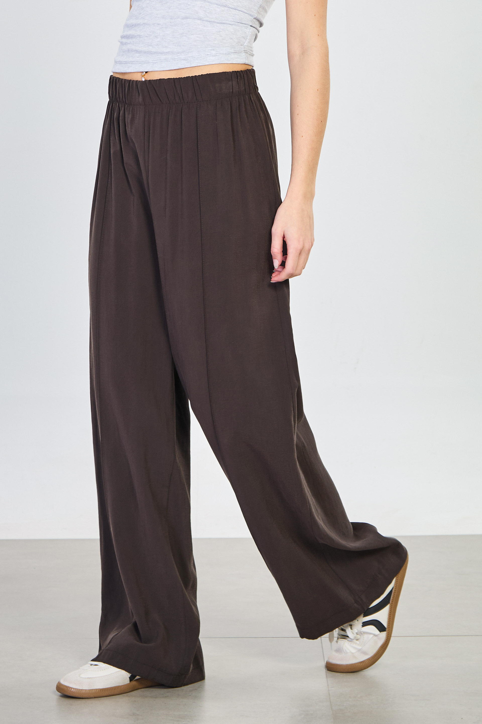 Kadın Önü Çimalı Beli Lastikli Bol Pantolon - Acı Kahve