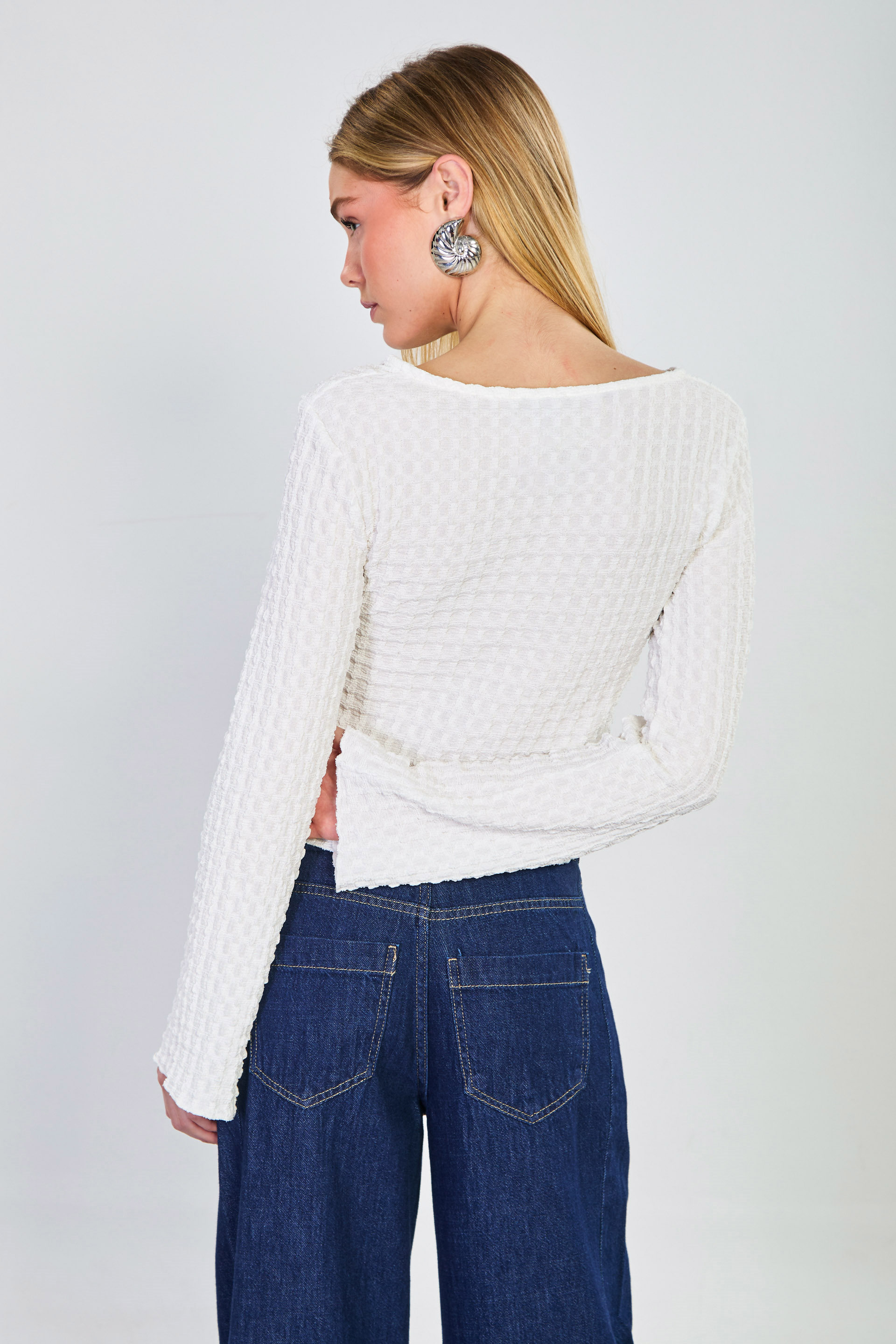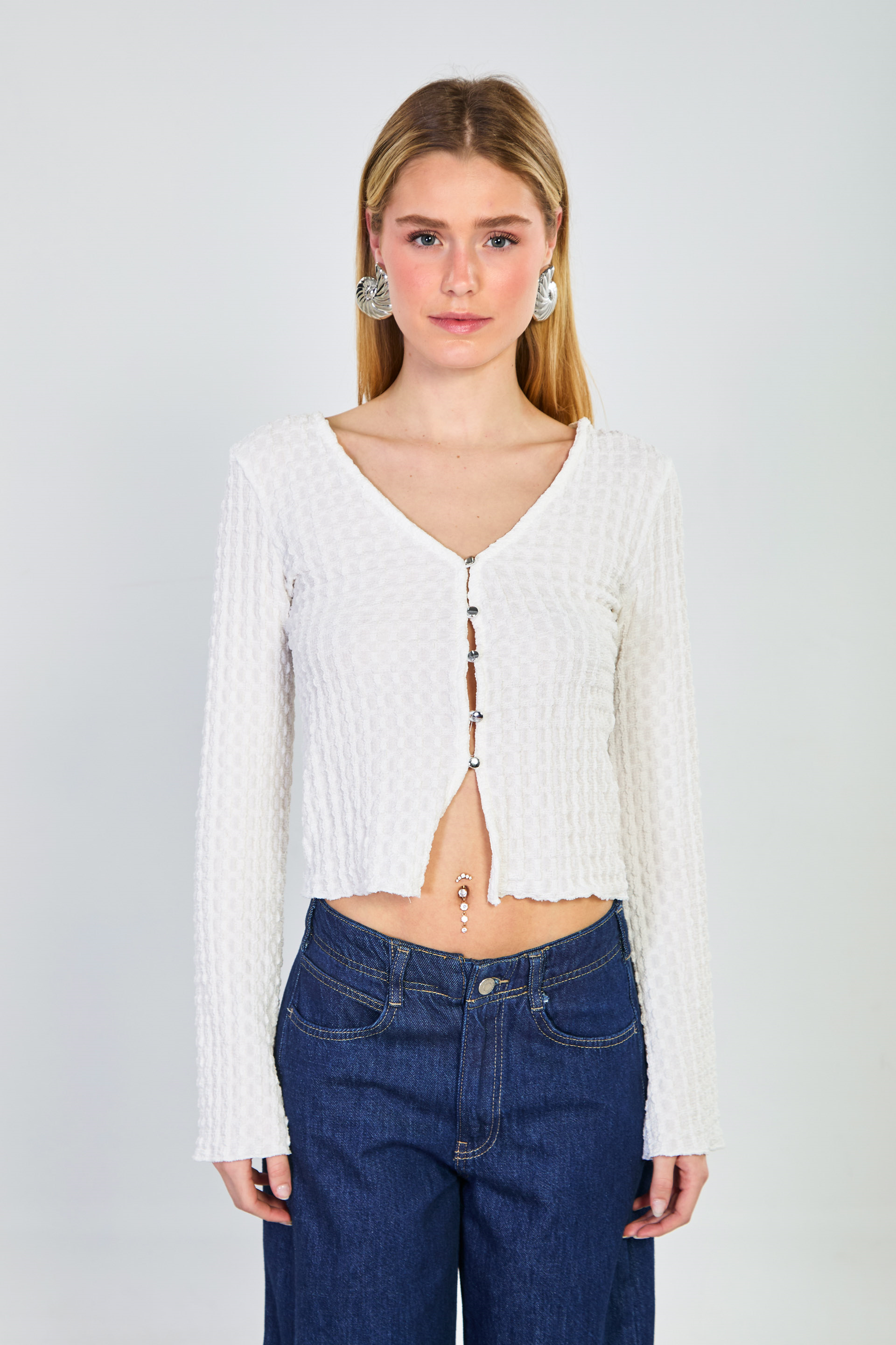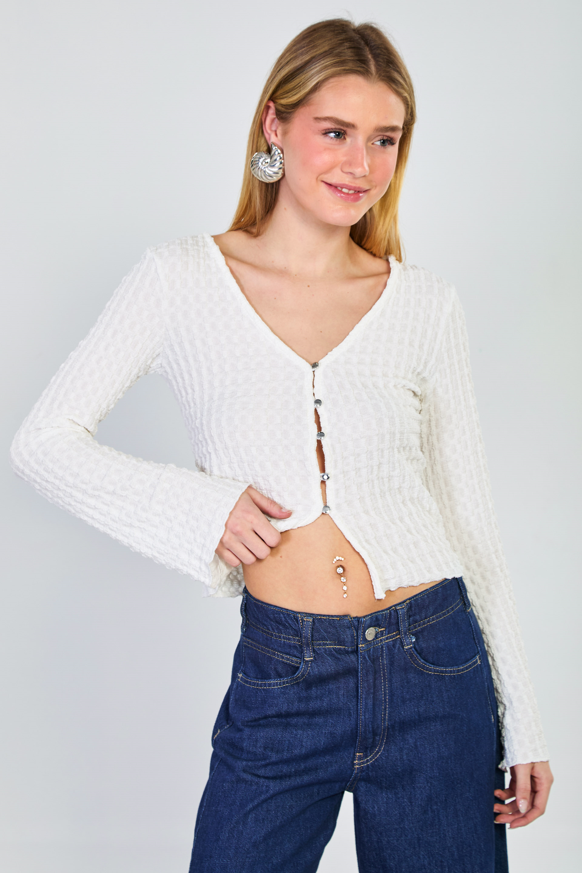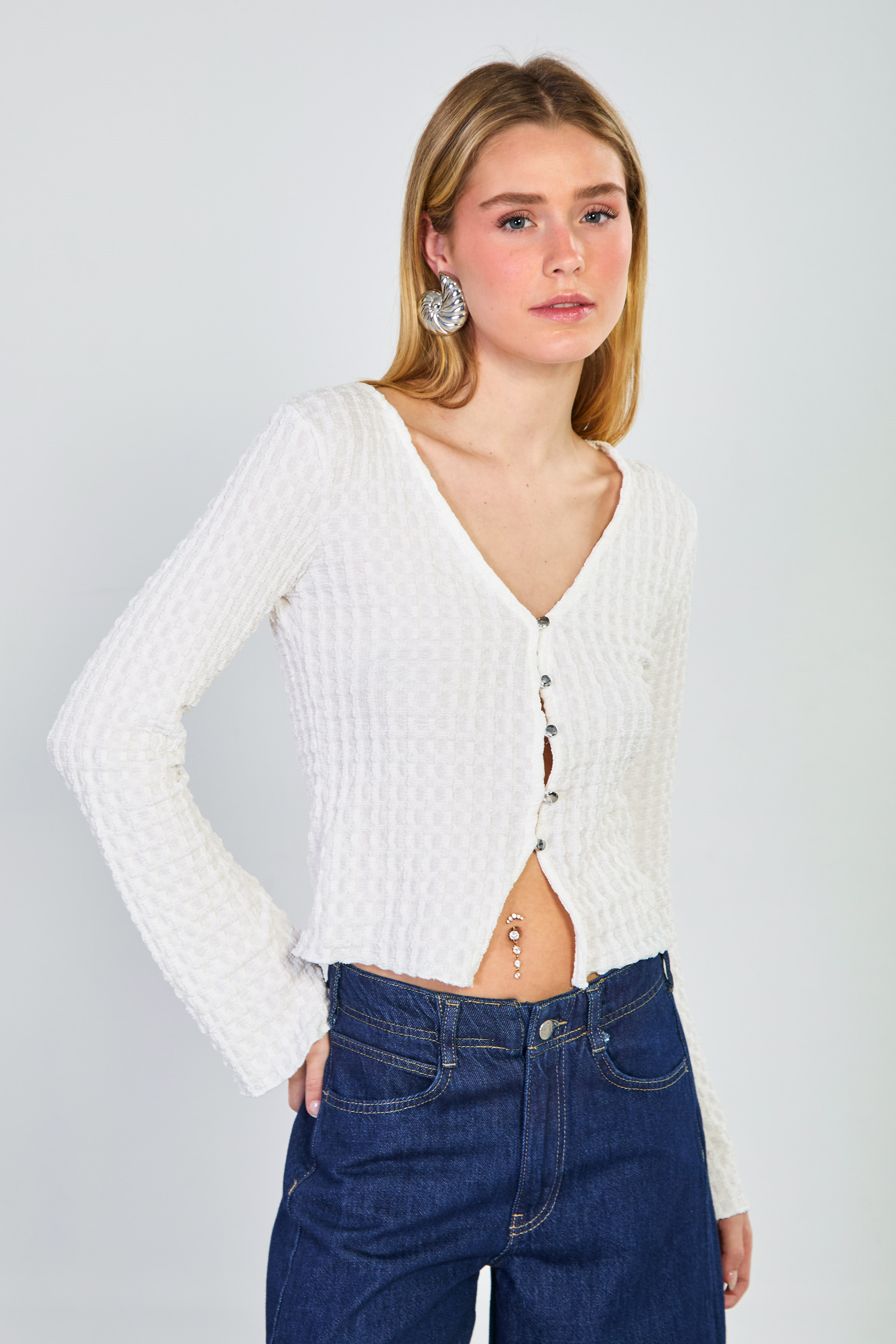Kadın Önü Düğmeli İspanyol Kol Bluz - Ekru
