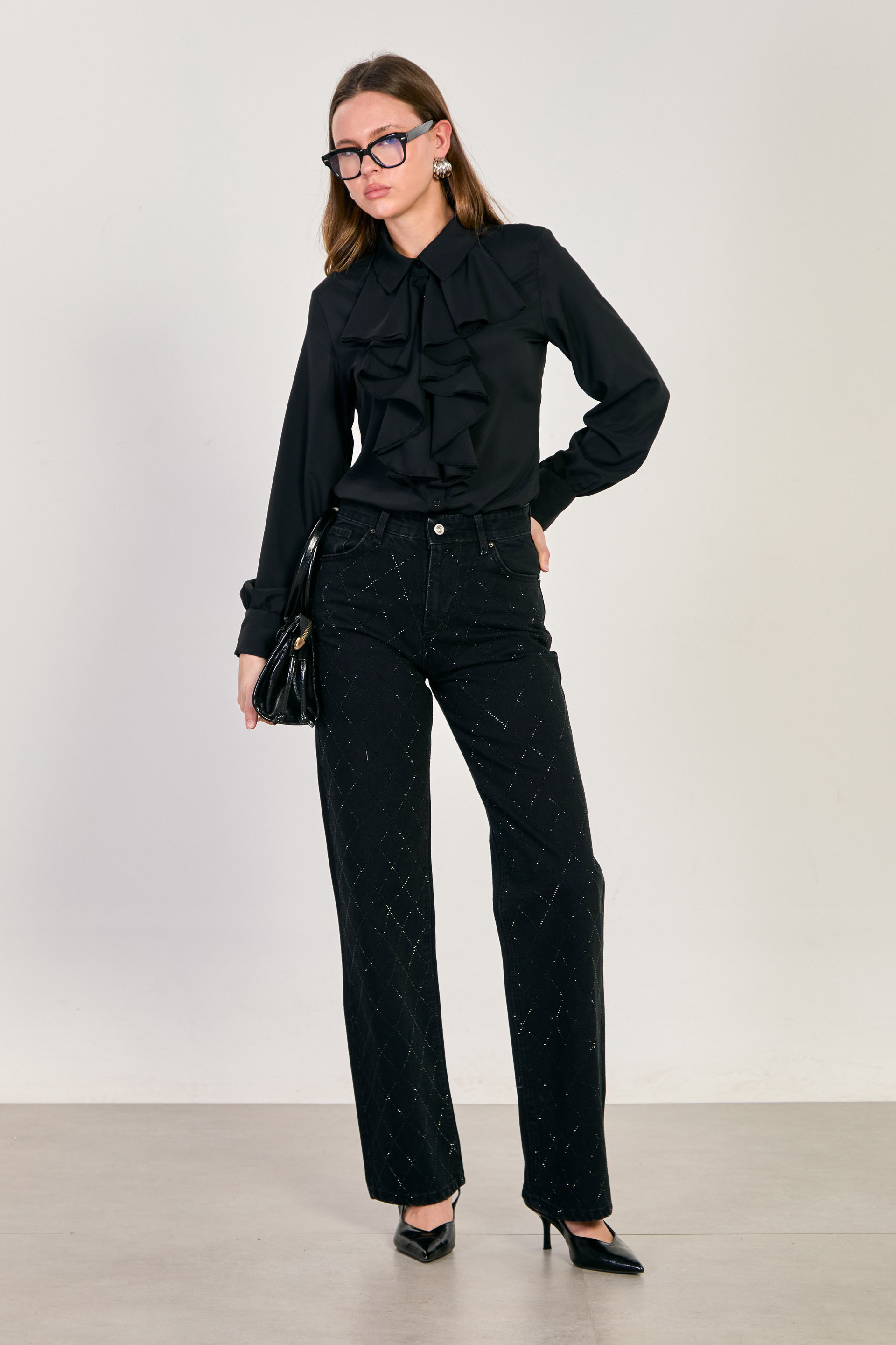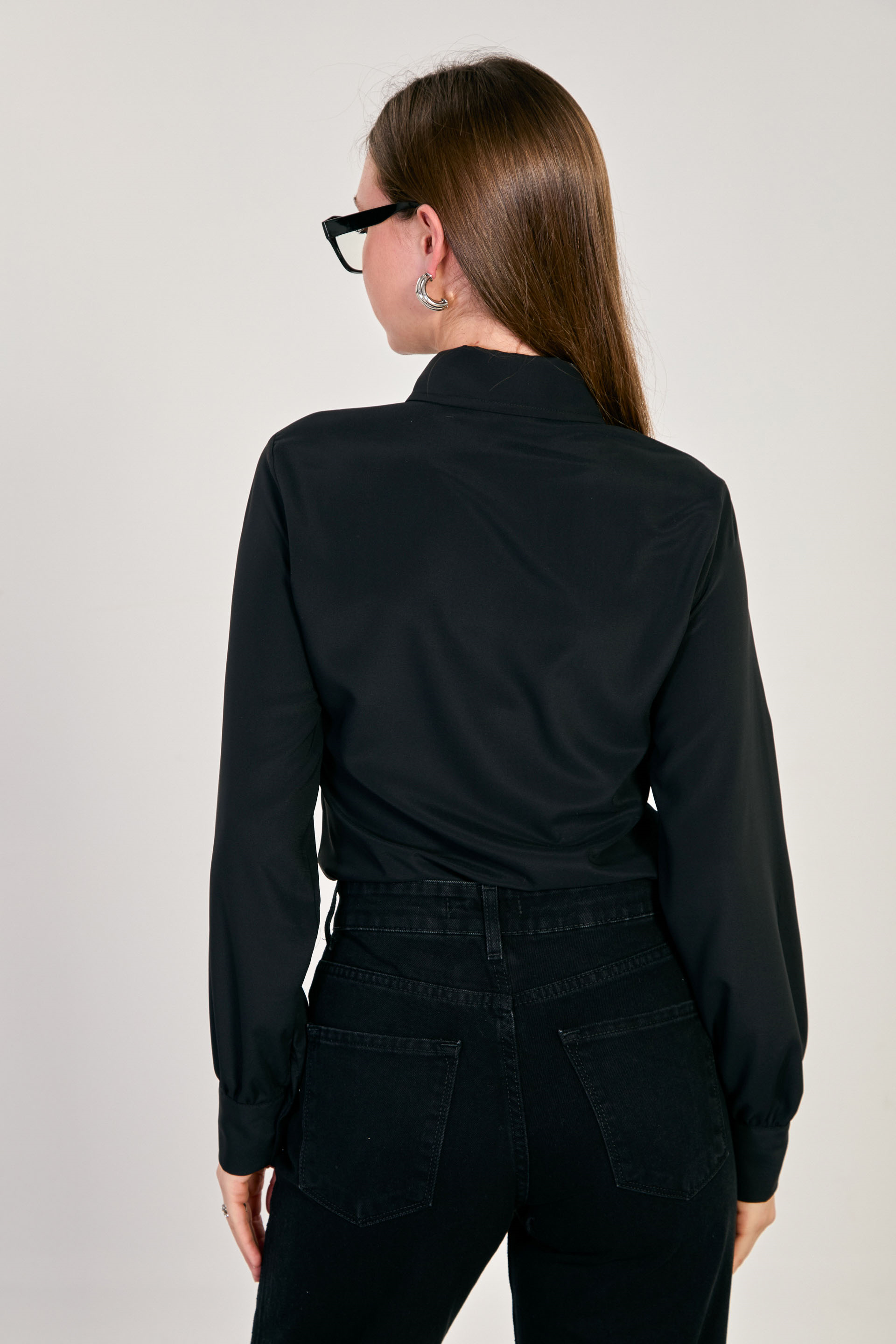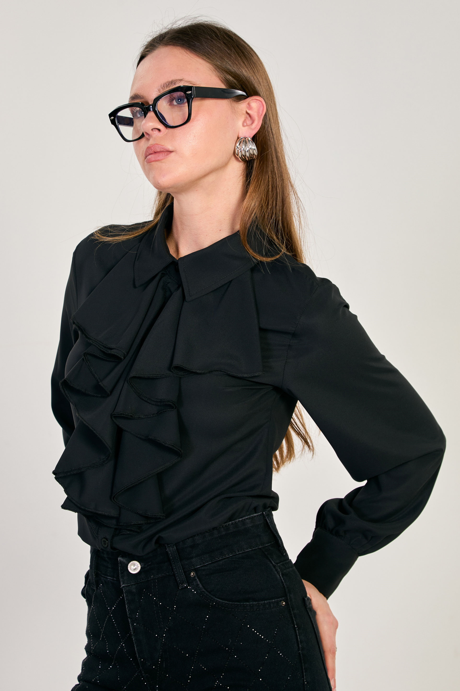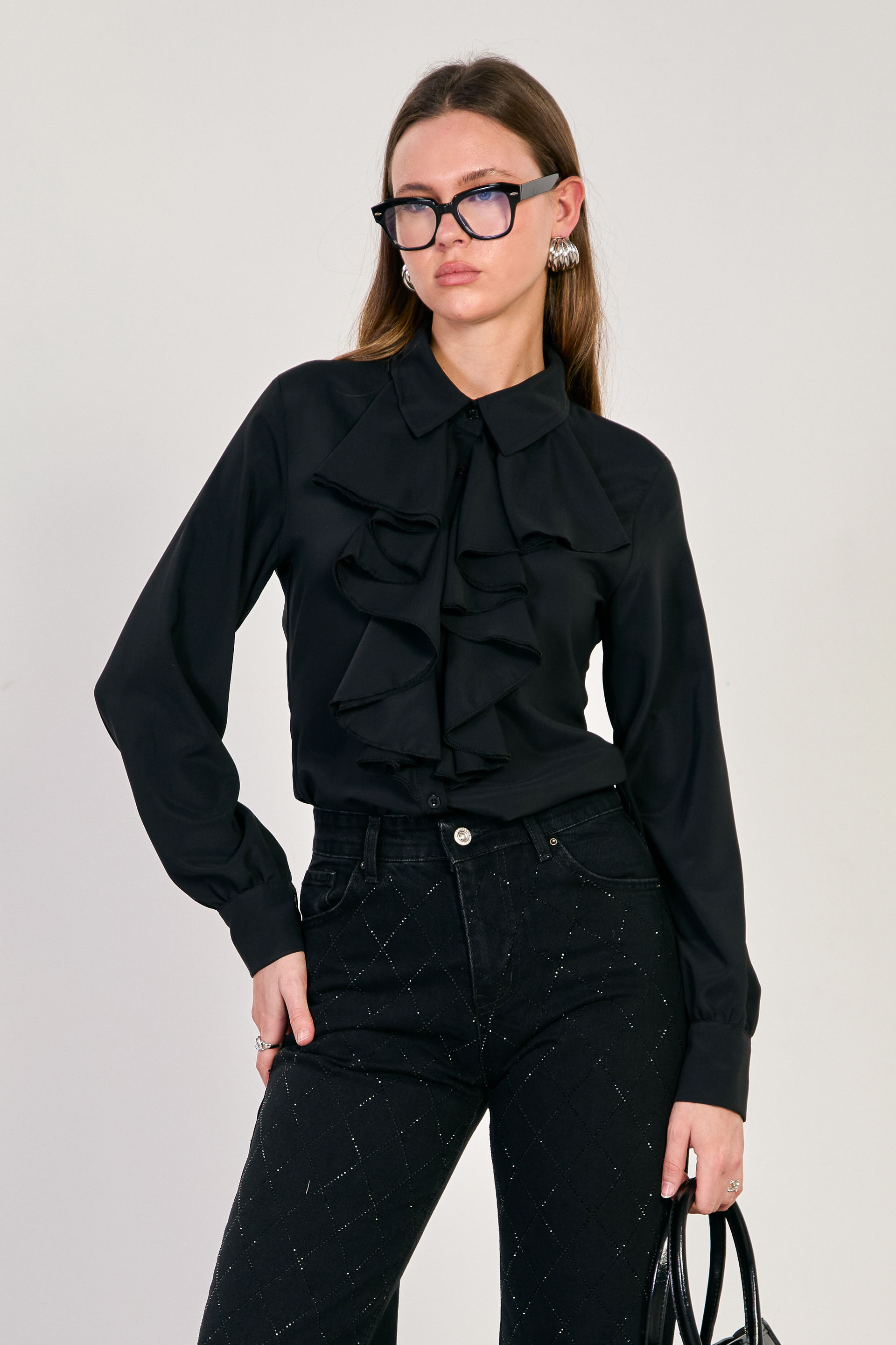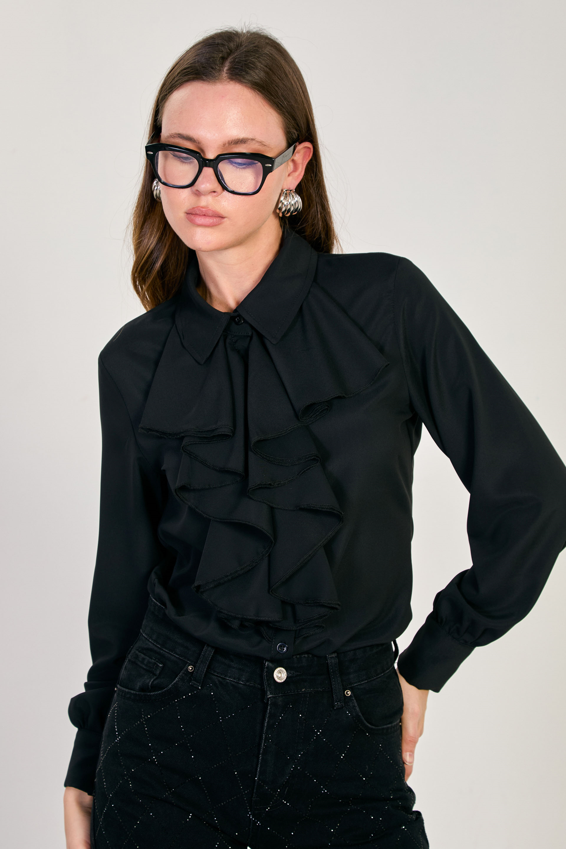 Kadın Önü Fırfırlı Uzun Kollu Gömlek - Siyah