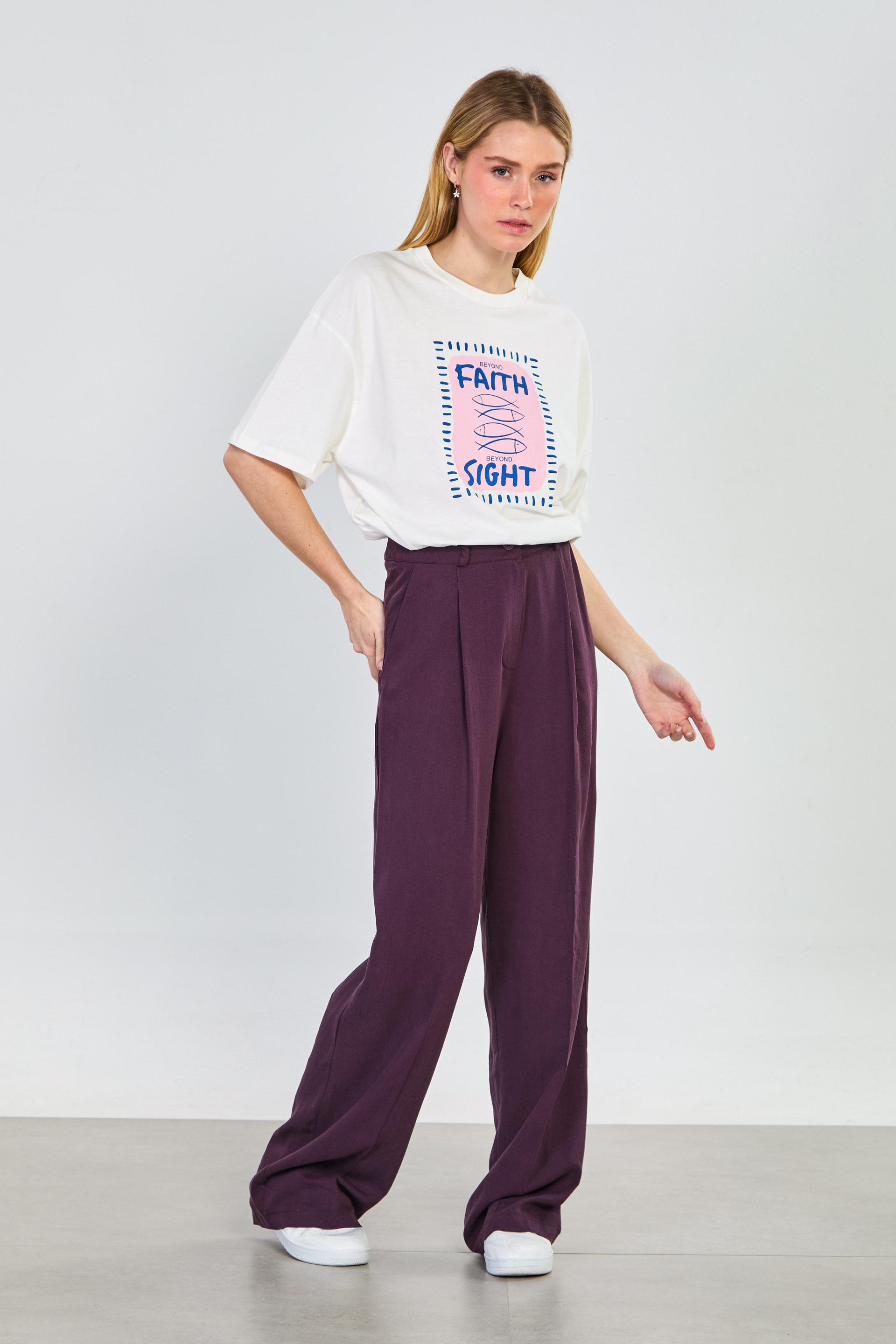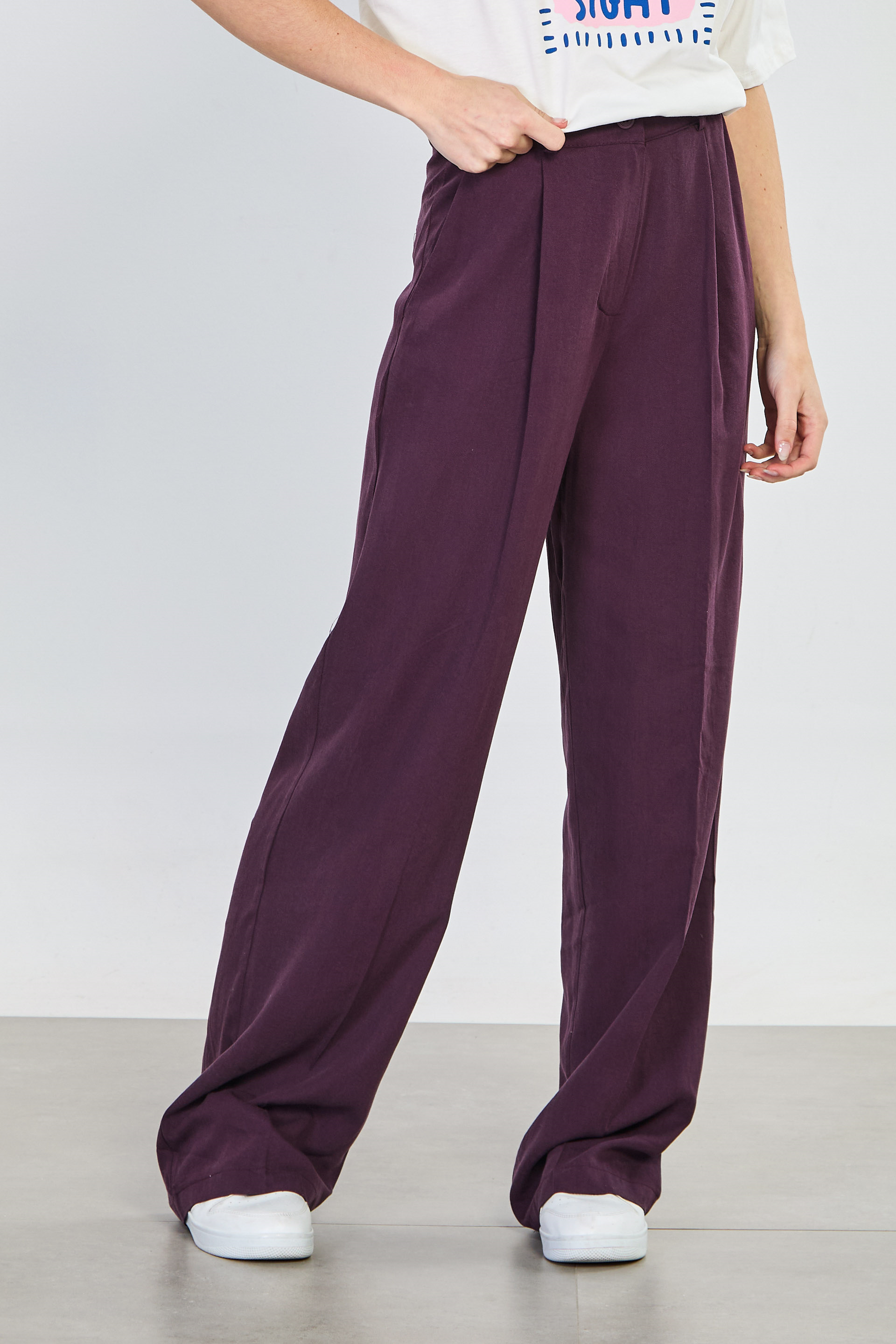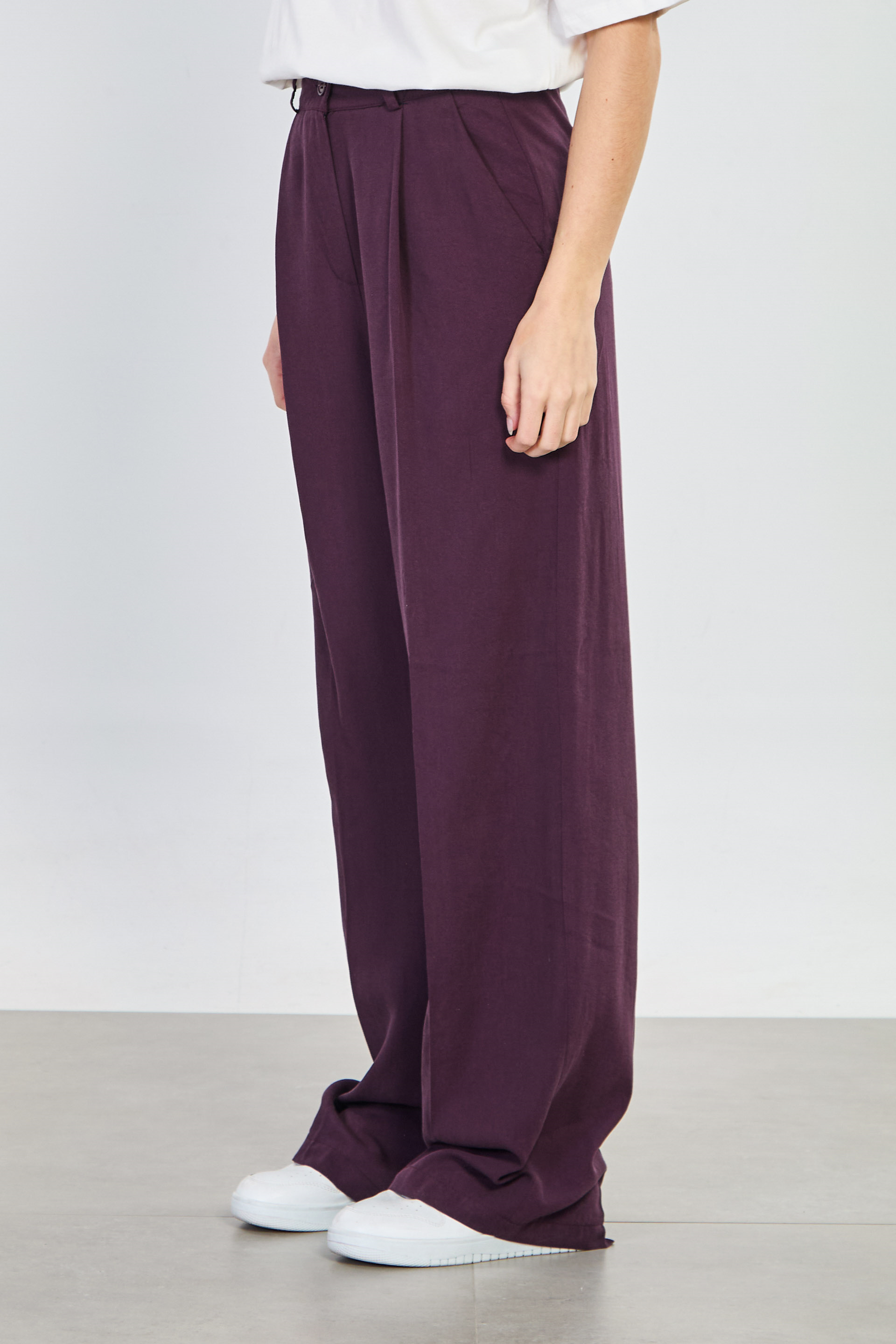 Kadın Önü Pileli Palazzo Pantolon - Mürdüm