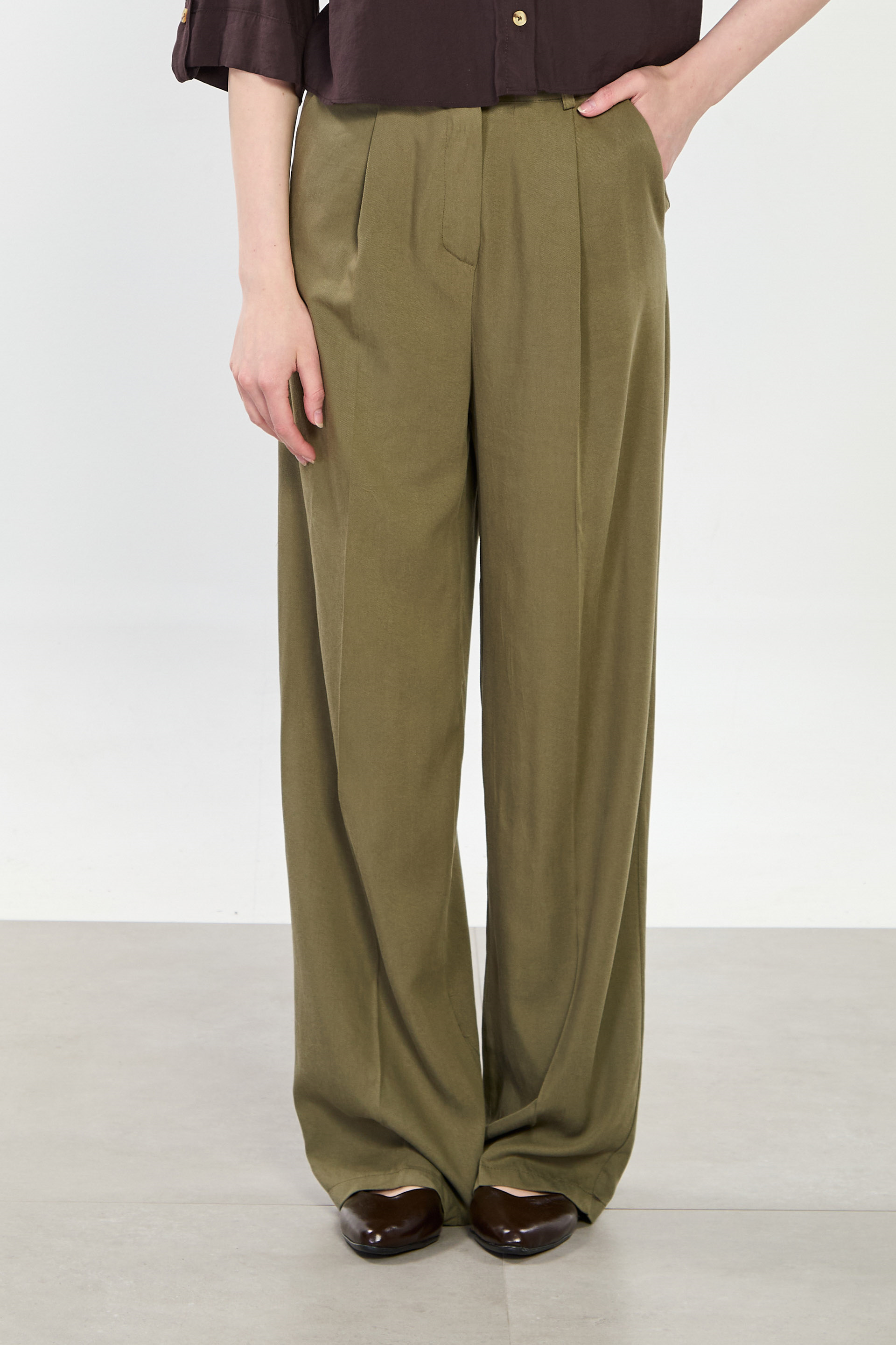 Kadın Önü Pileli Palazzo Pantolon - Olive
