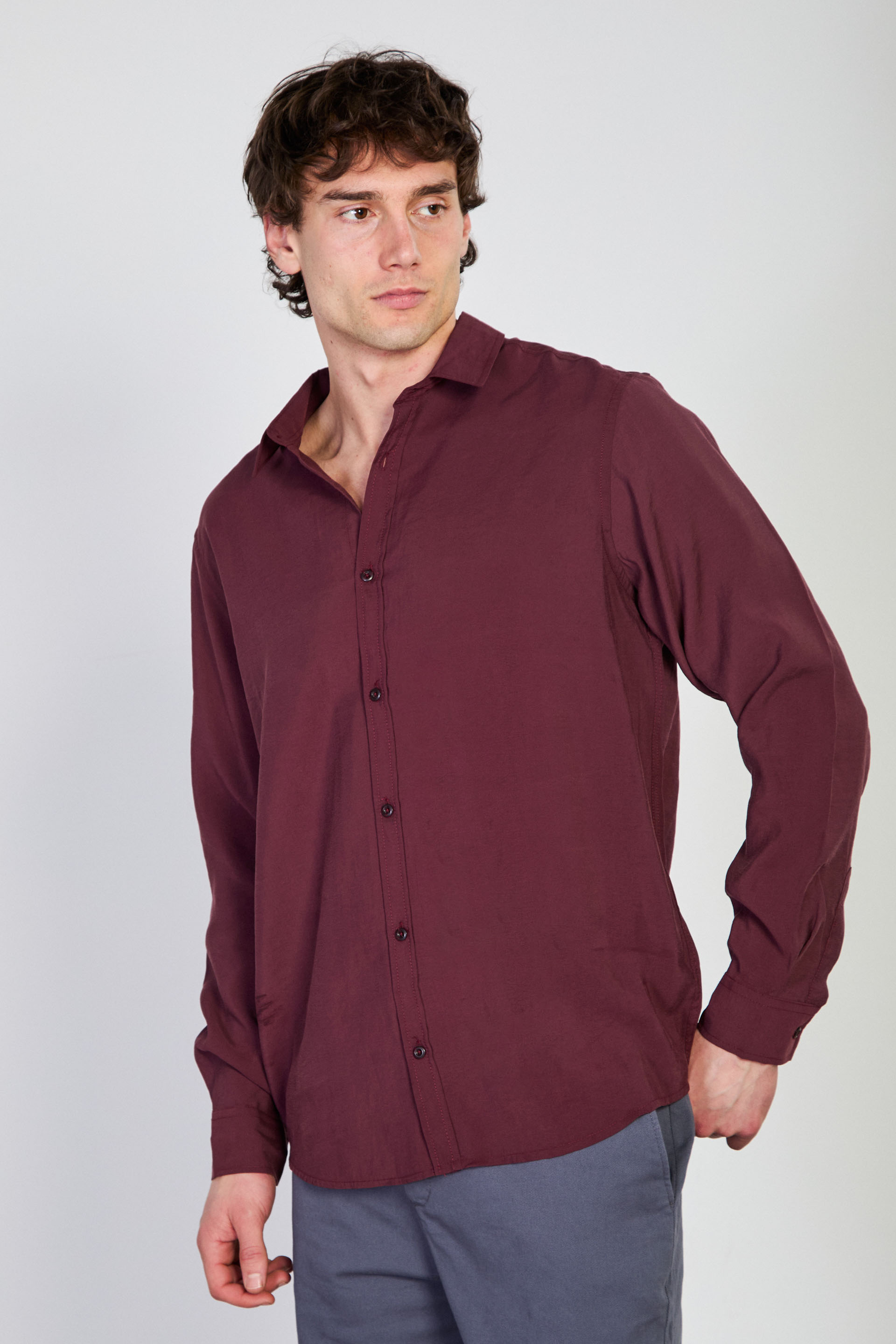 Erkek Oversize Modal Gömlek - Bordo