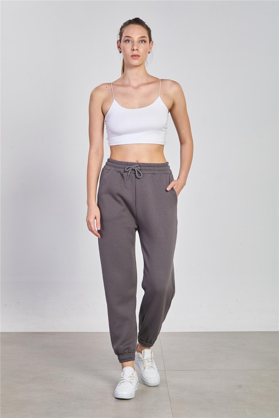 Kadın Paça Lastikli Şardonlu Eşofman Altı - Antrasit