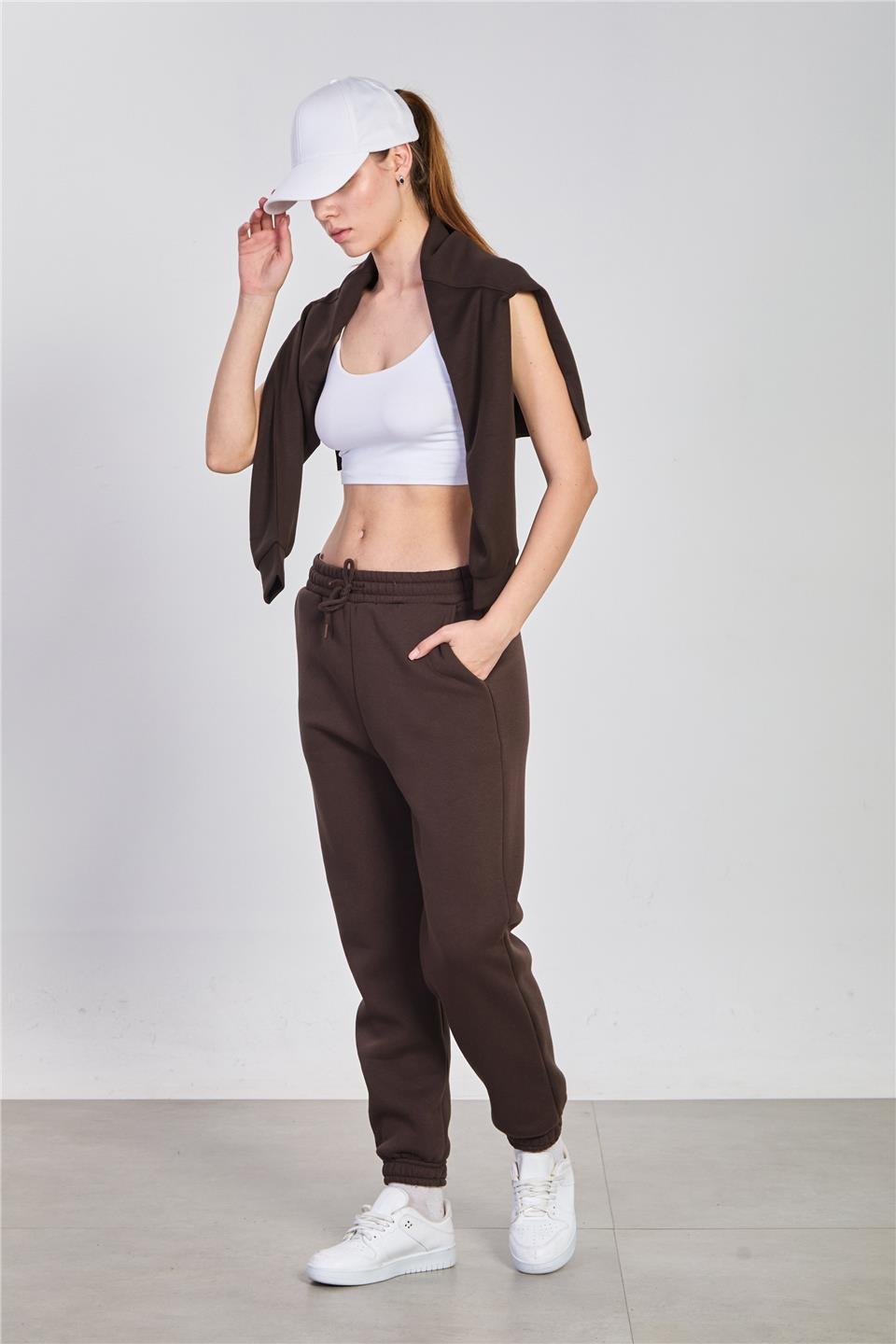 Kadın Paça Lastikli Şardonlu Eşofman Altı - Kahve