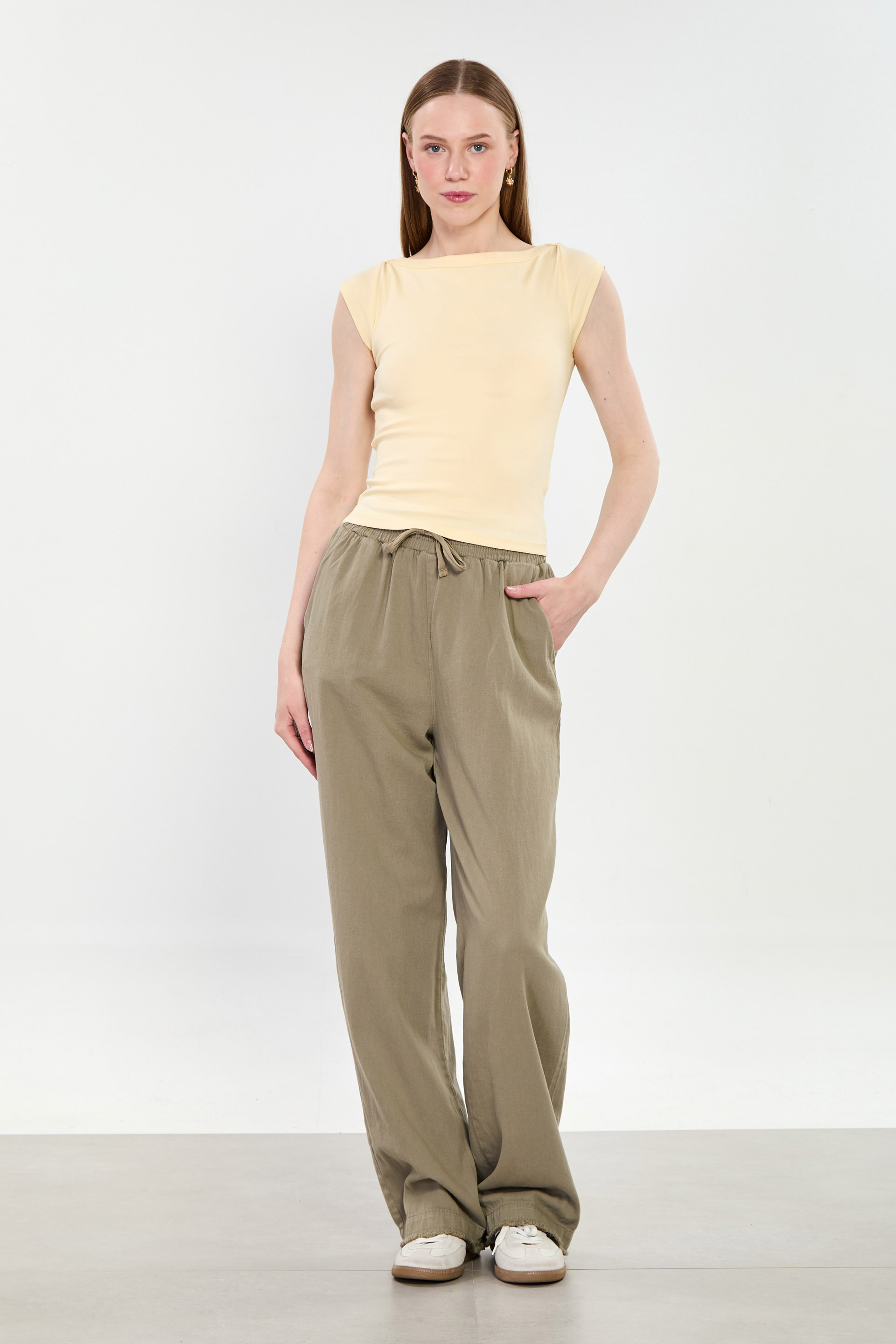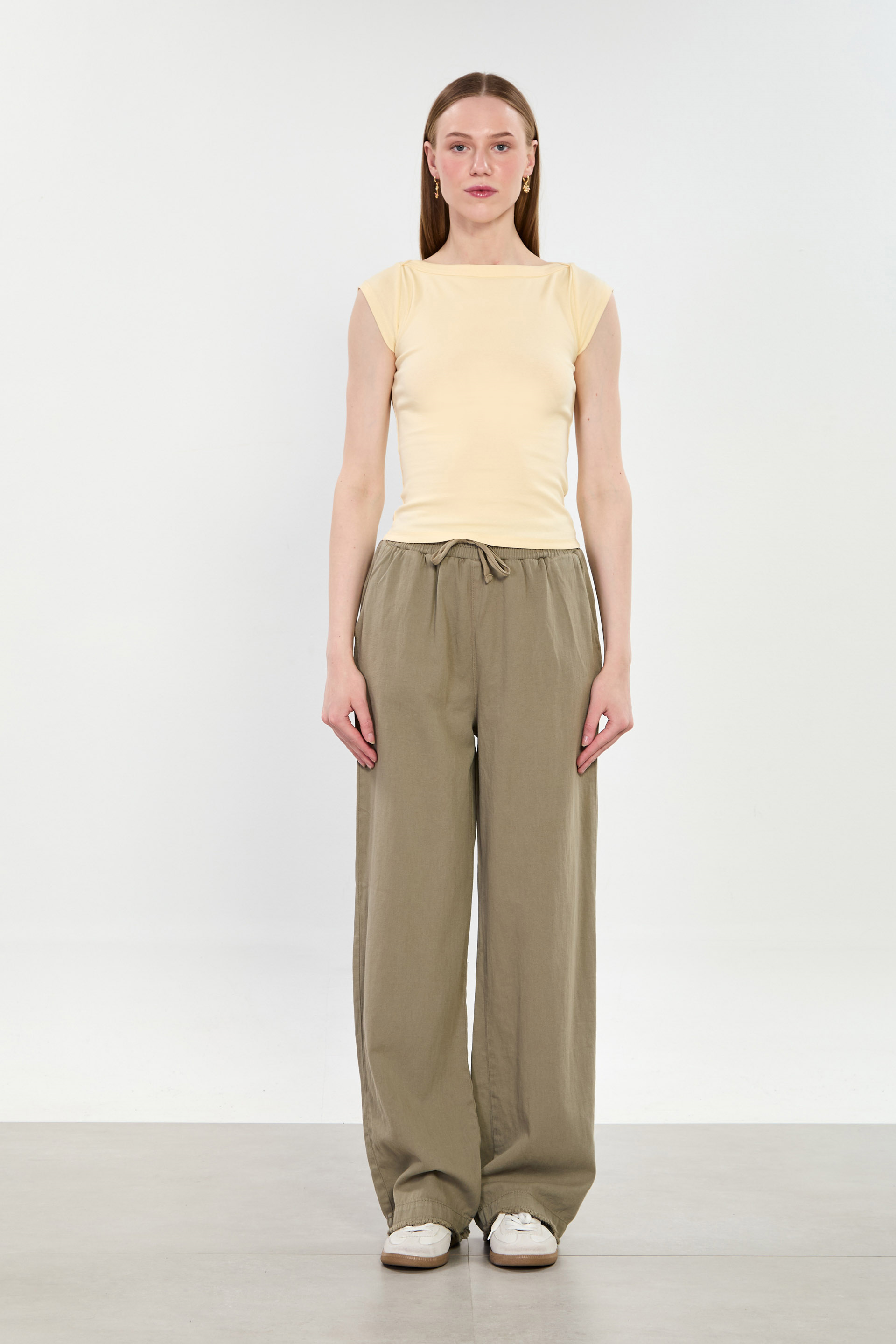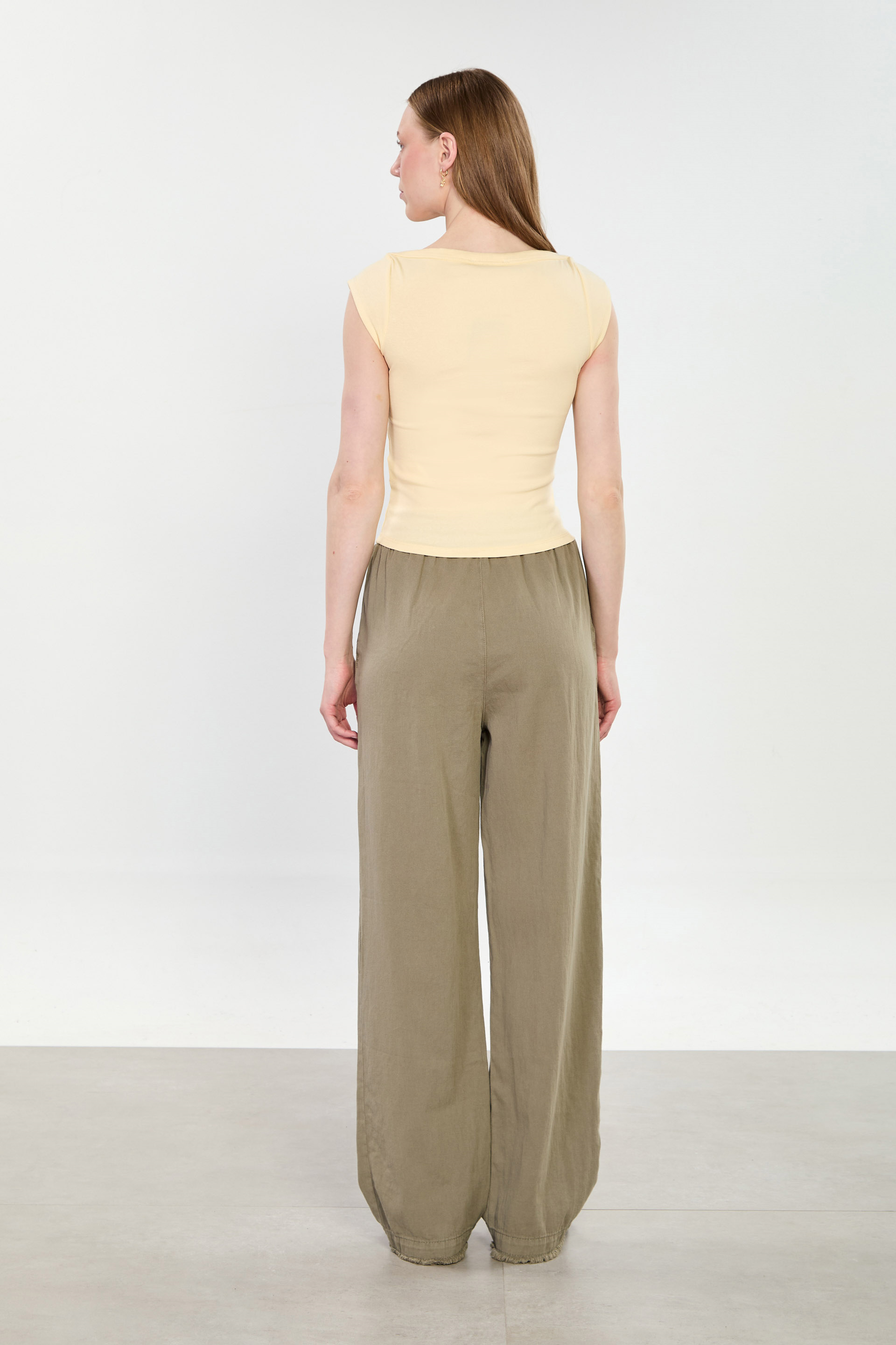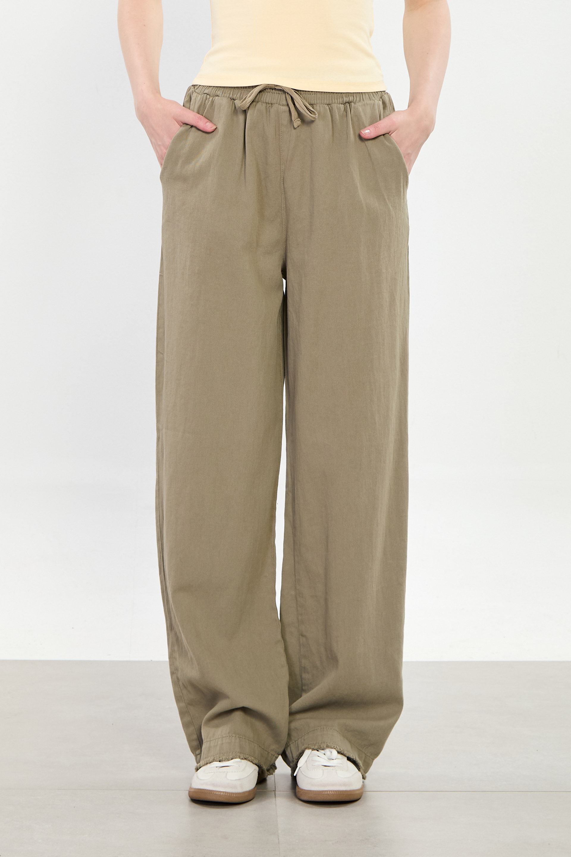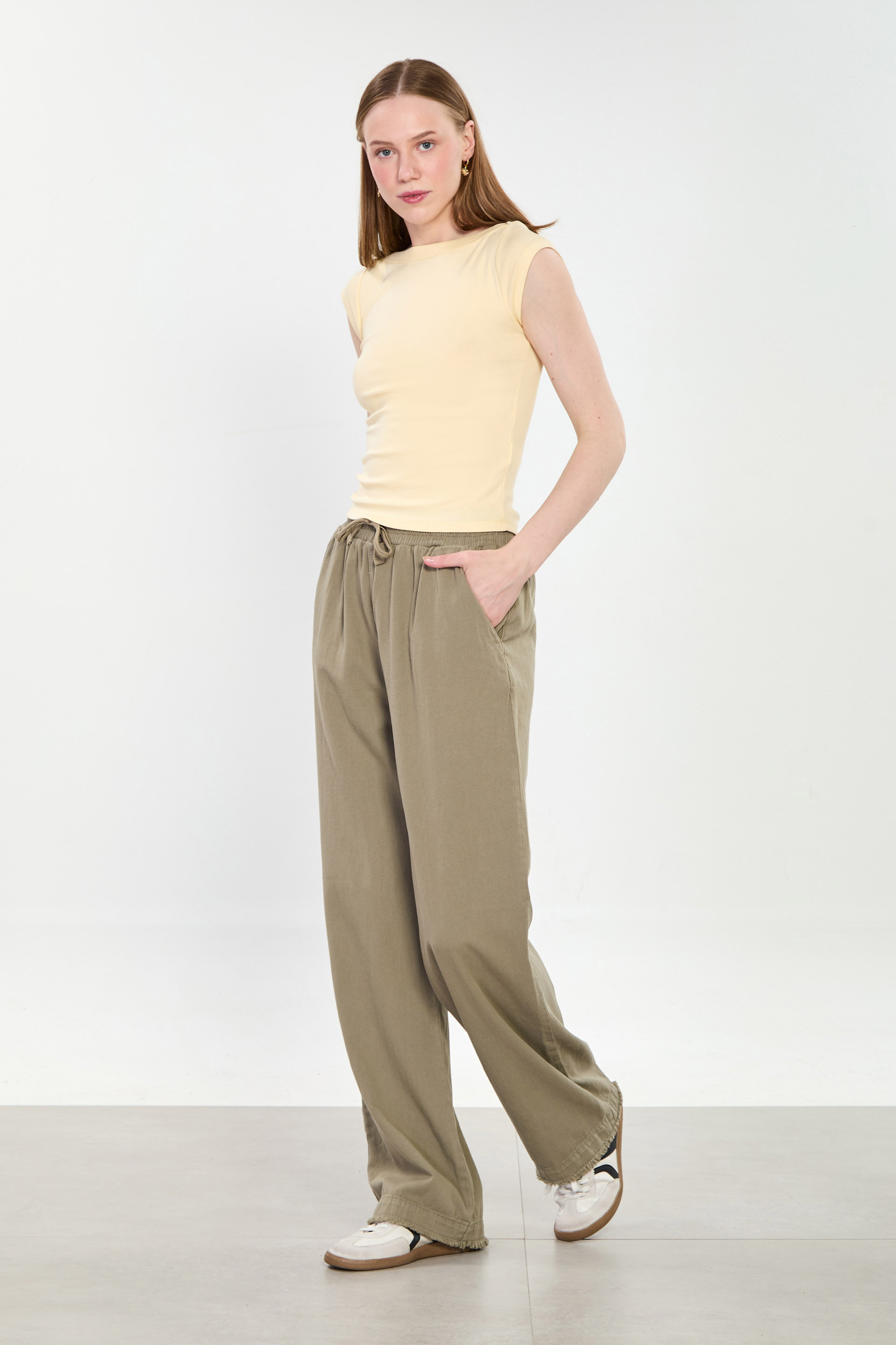 Kadın Paça Püsküllü Bol Paça Pantolon - Haki