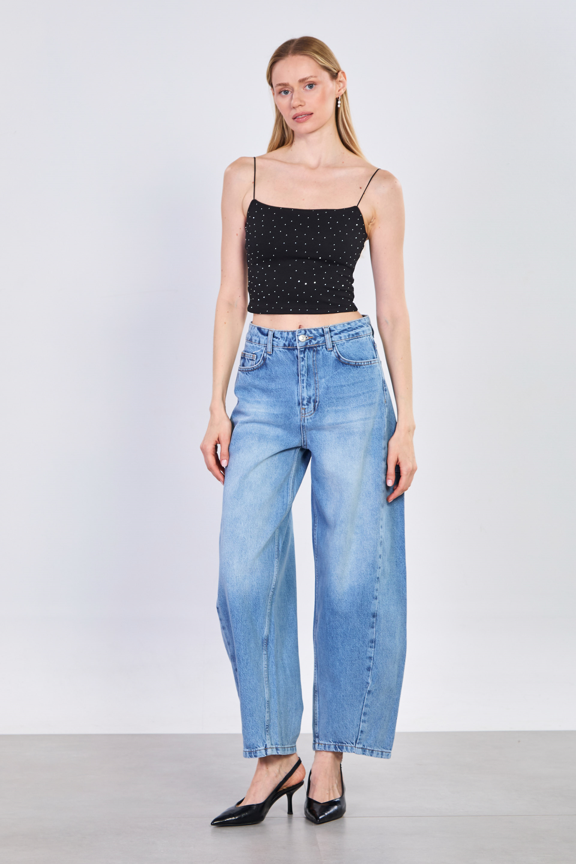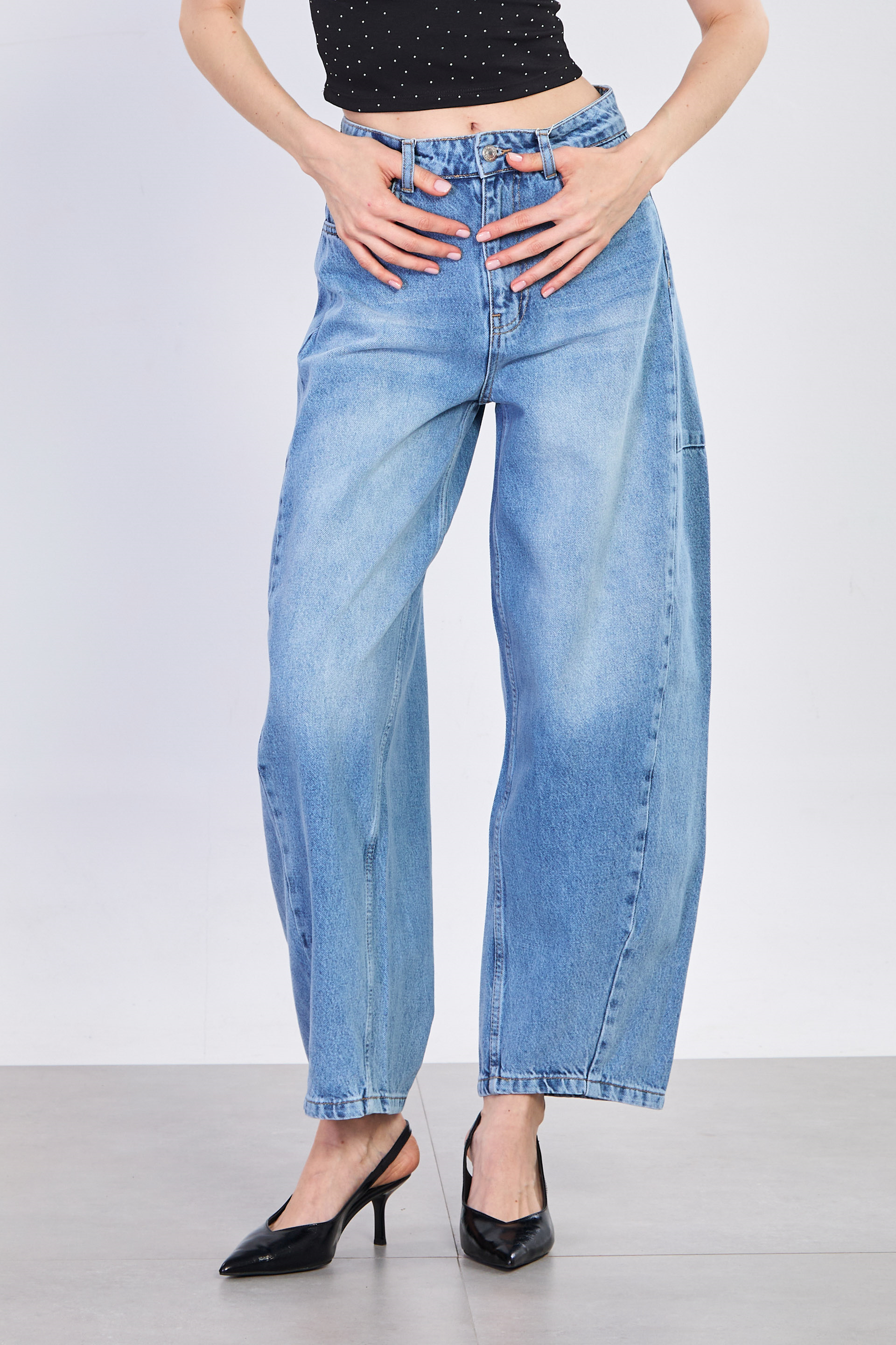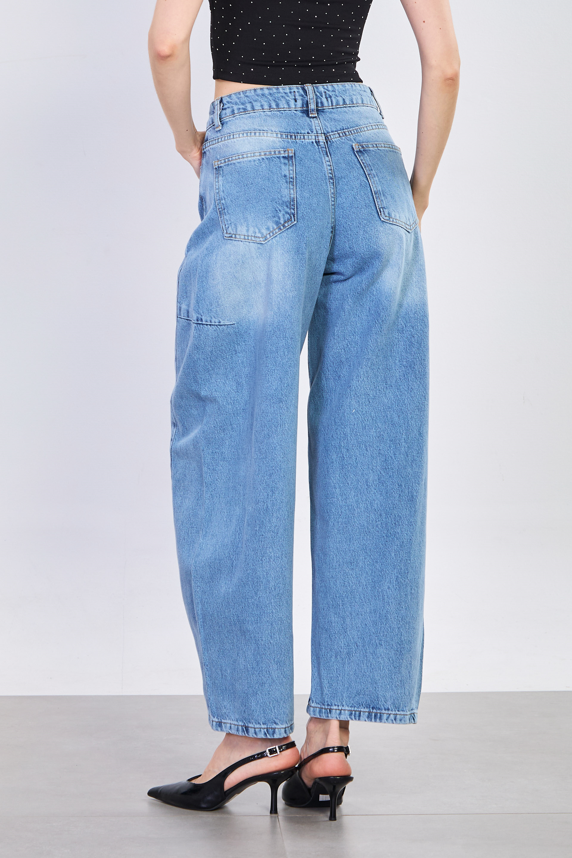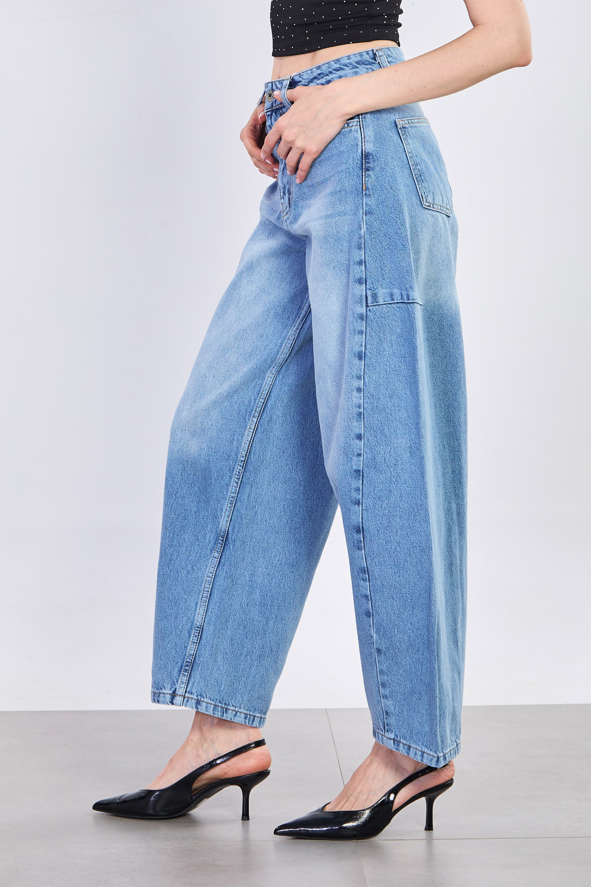 Kadın Parçalı Balon Jean Pantolon - Mavi Buz Y.