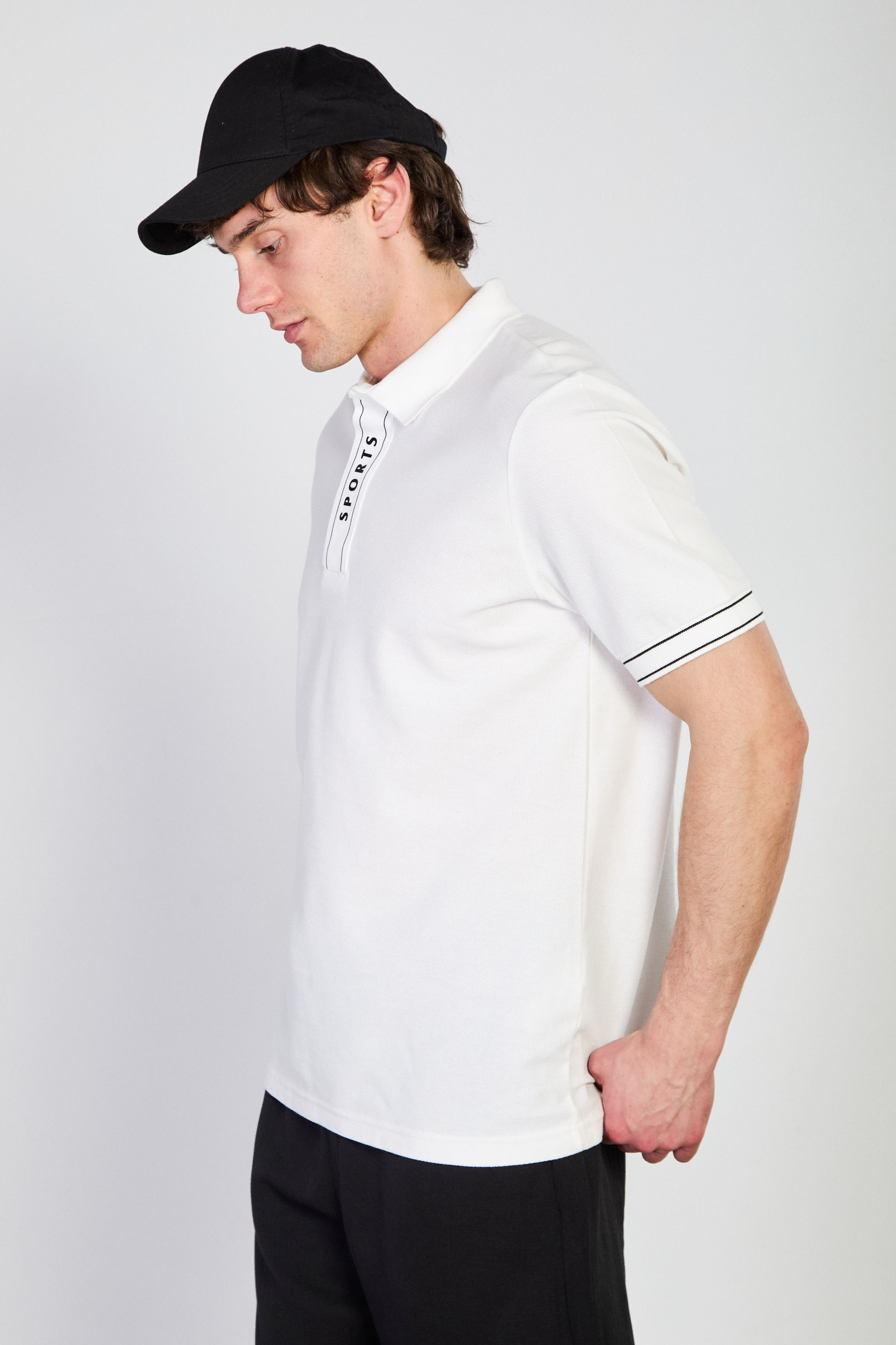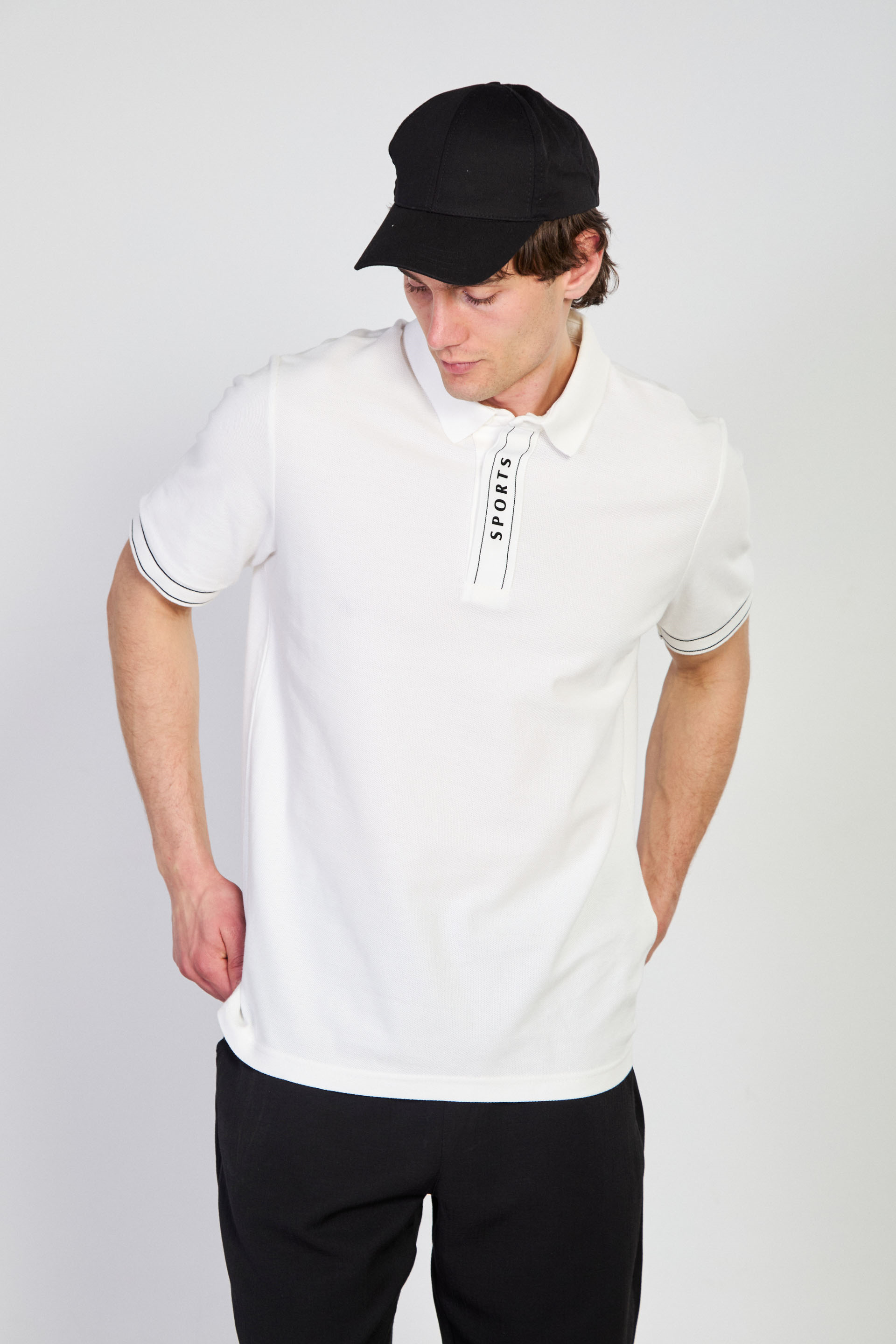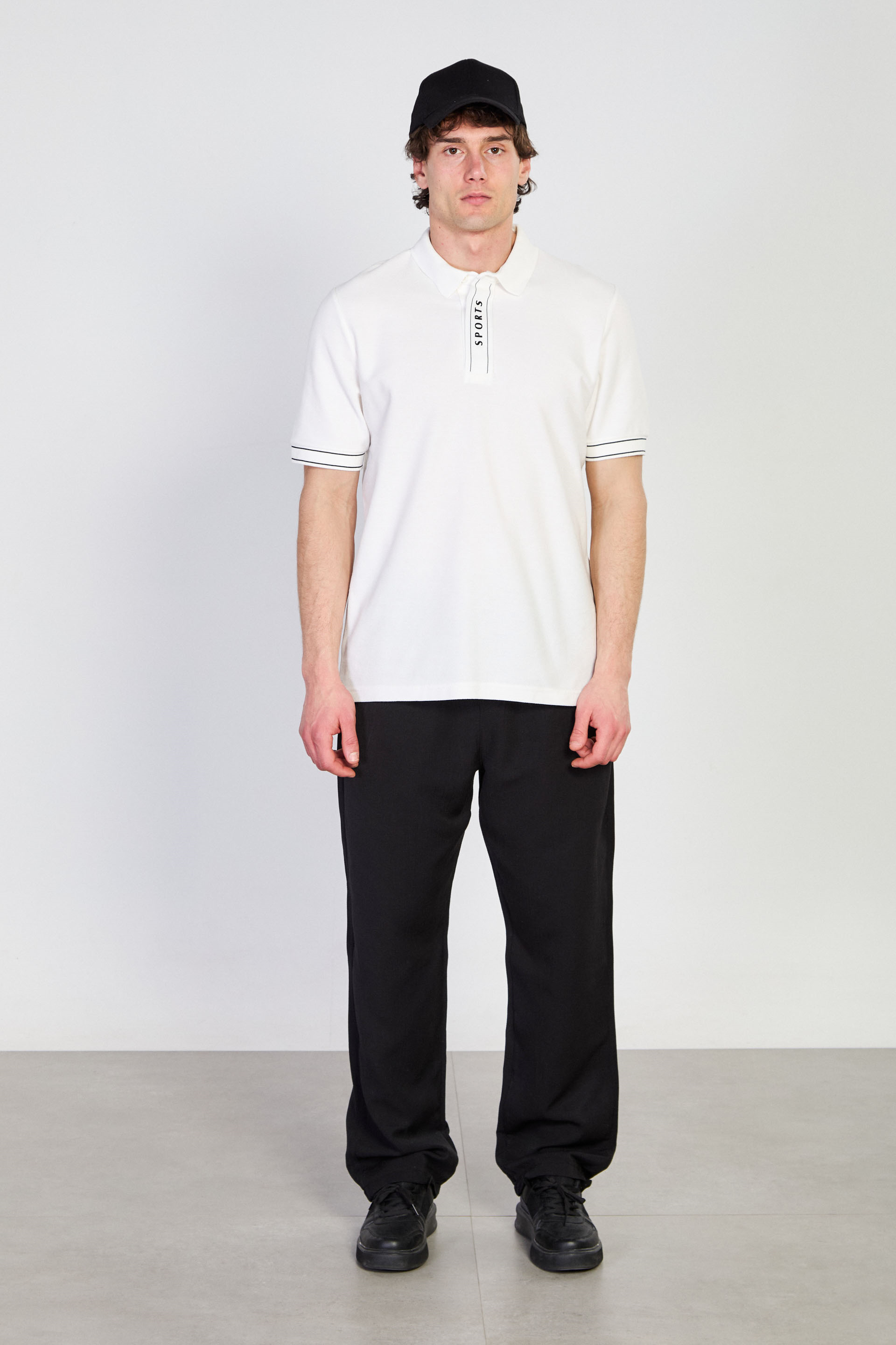 Erkek Pat Baskılı Polo Yaka T-Shirt - Ekru