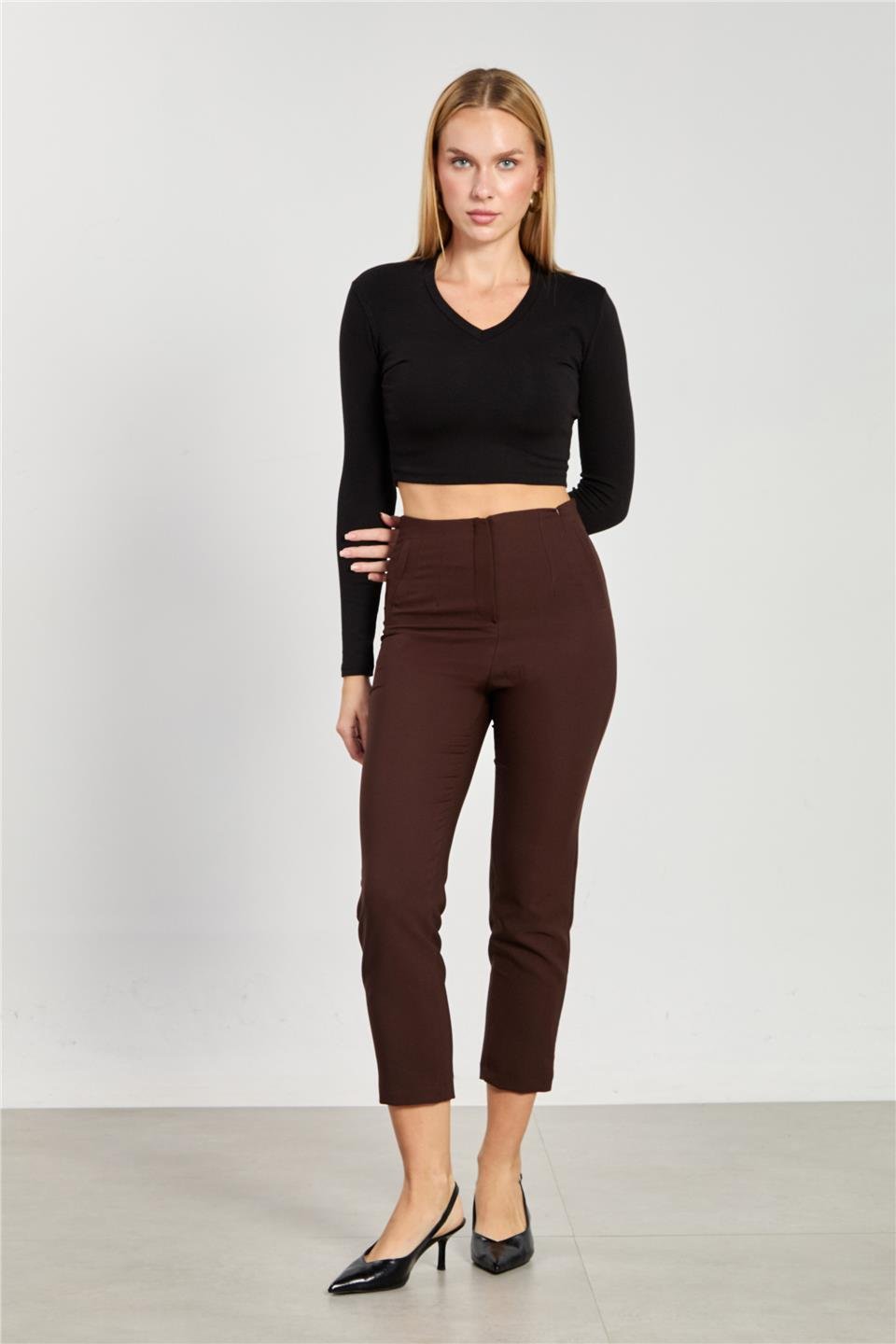 Kadın Pensli Kumaş Pantolon - Kahve