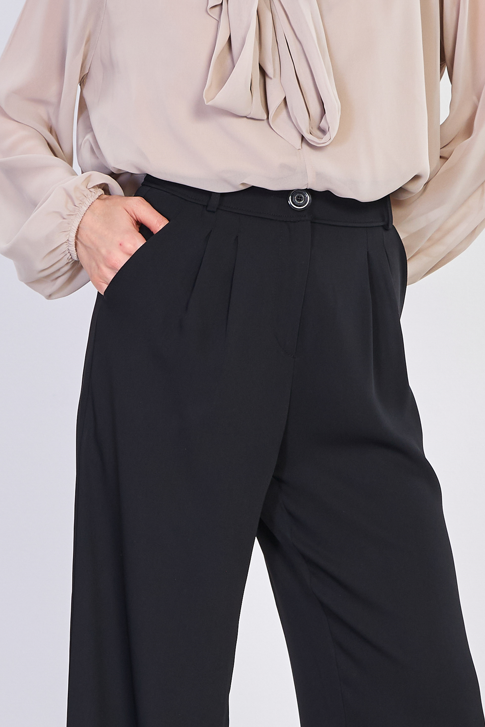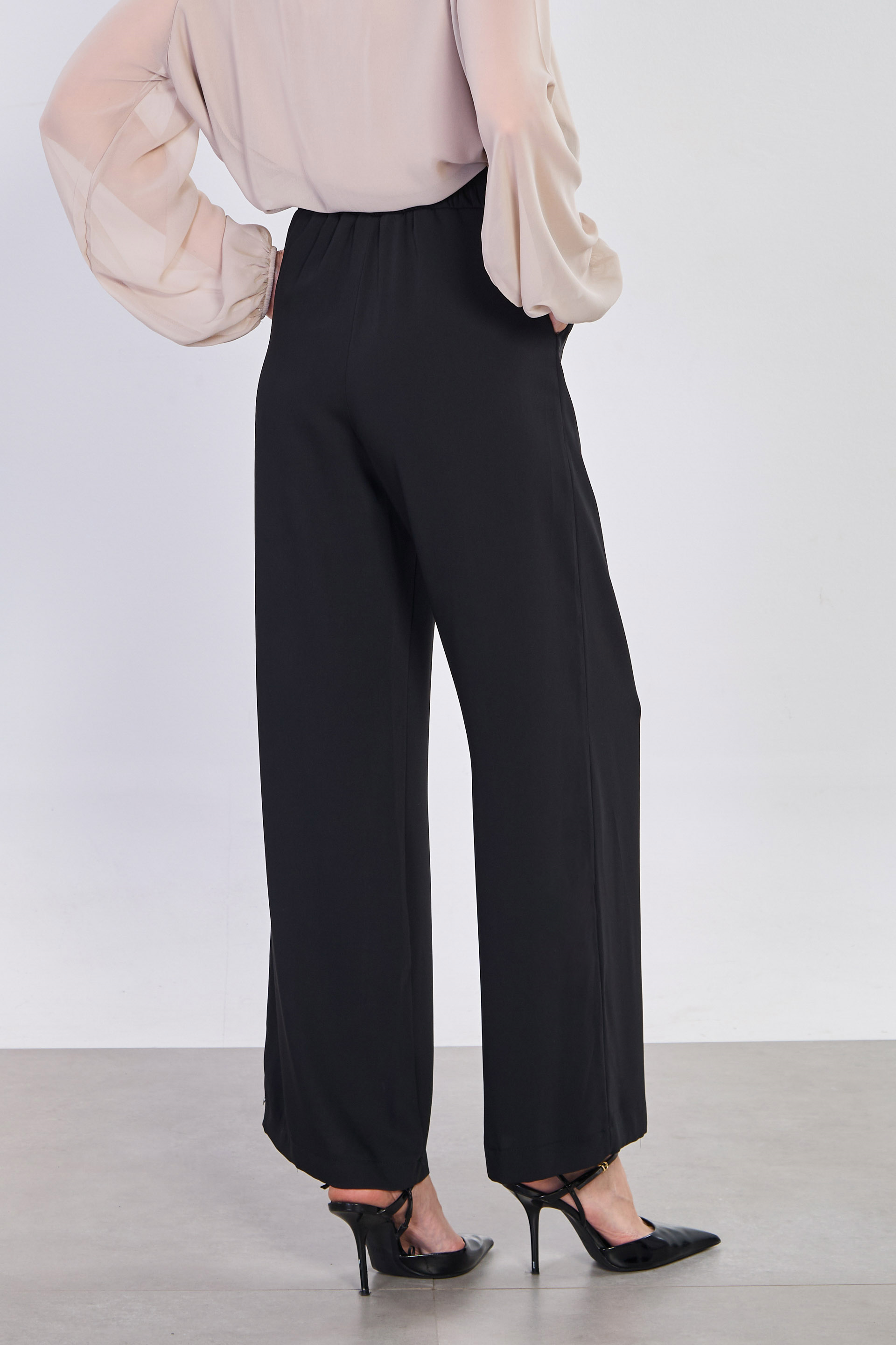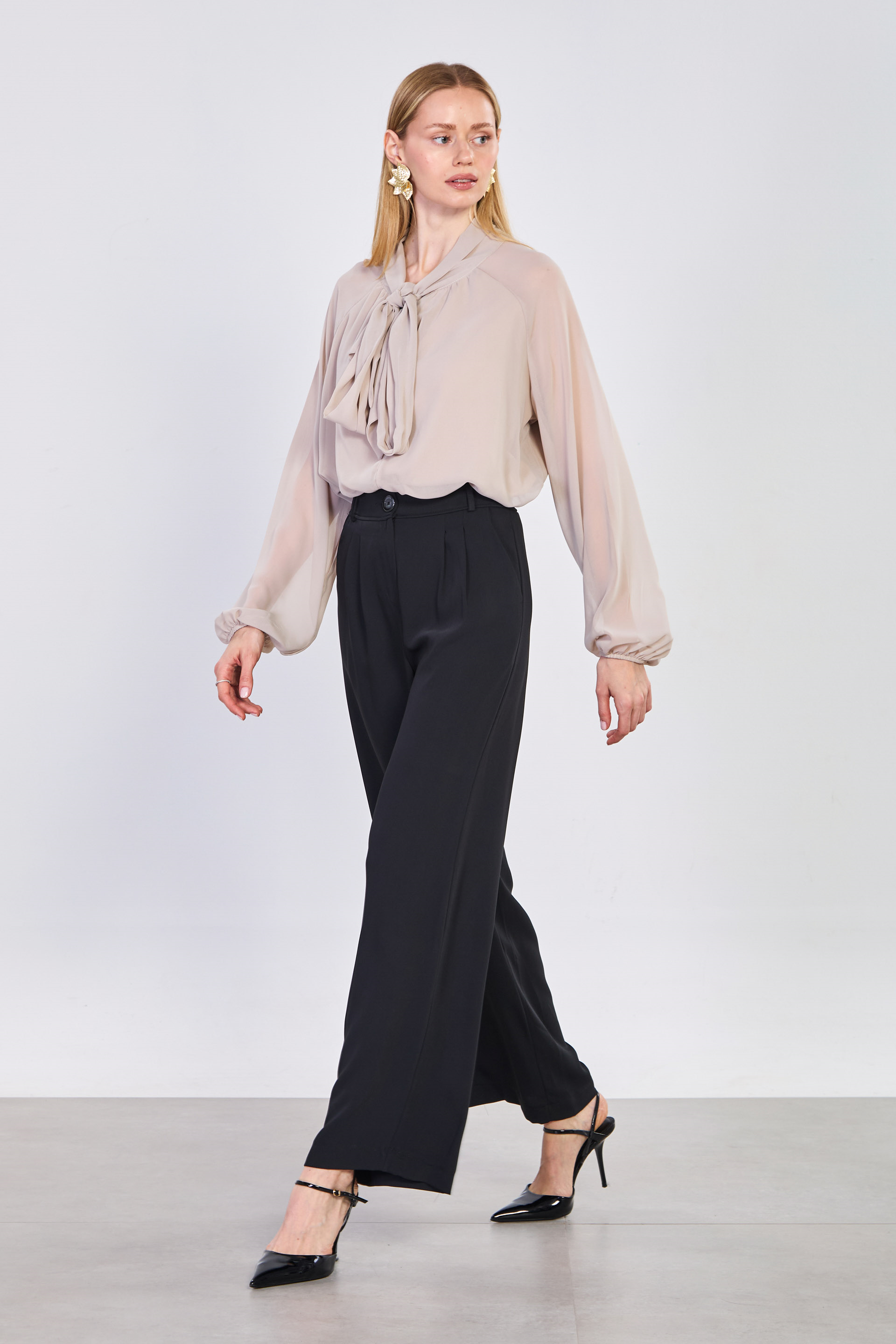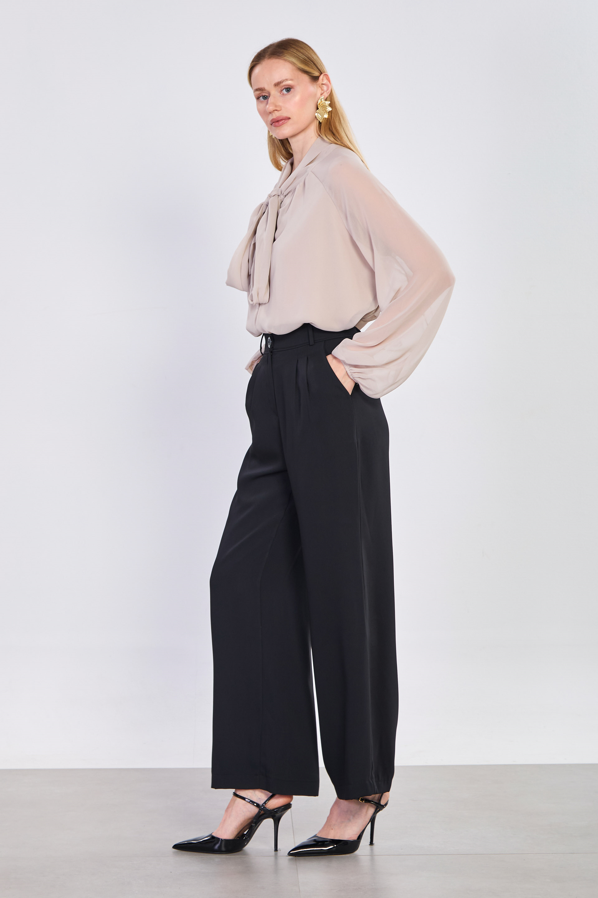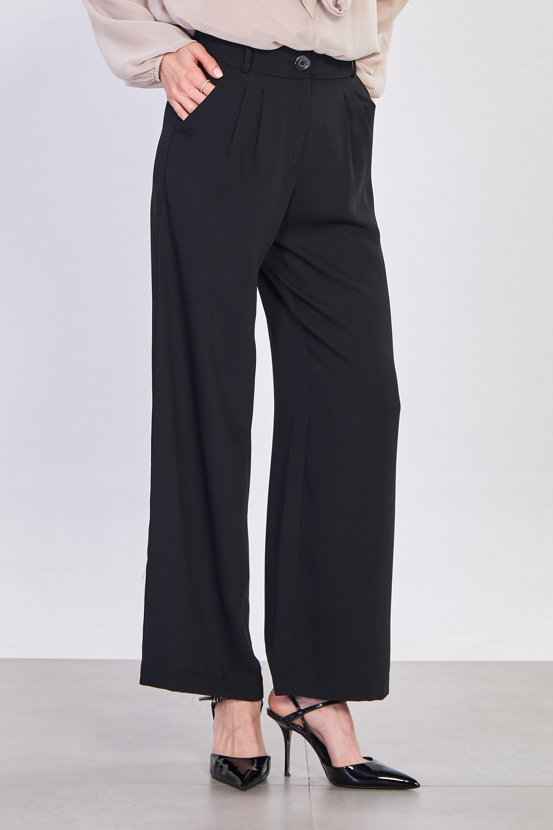 Kadın Pileli Dökümlü Bol Pantolon - Siyah
