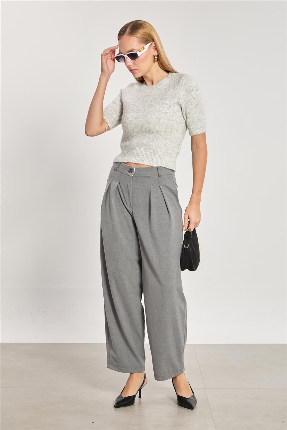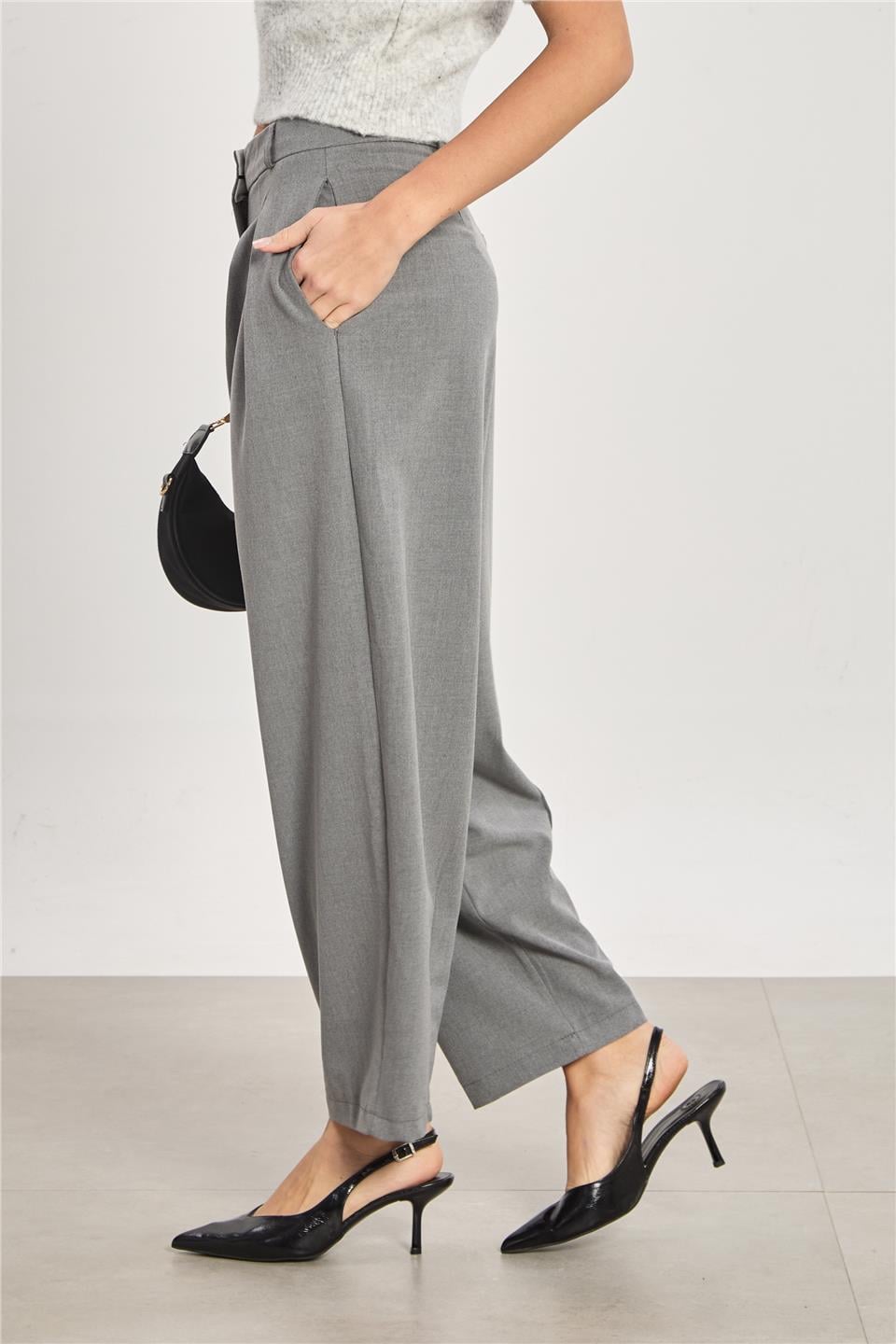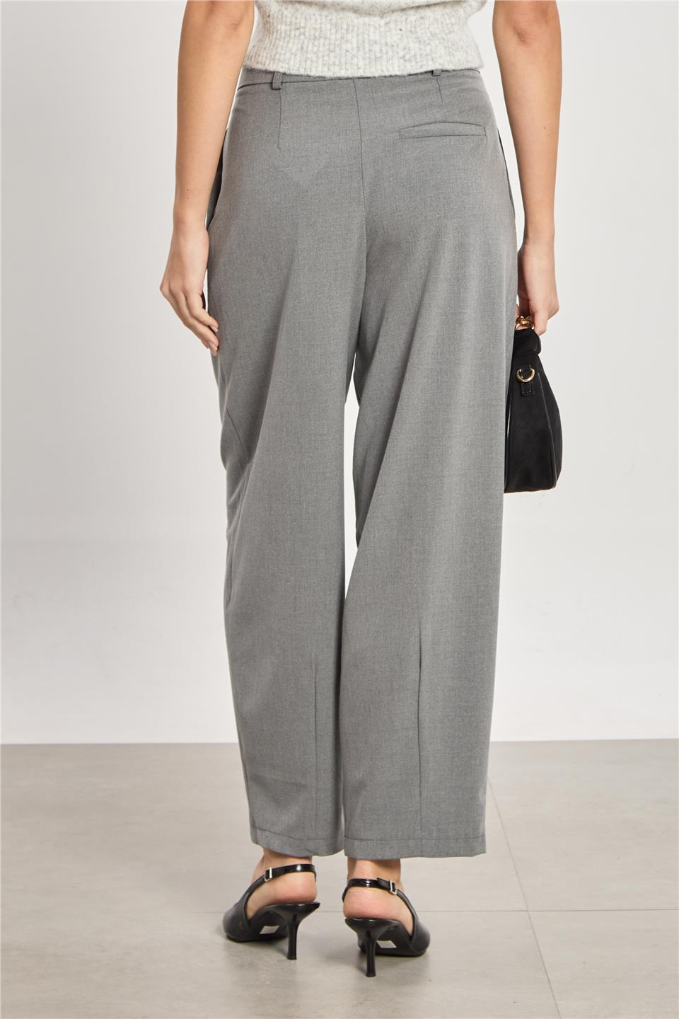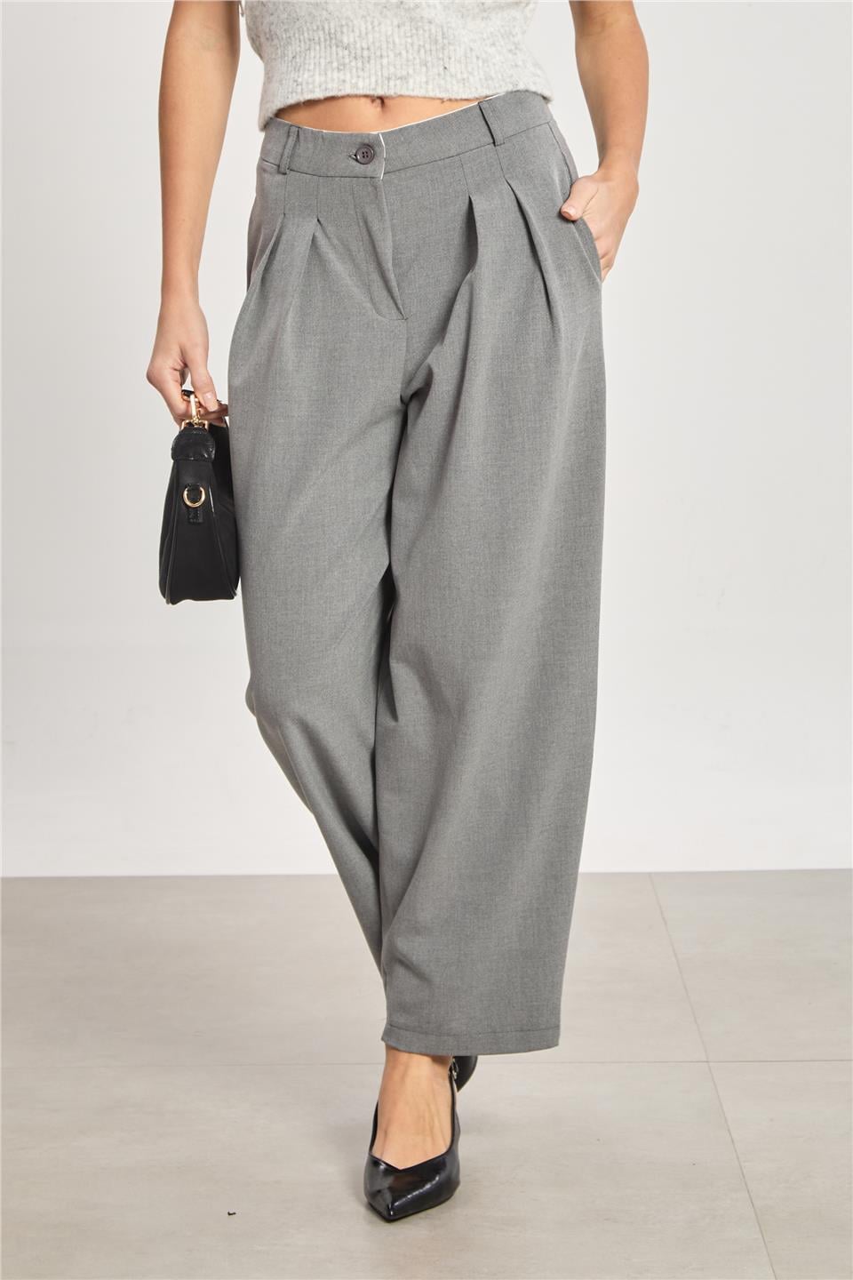 Kadın Pileli Havuç Pantolon - Okul Gri
