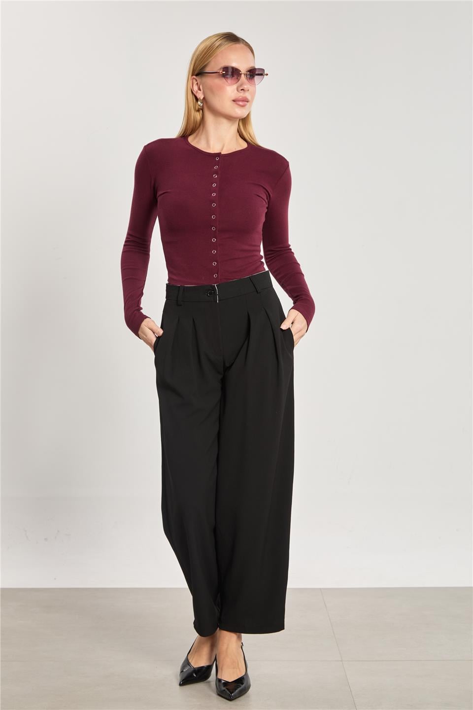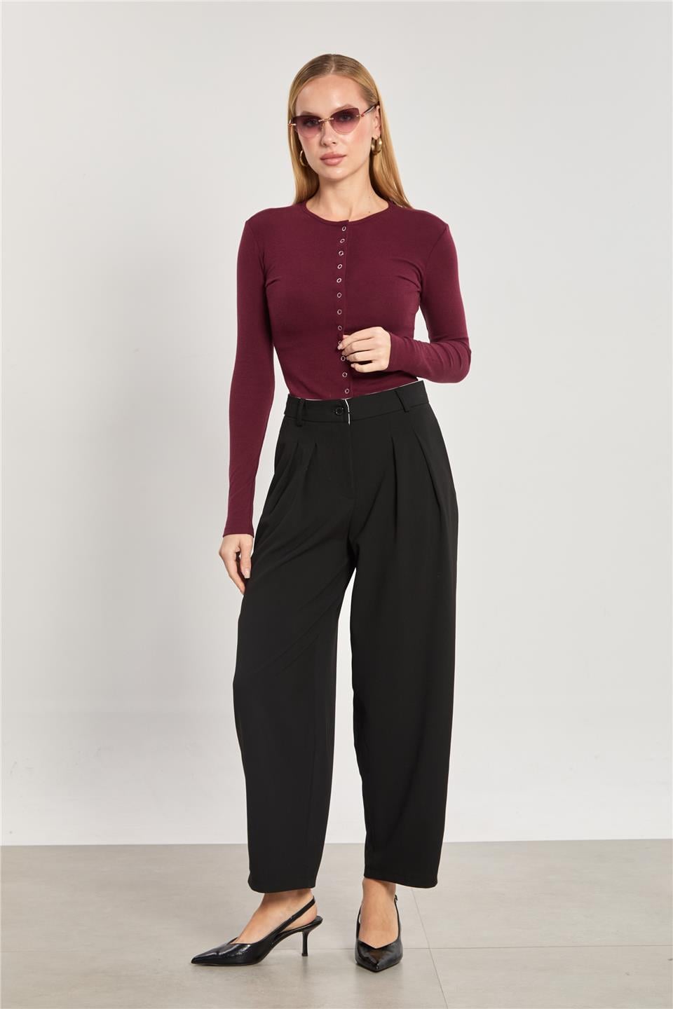 Kadın Pileli Havuç Pantolon - Siyah
