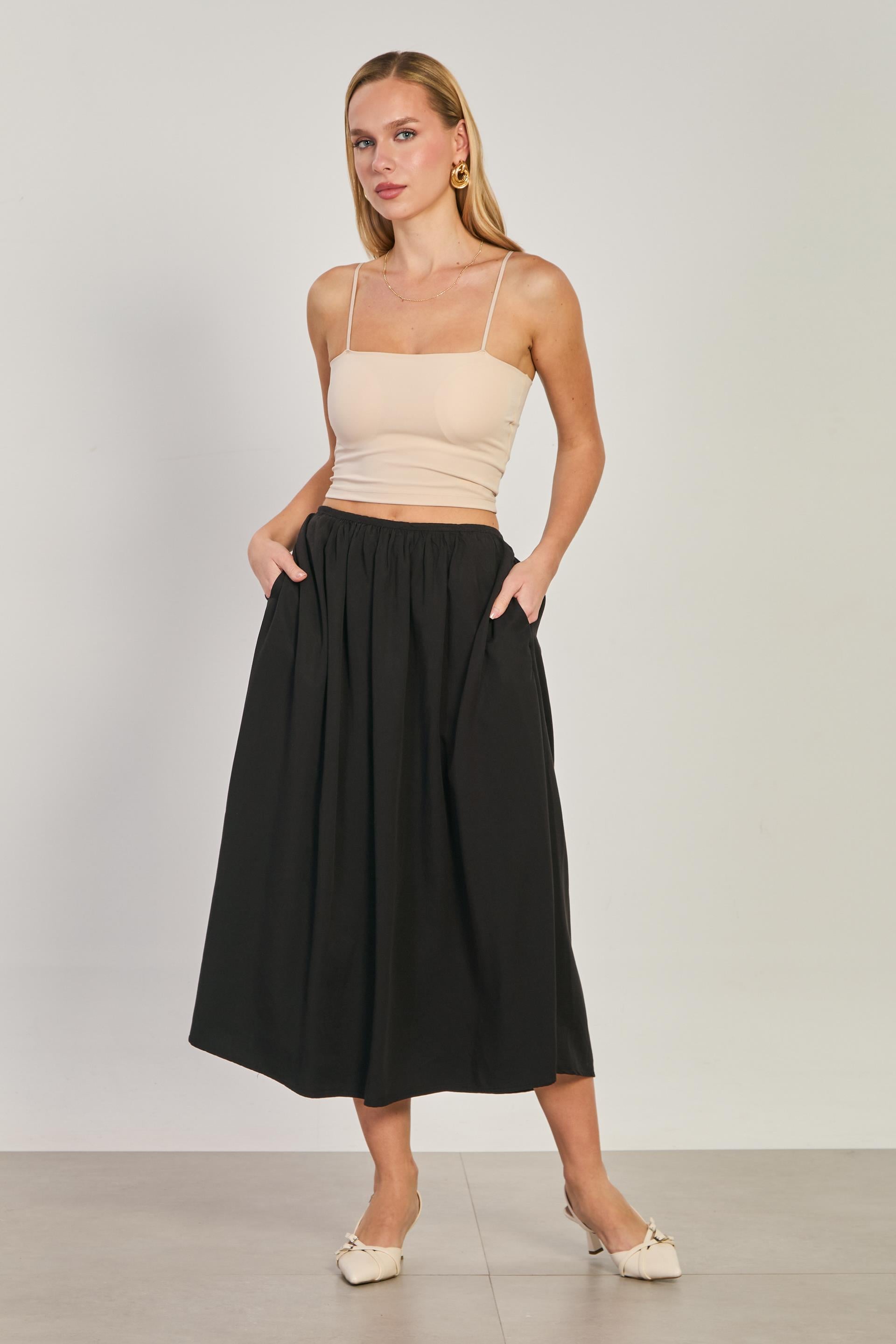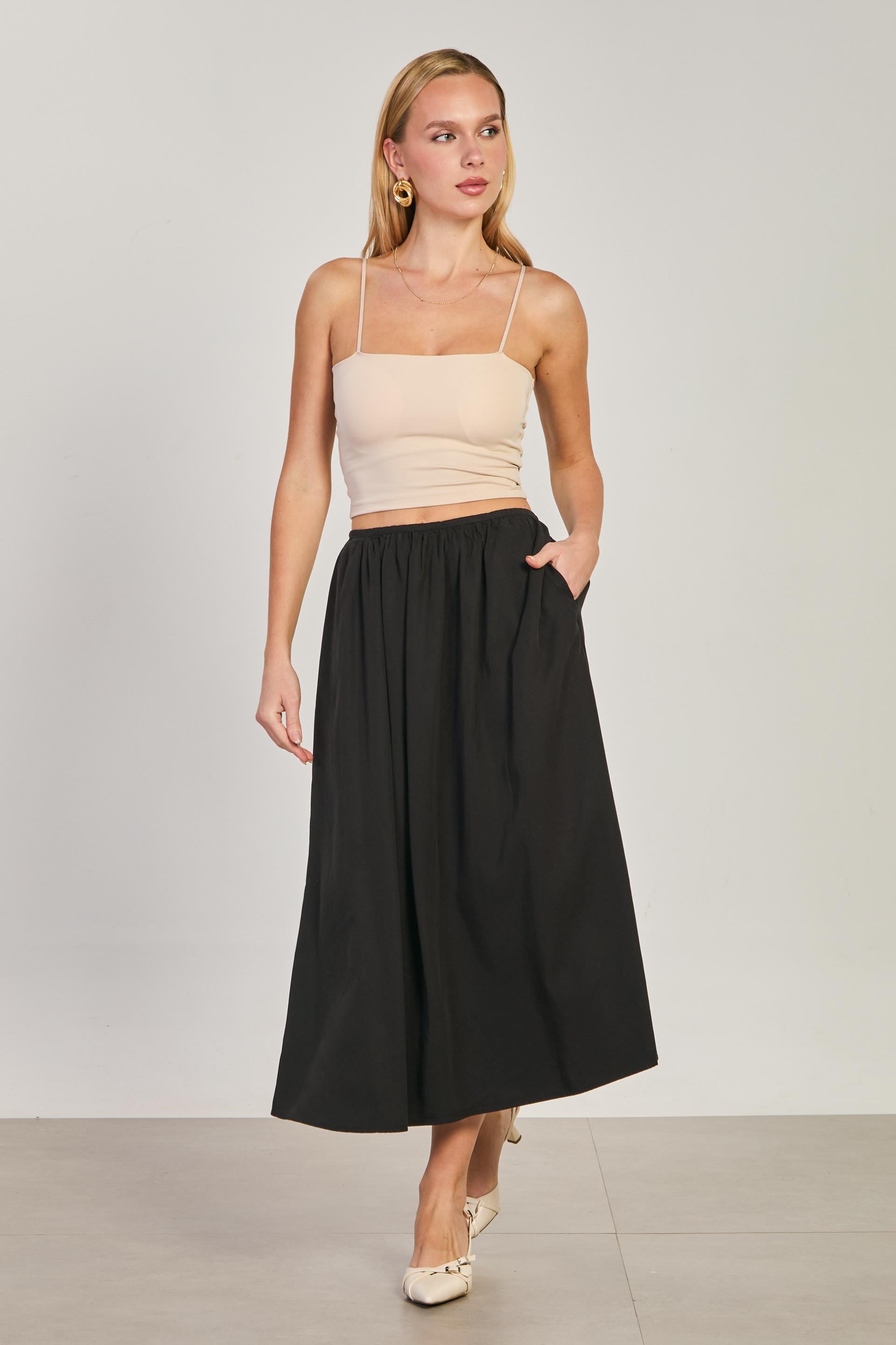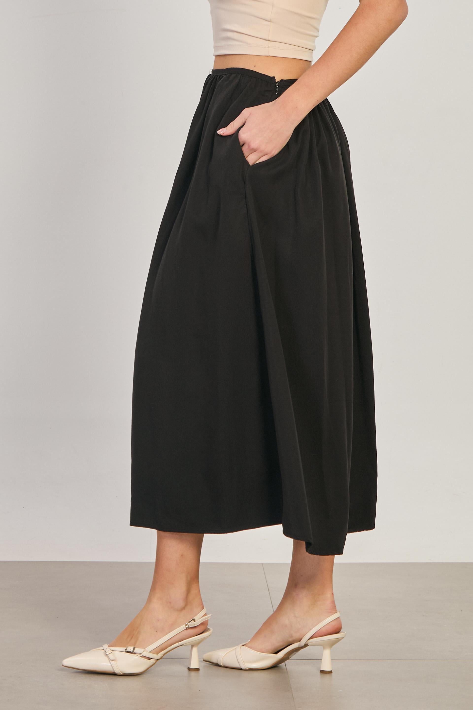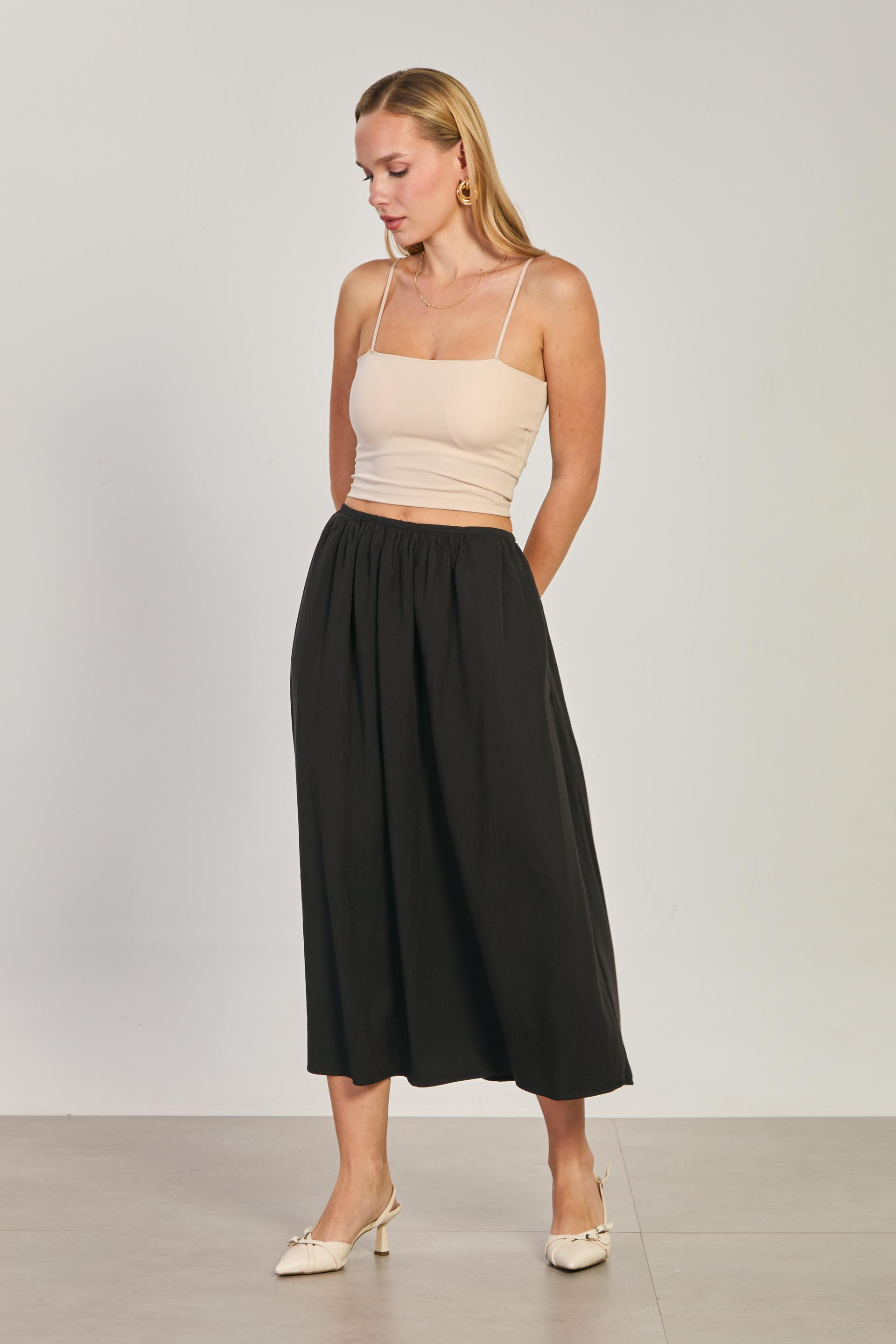 Kadın Pileli Midi Etek - Siyah