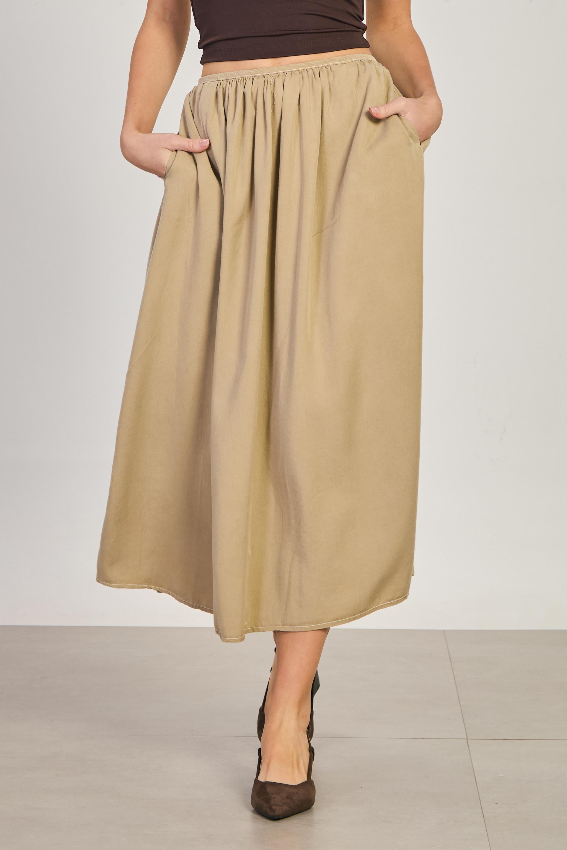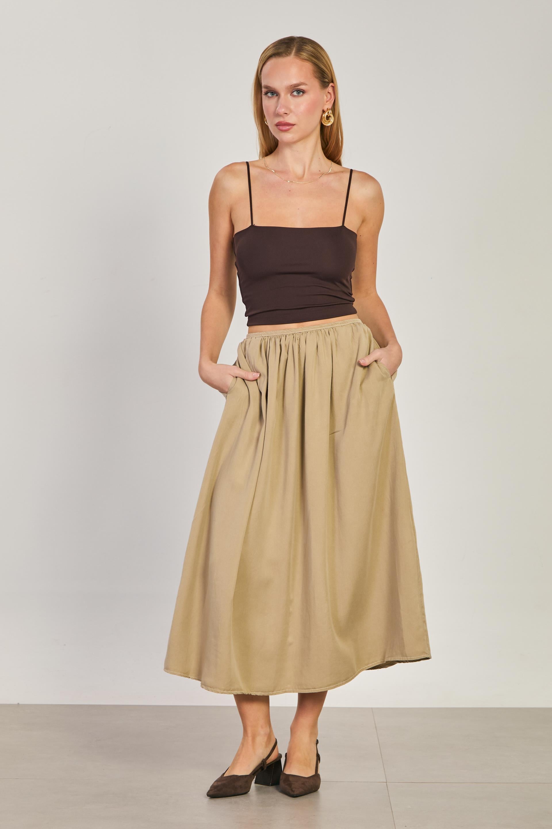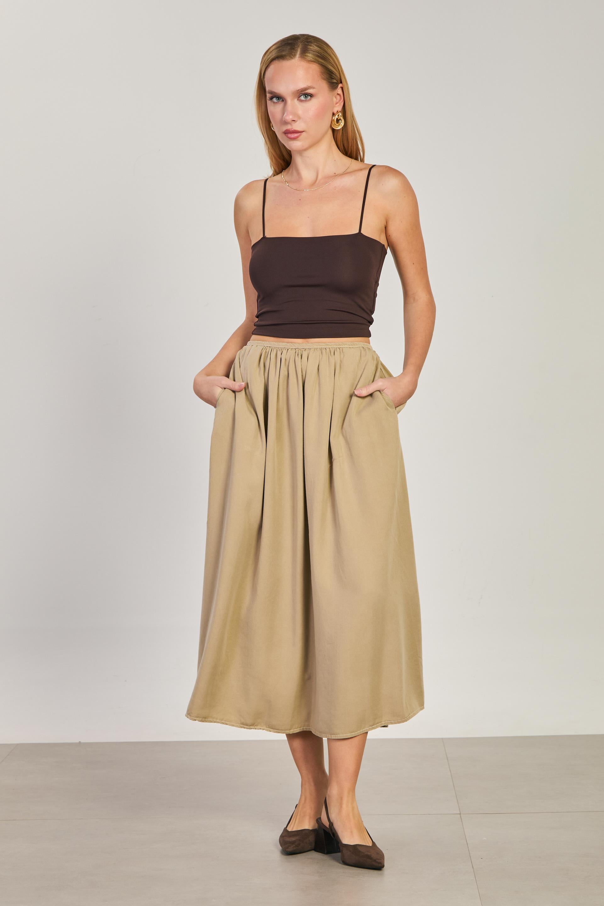 Kadın Pileli Midi Etek - Taş