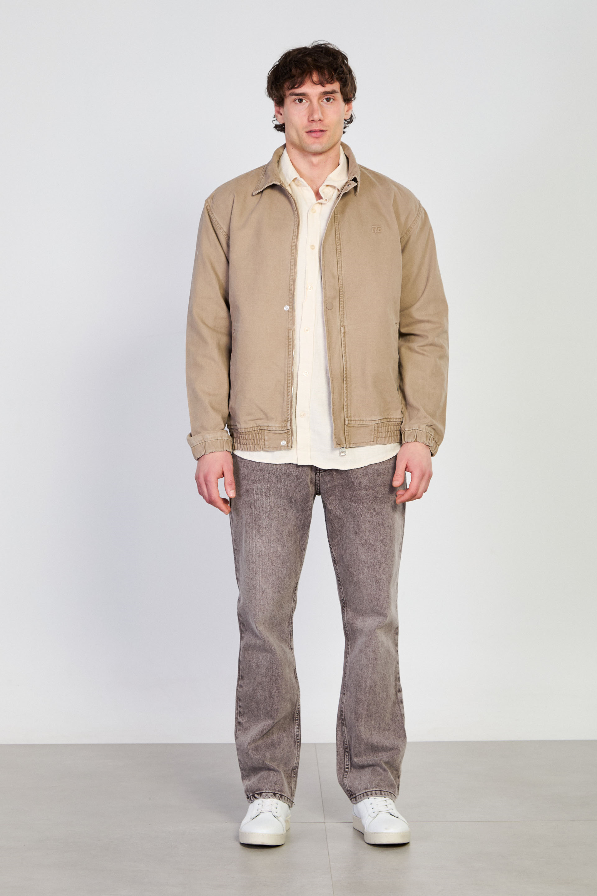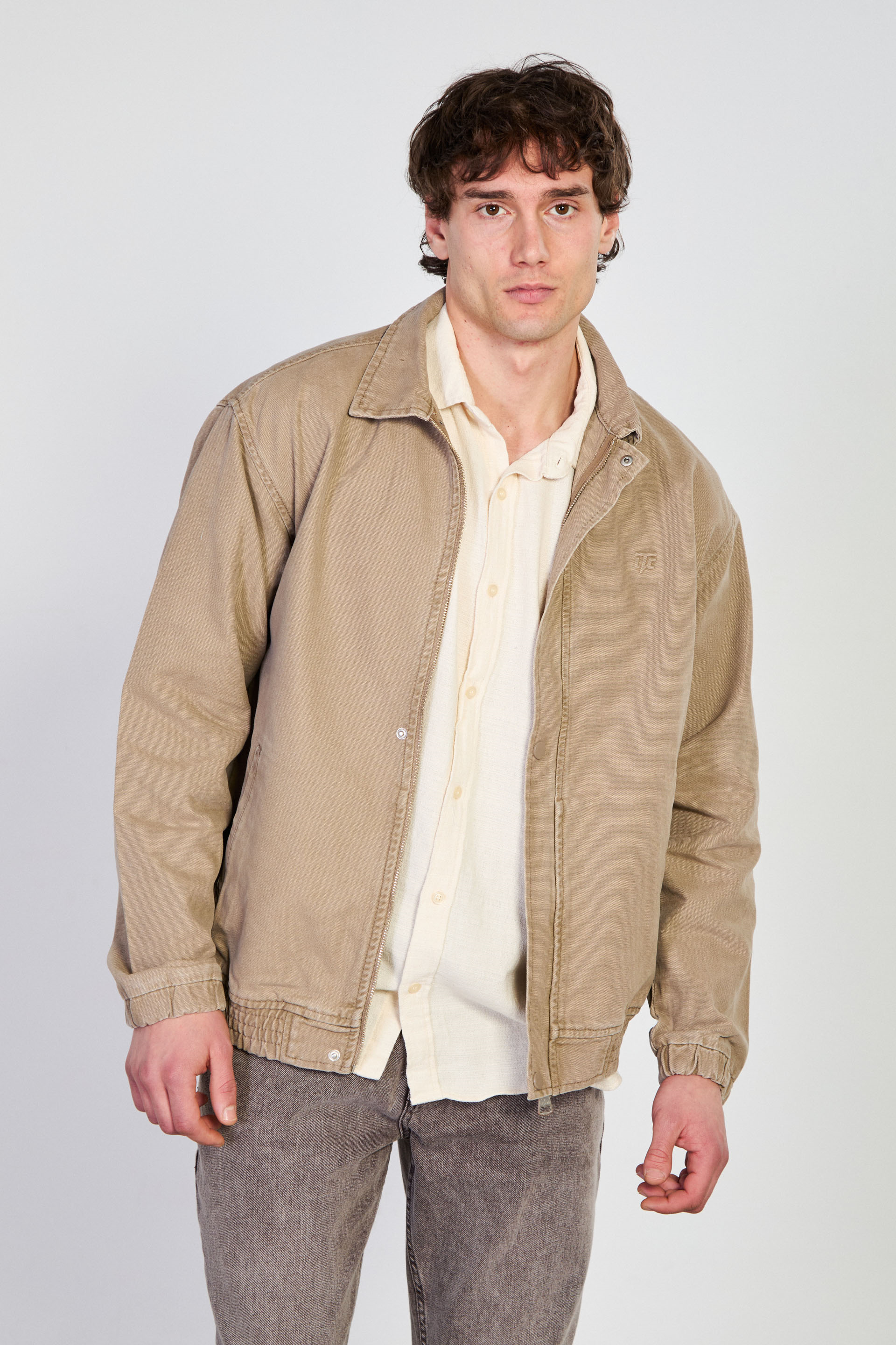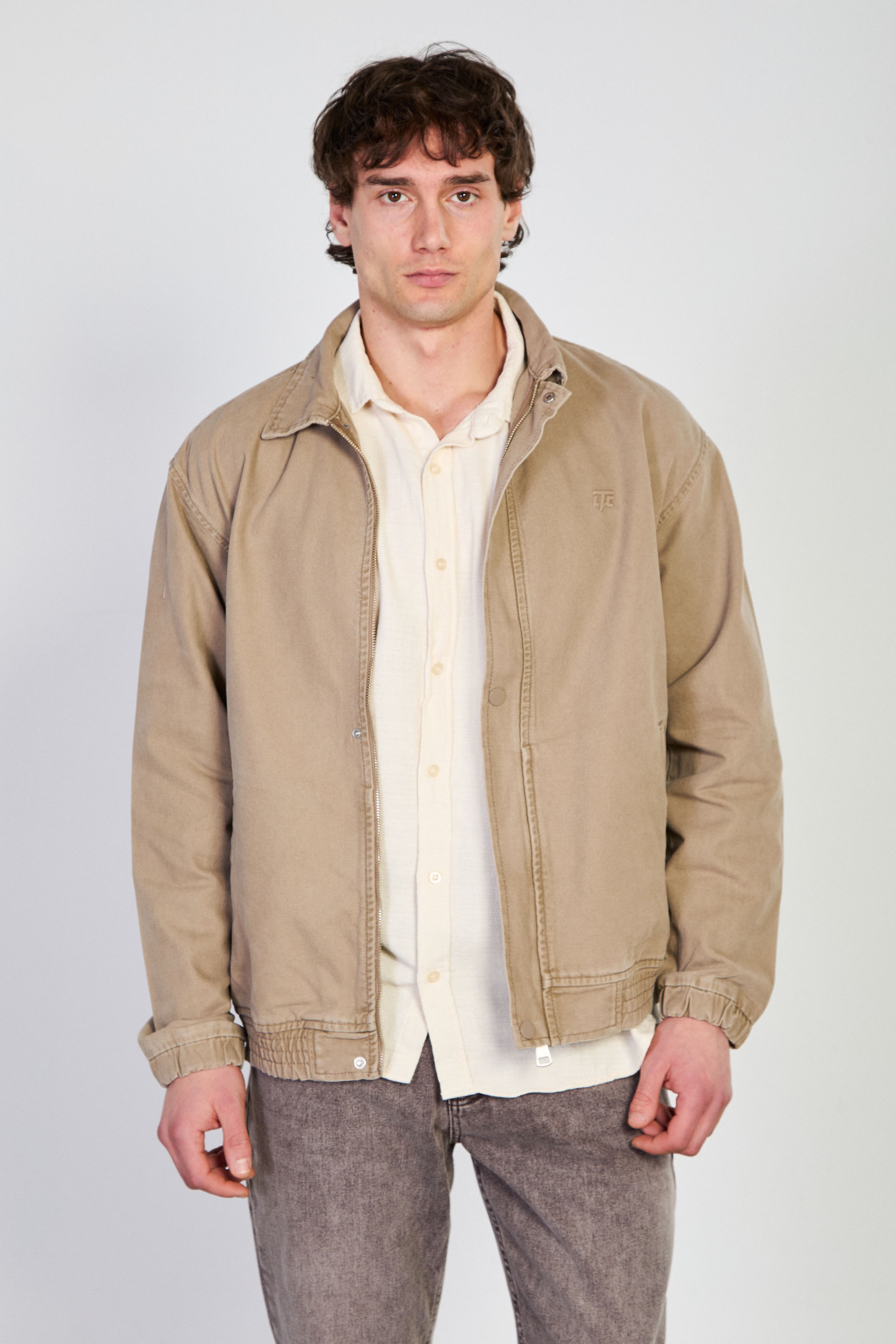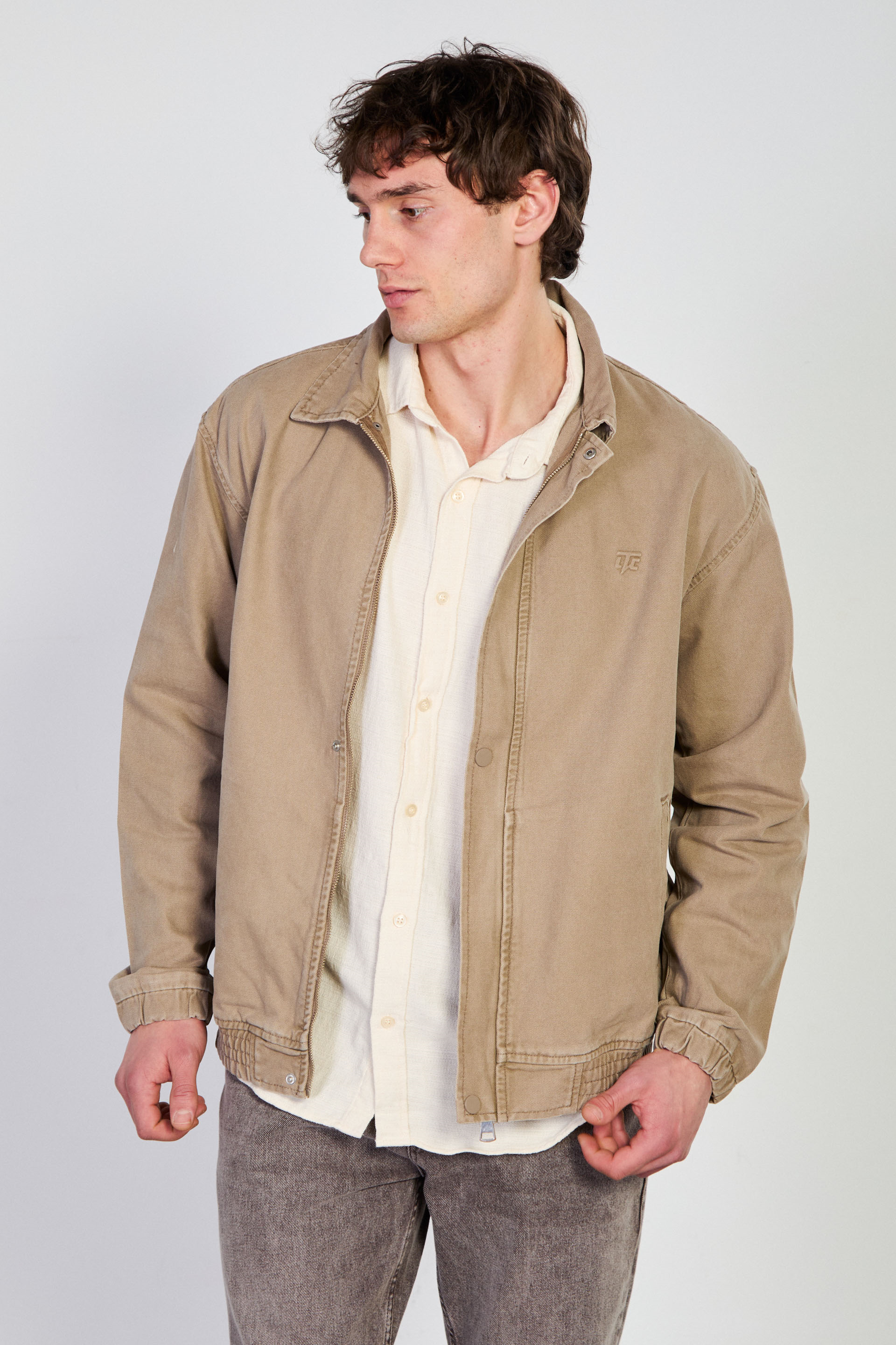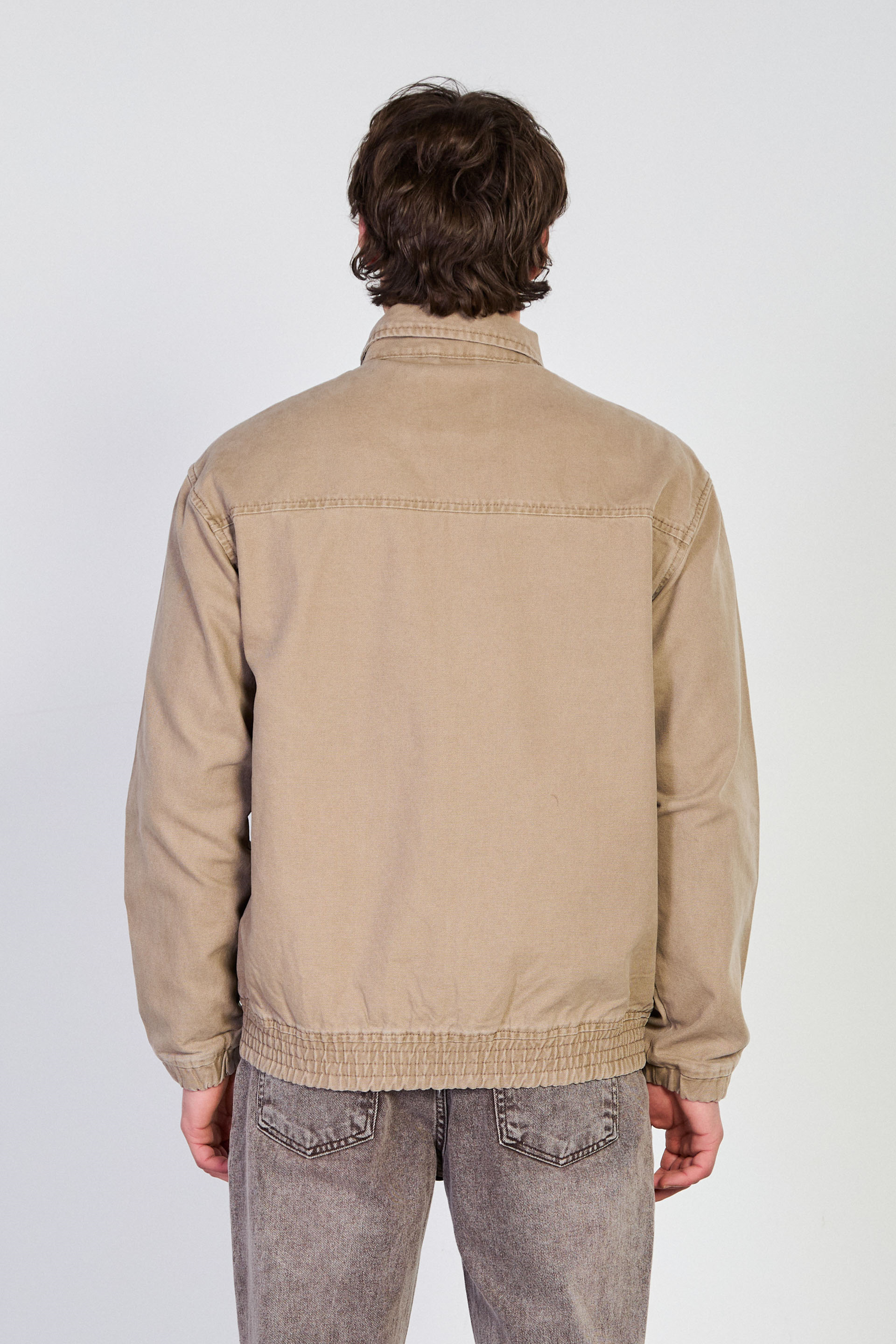 Erkek Polo Yaka Çıtçıtlı Beli Lastikli Ceket - Vizon