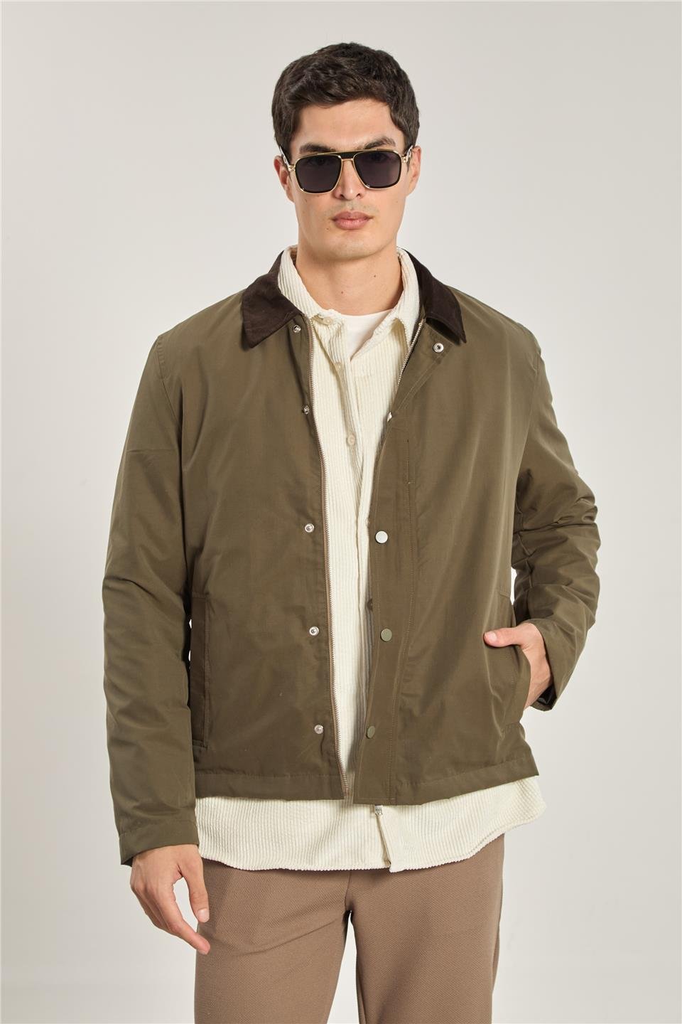 Erkek Polo Yaka Çıtçıtlı Ceket - Haki