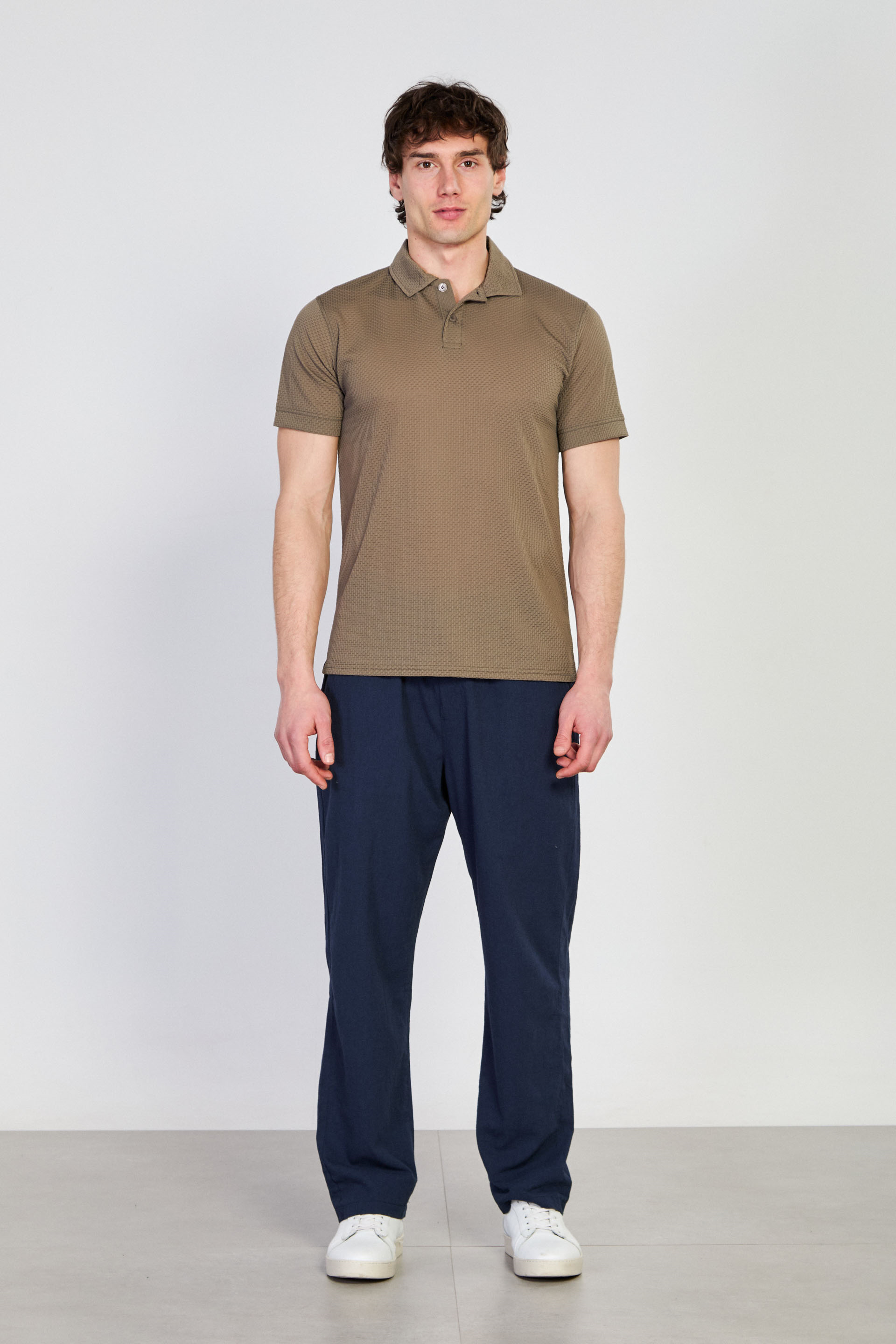 Erkek Polo Yaka Kısa Kollu Düğmeli T-Shirt - Kahve