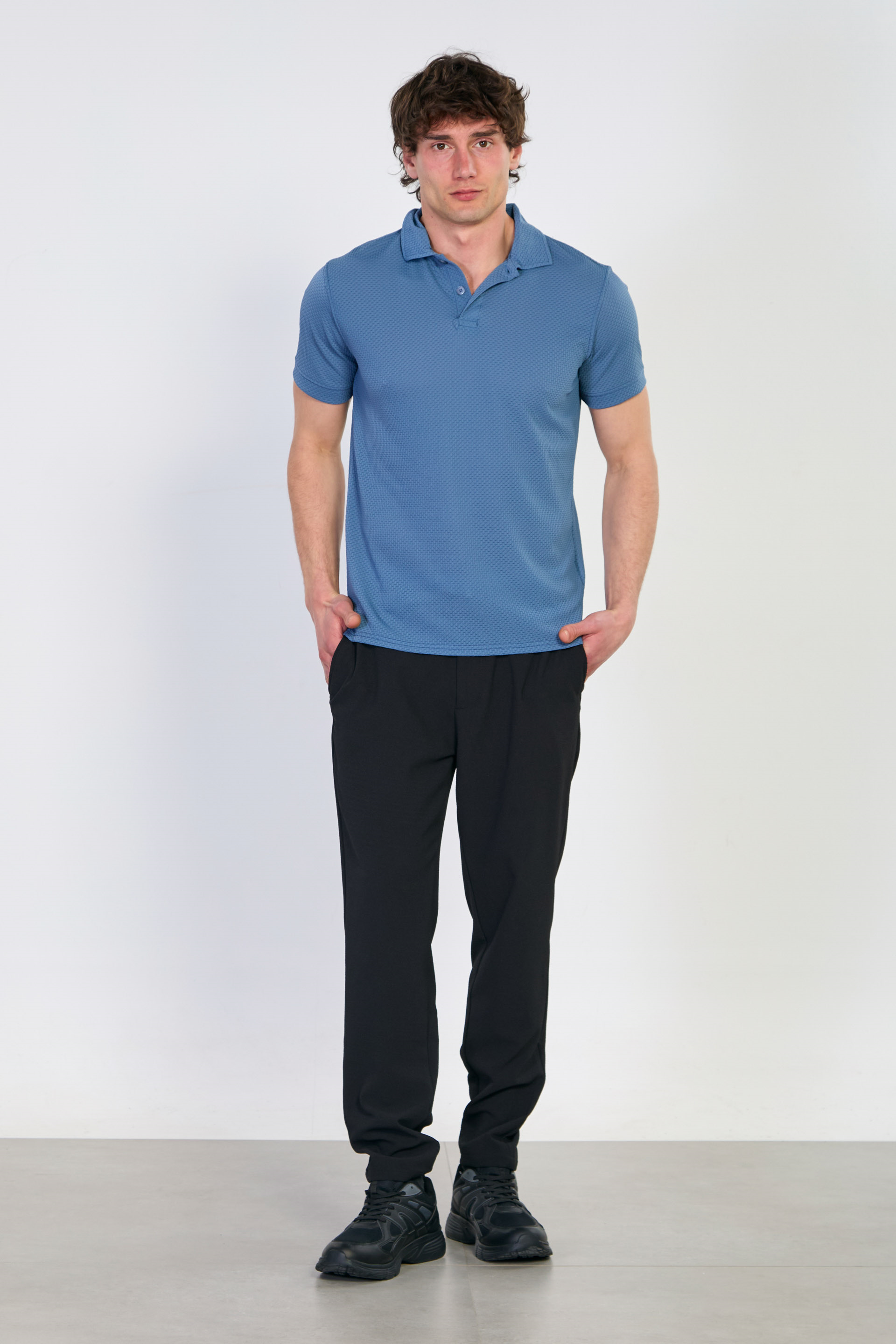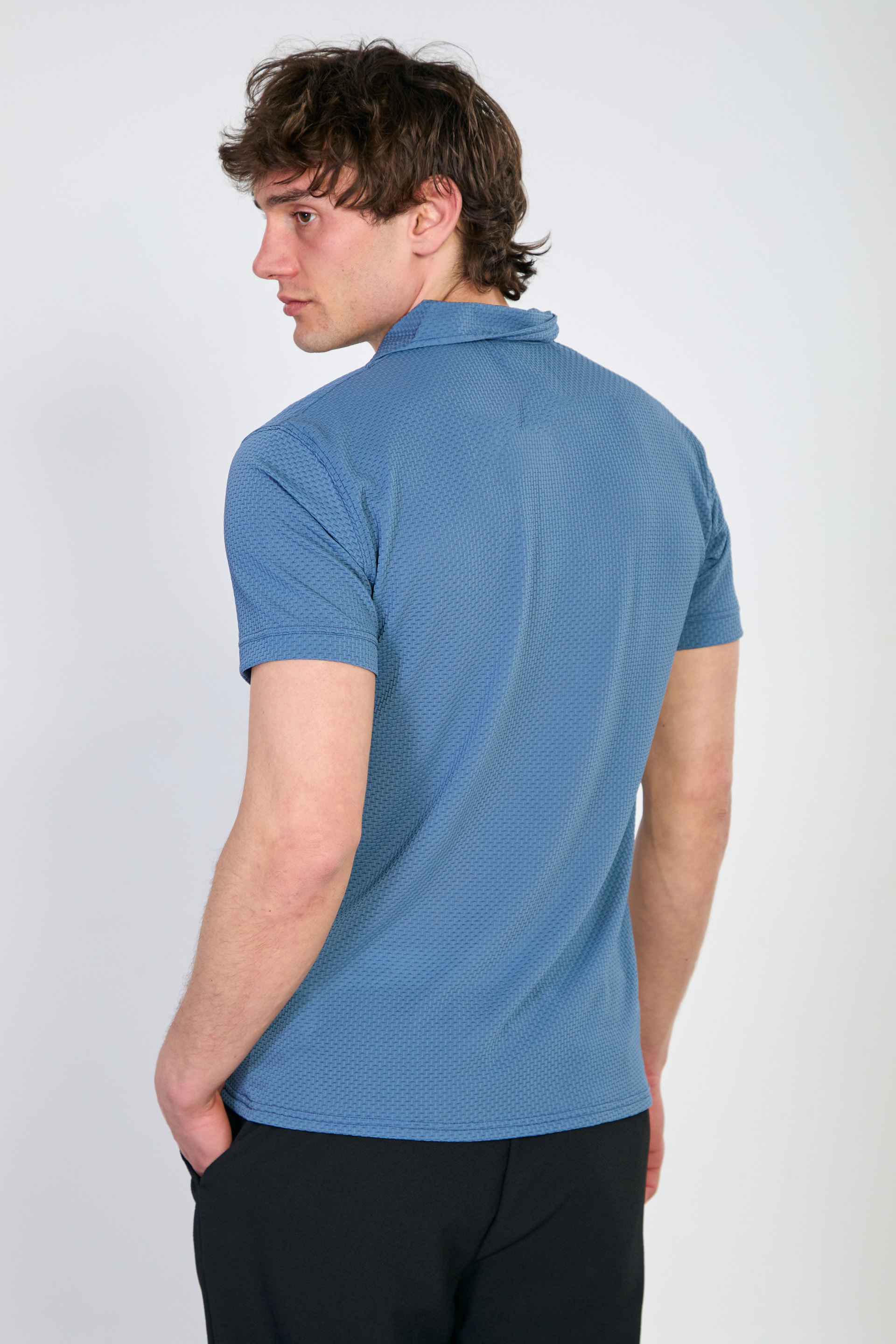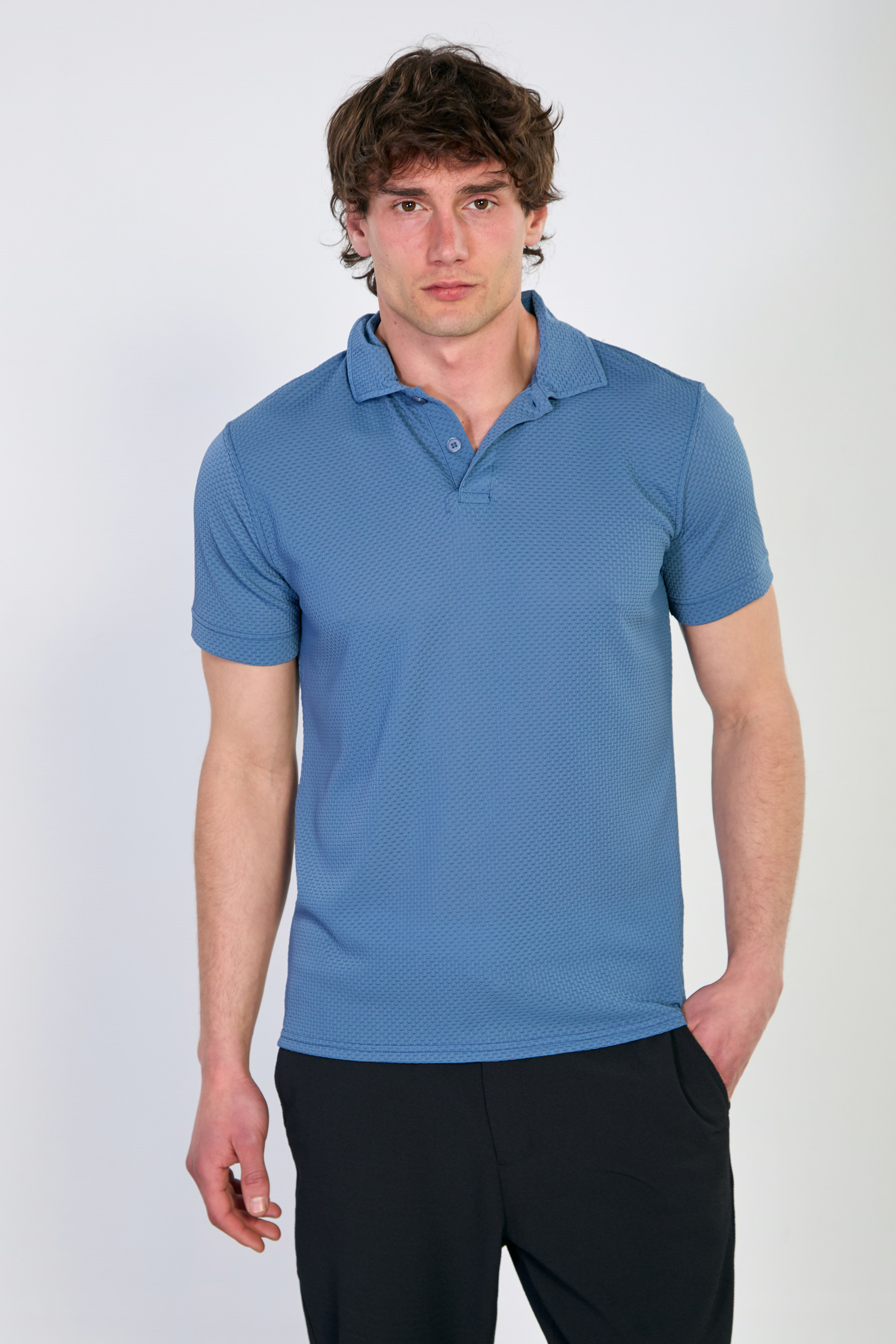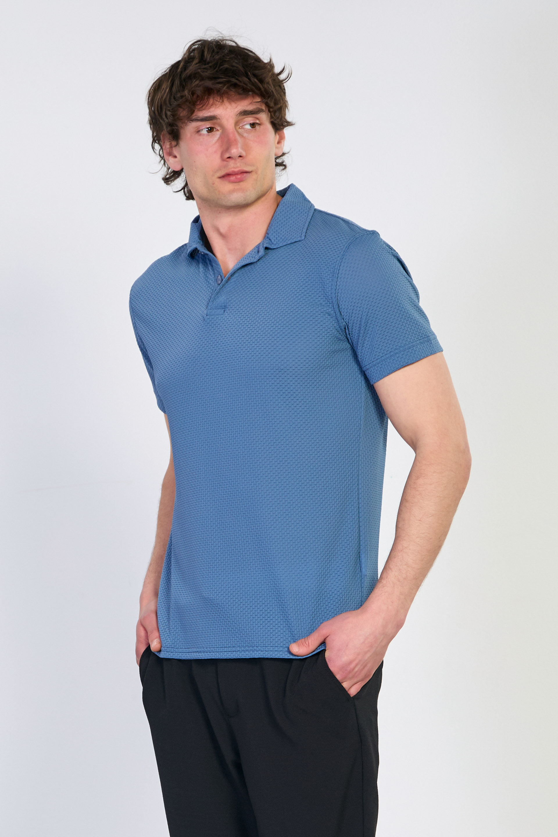 Erkek Polo Yaka Kısa Kollu Düğmeli T-Shirt - Mavi