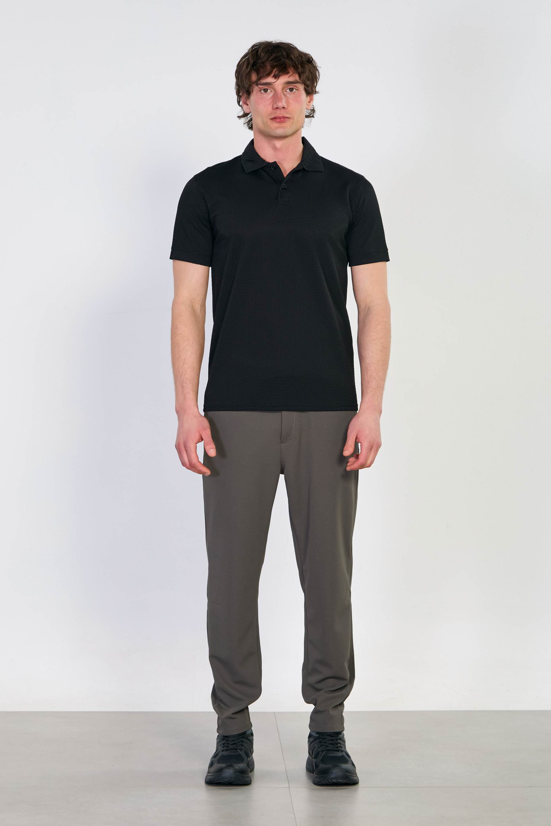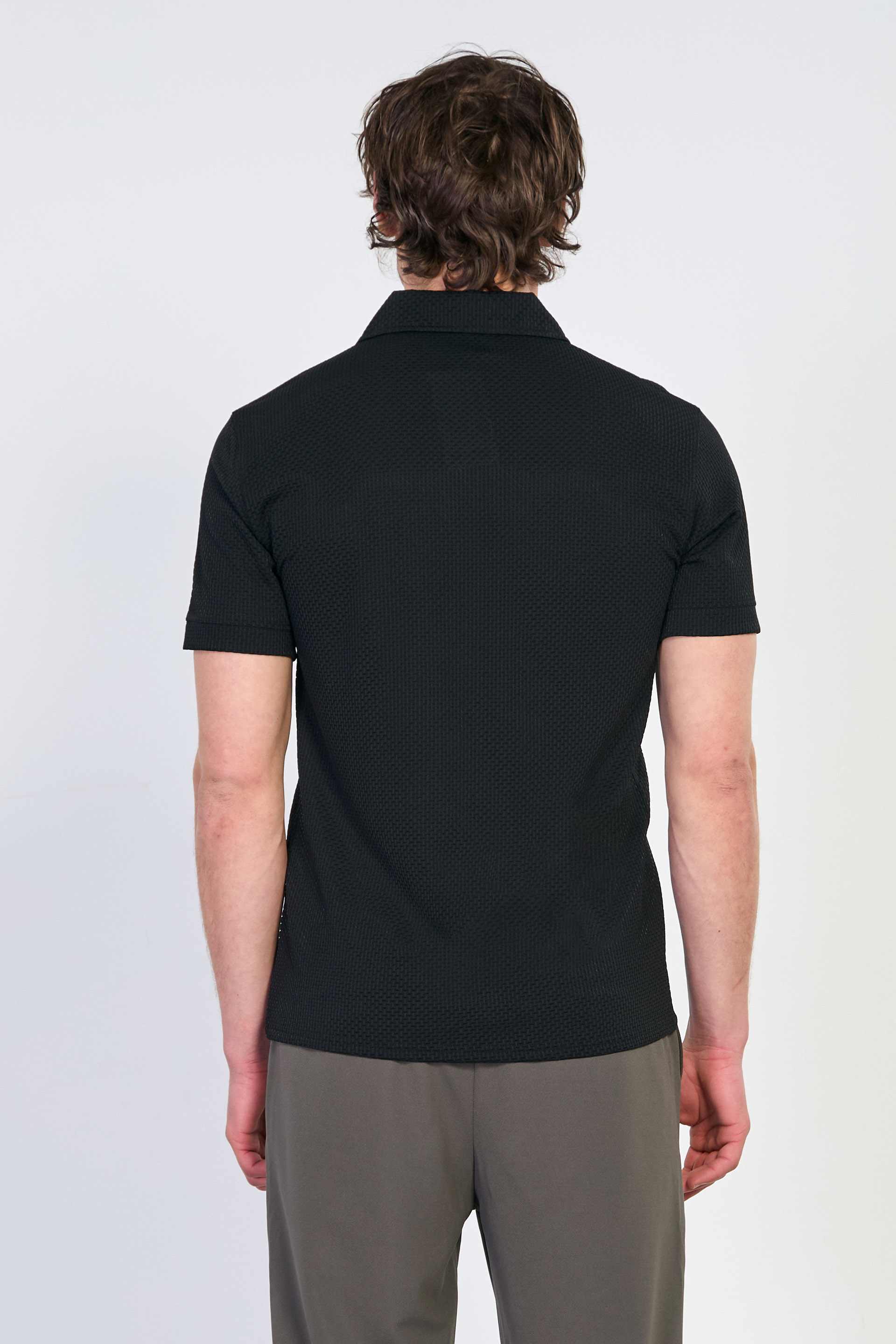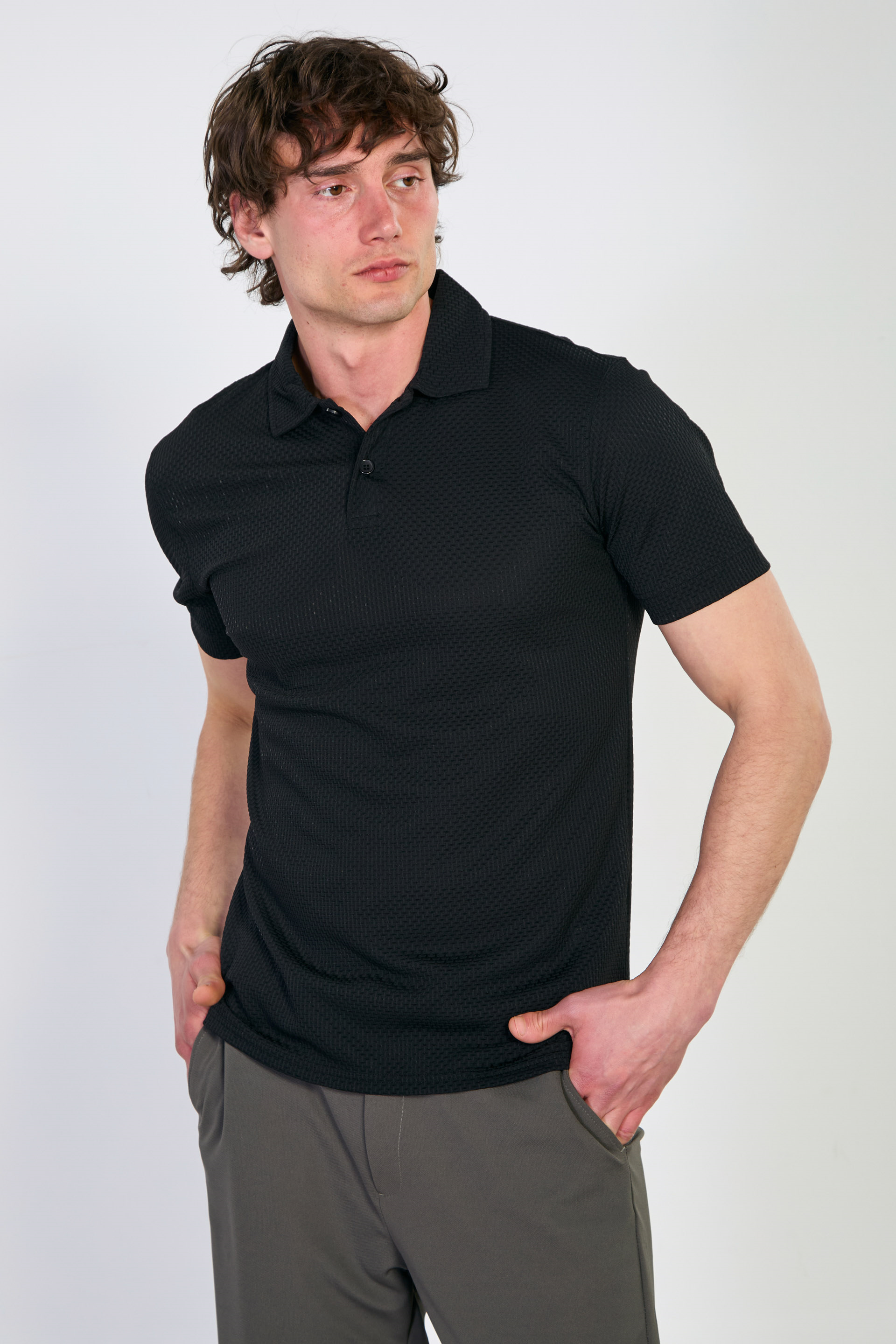Erkek Polo Yaka Kısa Kollu Düğmeli T-Shirt - Siyah