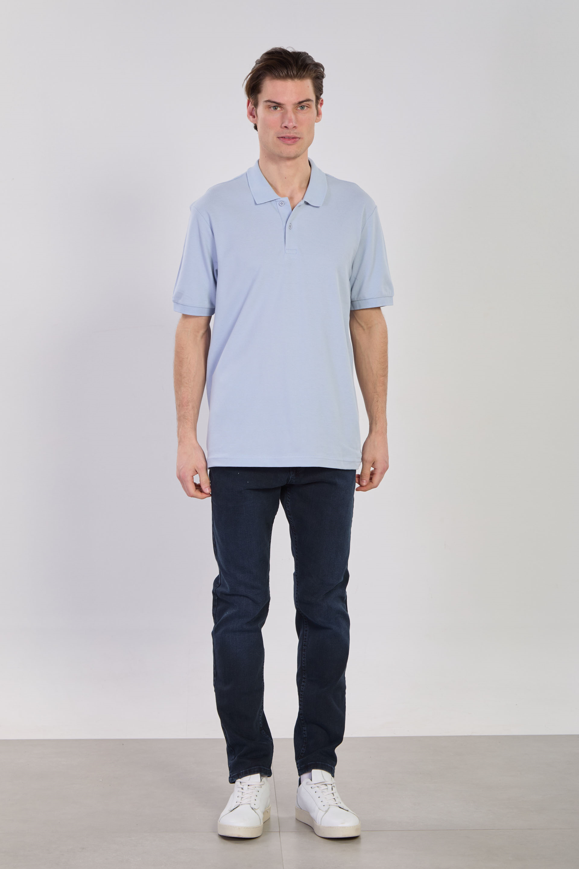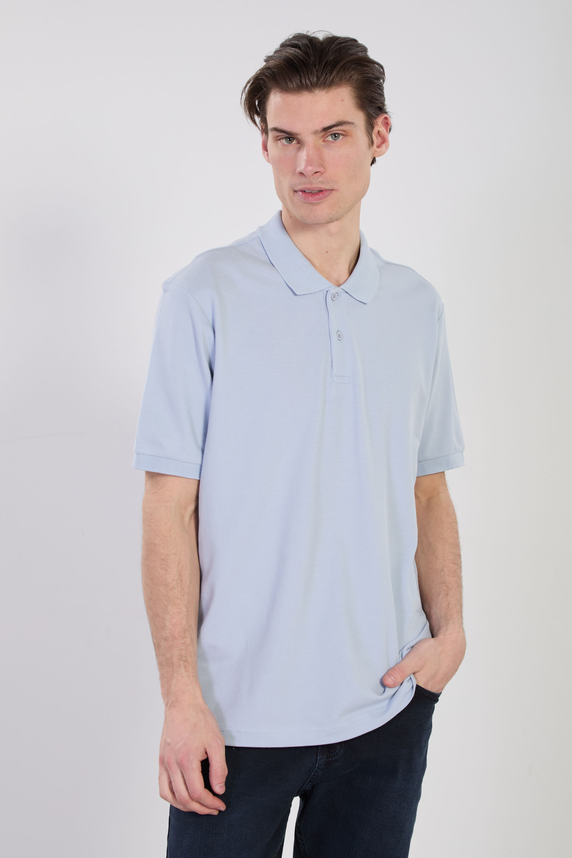 Erkek Polo Yaka Pike T-Shirt - Açık Gri