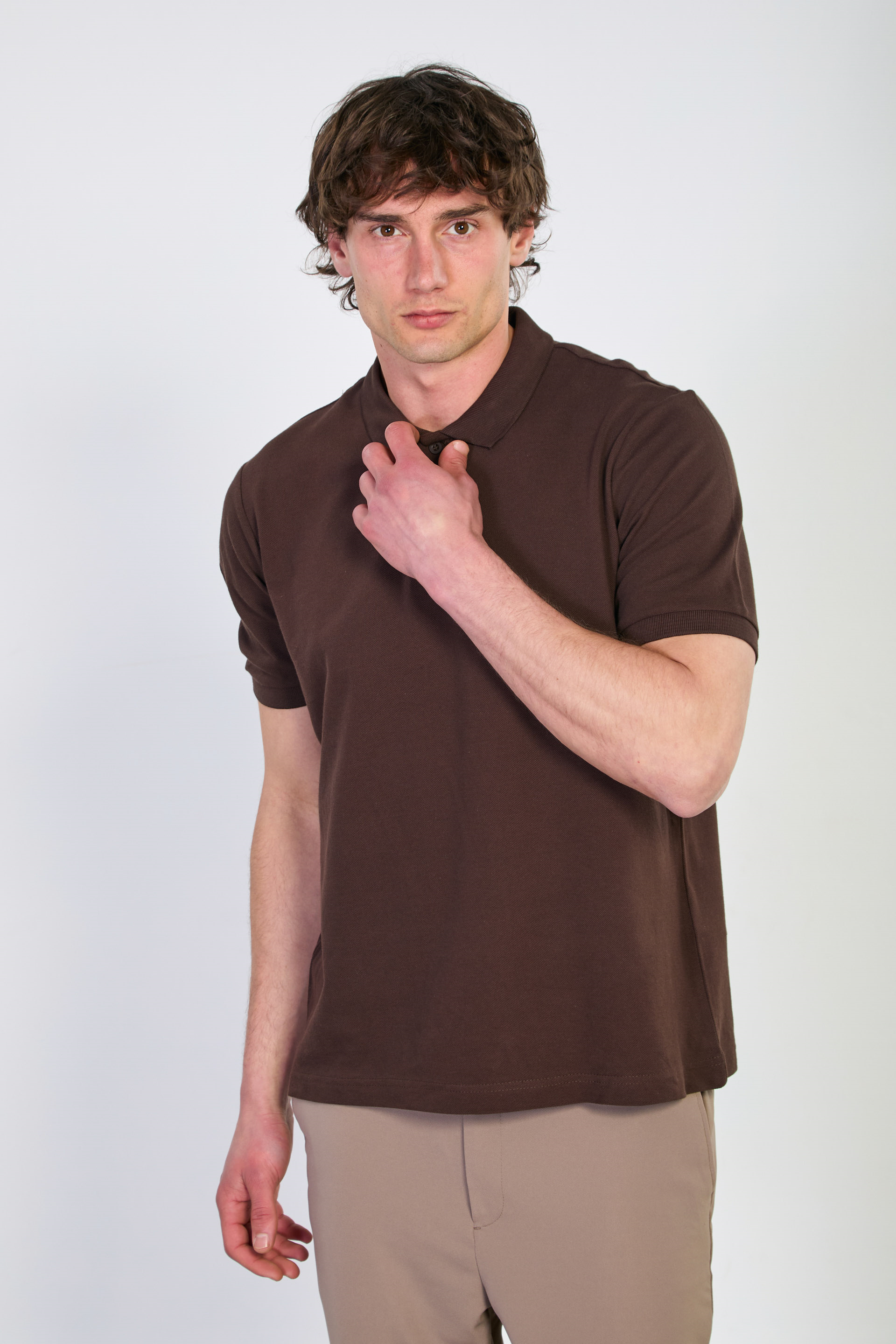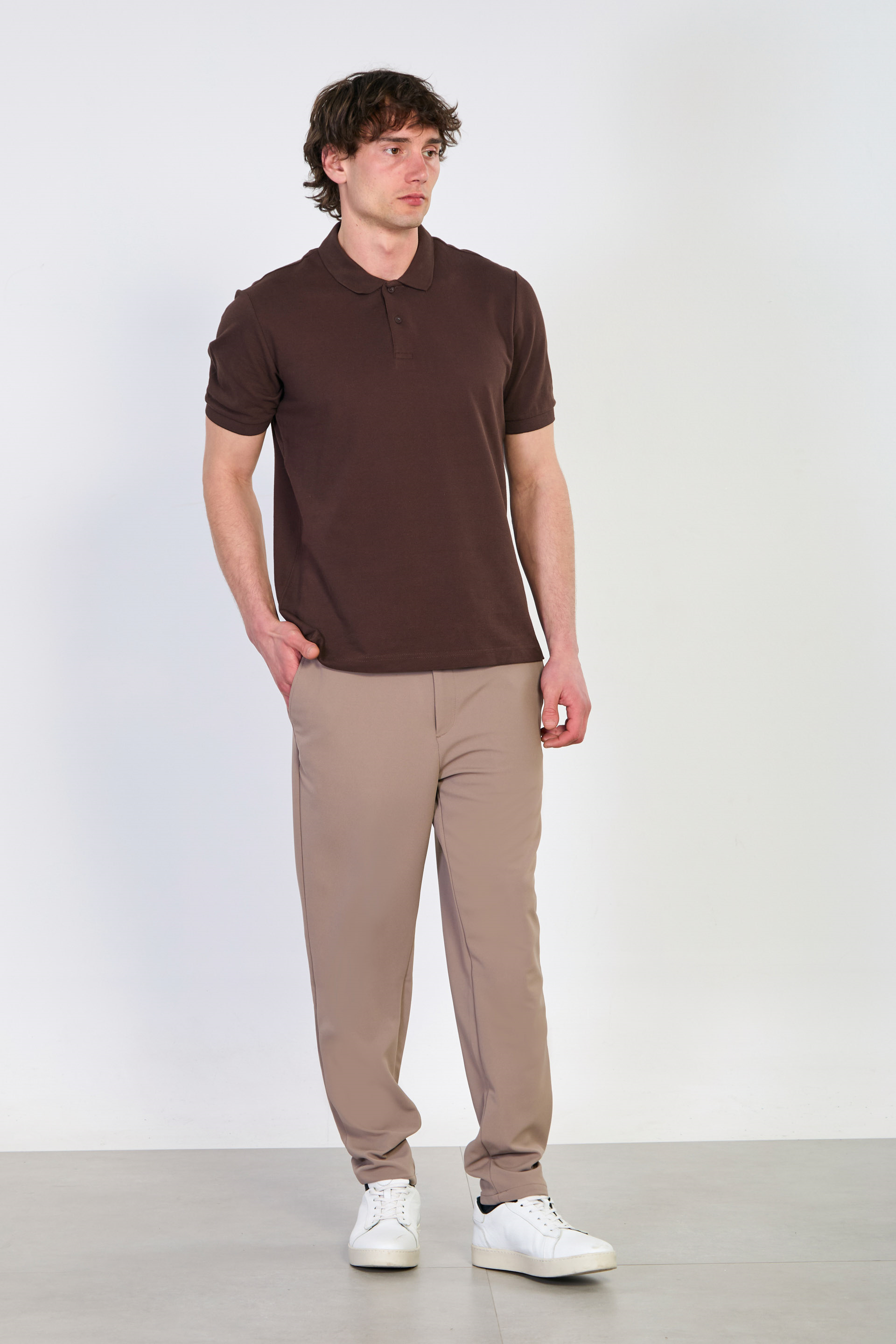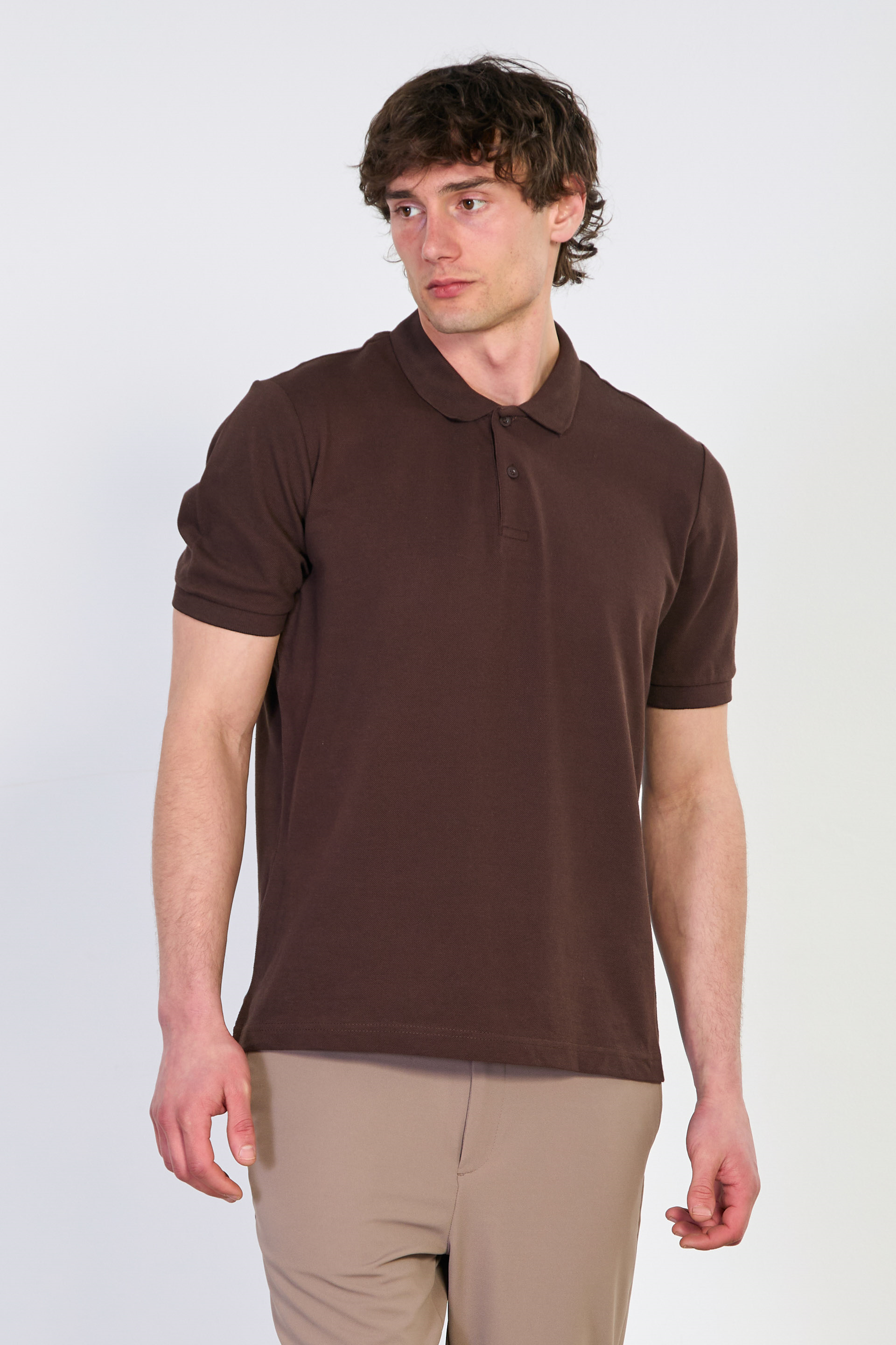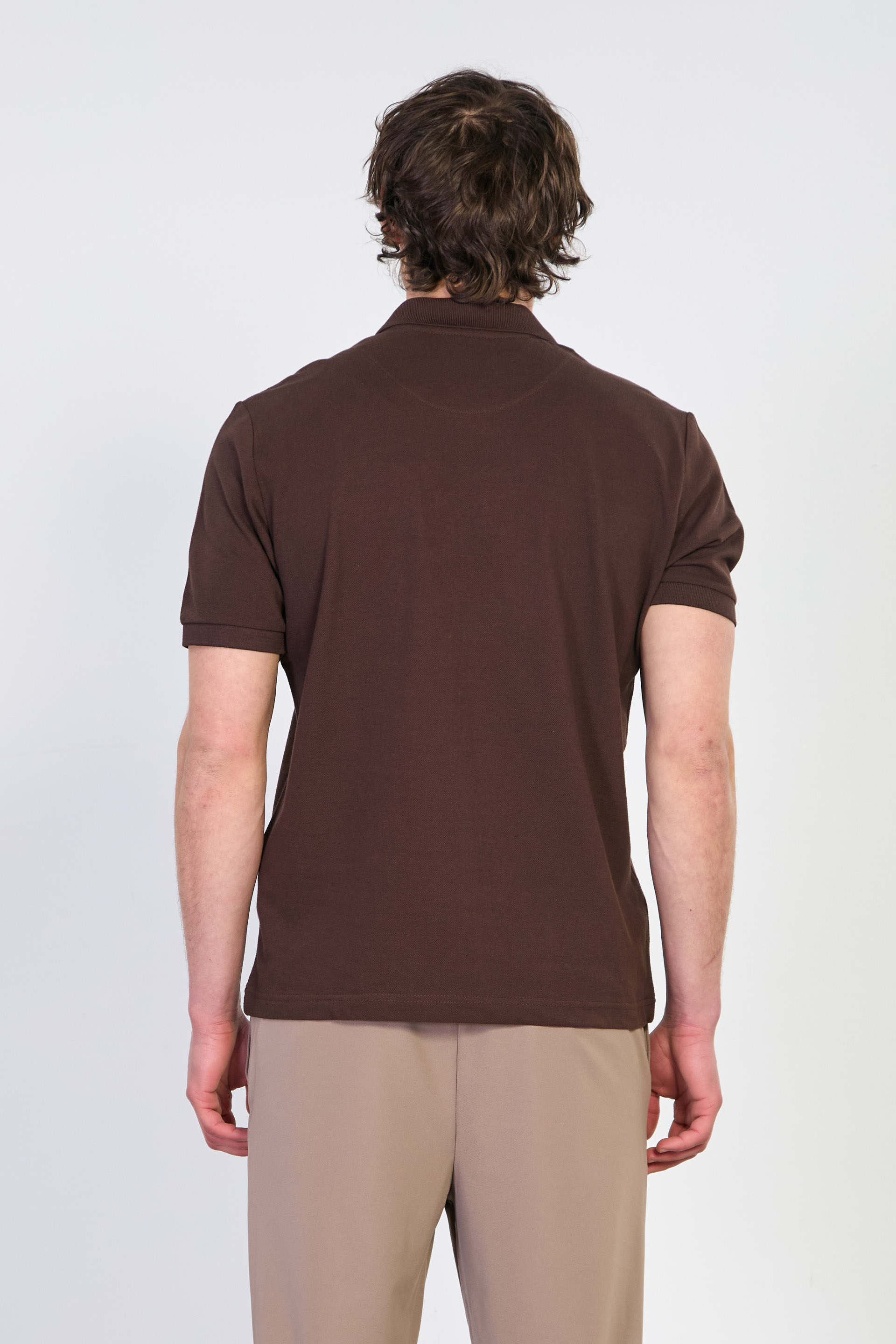 Erkek Polo Yaka Pike T-Shirt - Açık Kahve