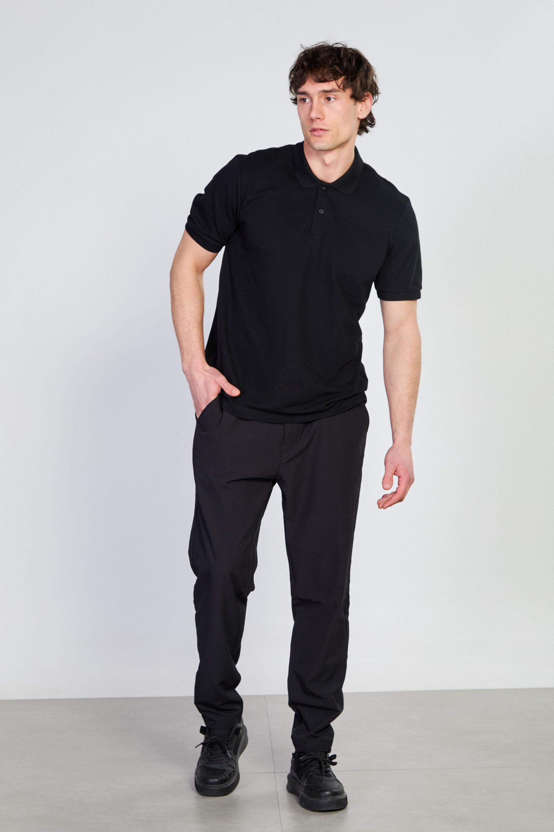 Erkek Polo Yaka Pike T-Shirt - Siyah