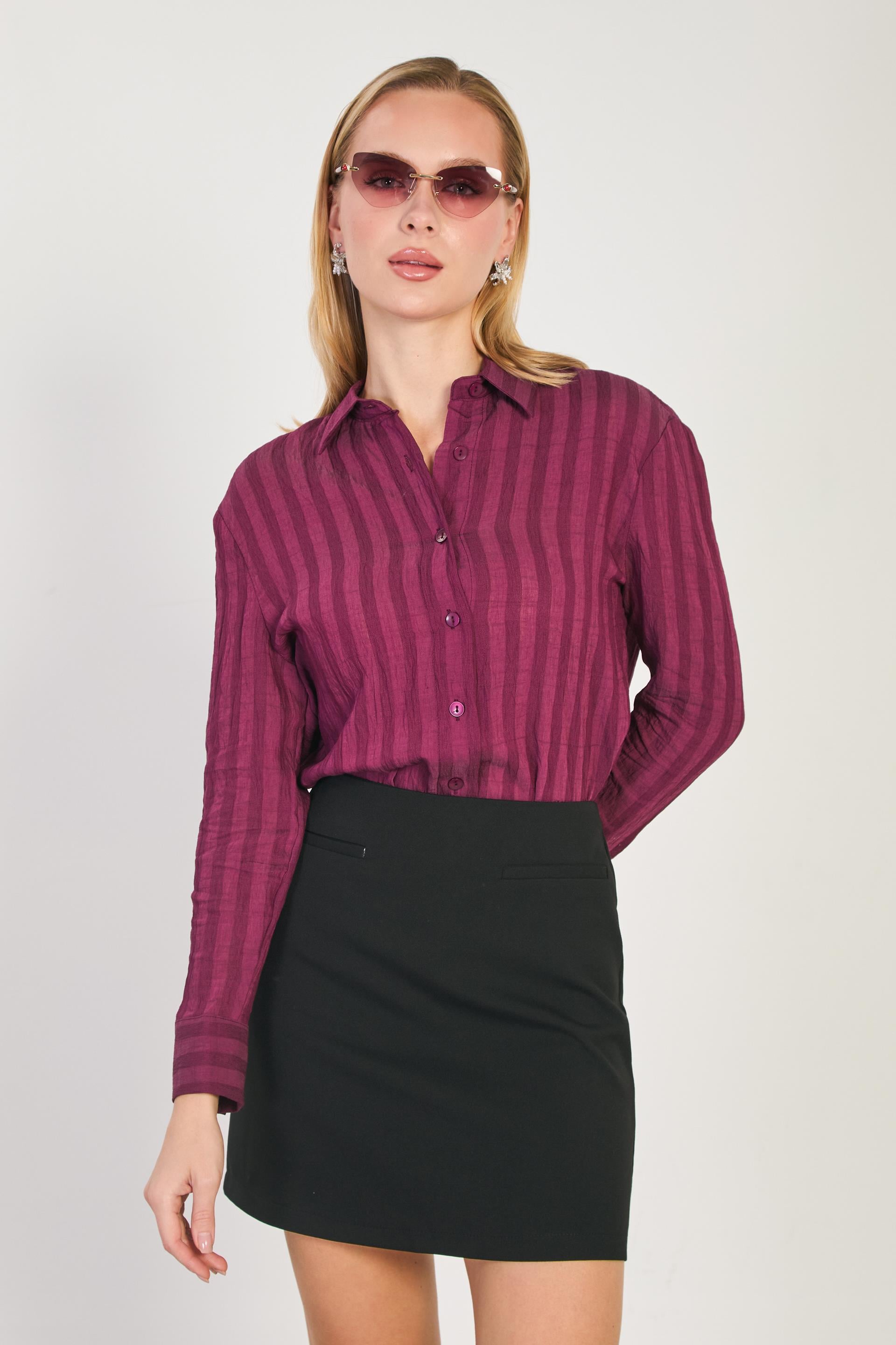 Kadın Rahat Kesim Gömlek - Bordo