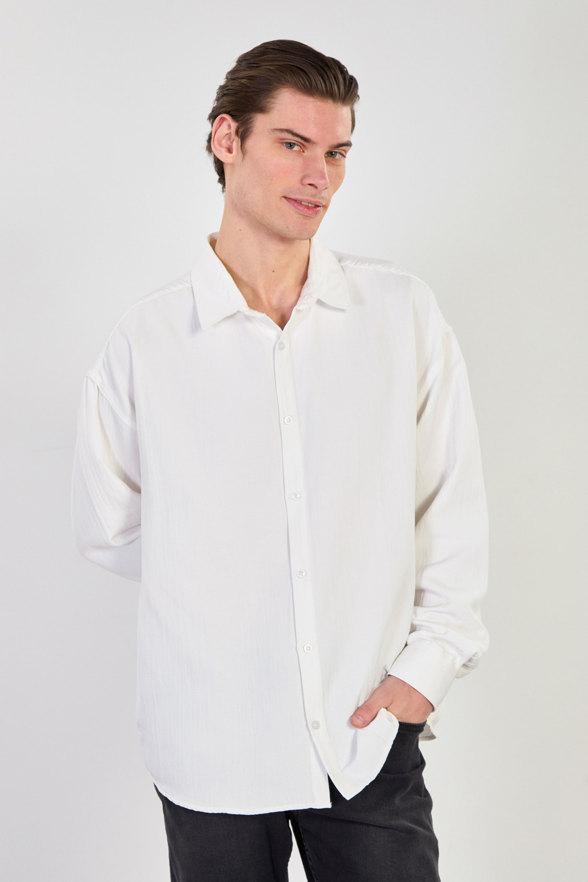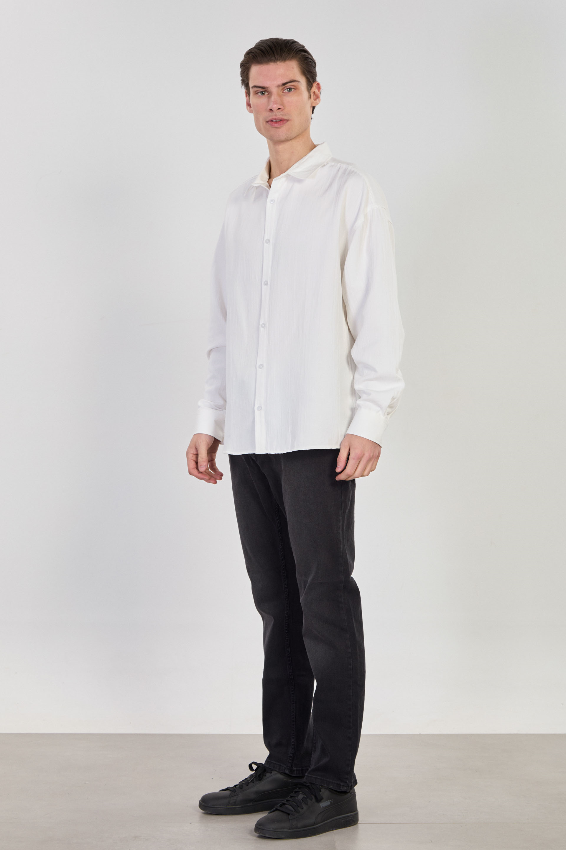 Erkek Regular Fit Klasik Gömlek - Ekru