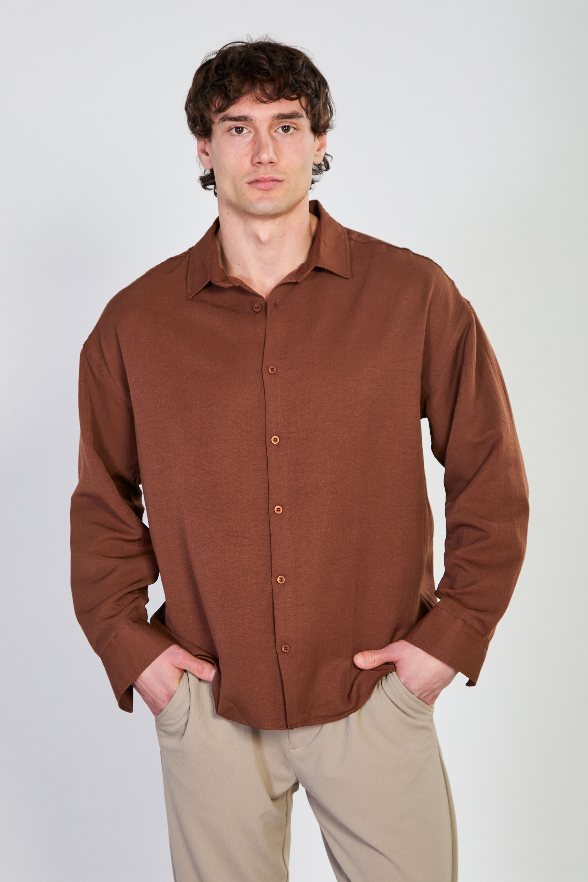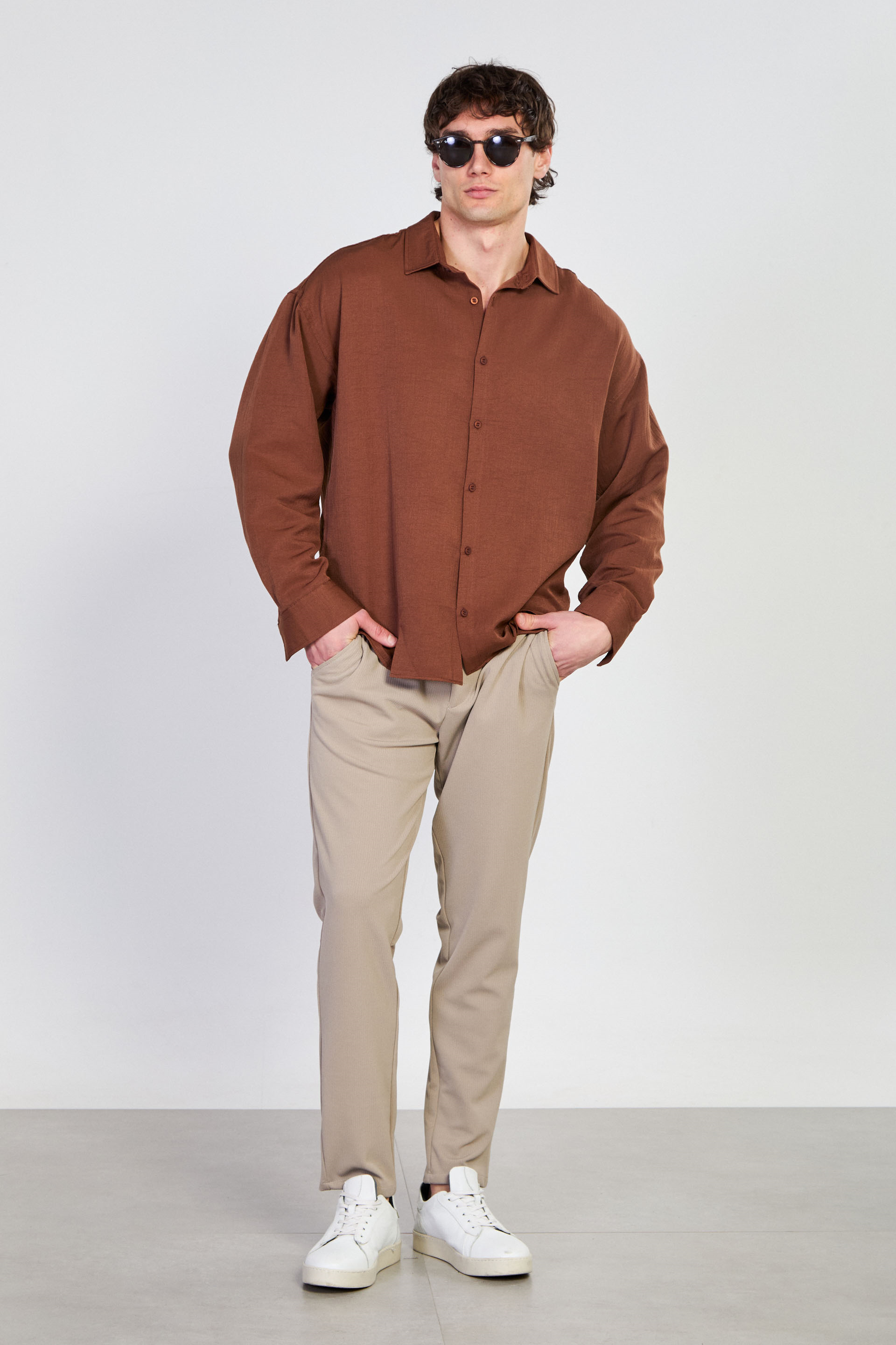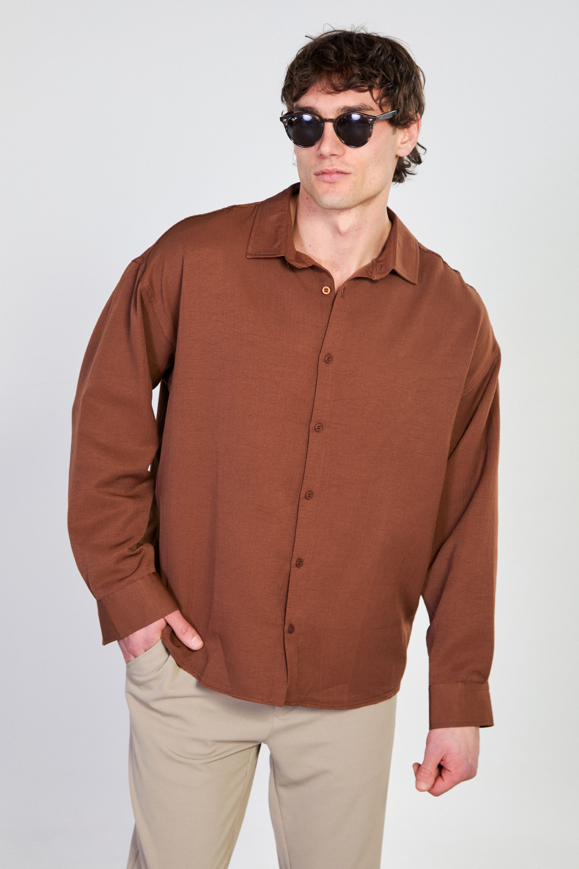 Erkek Regular Fit Klasik Gömlek - kahve