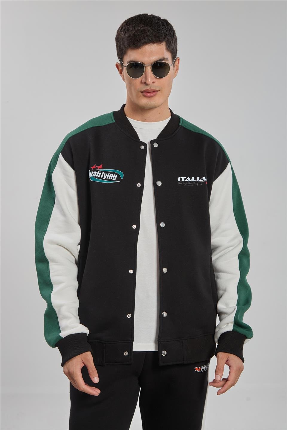 Erkek Renk Garnili Kolej Ceket - Siyah