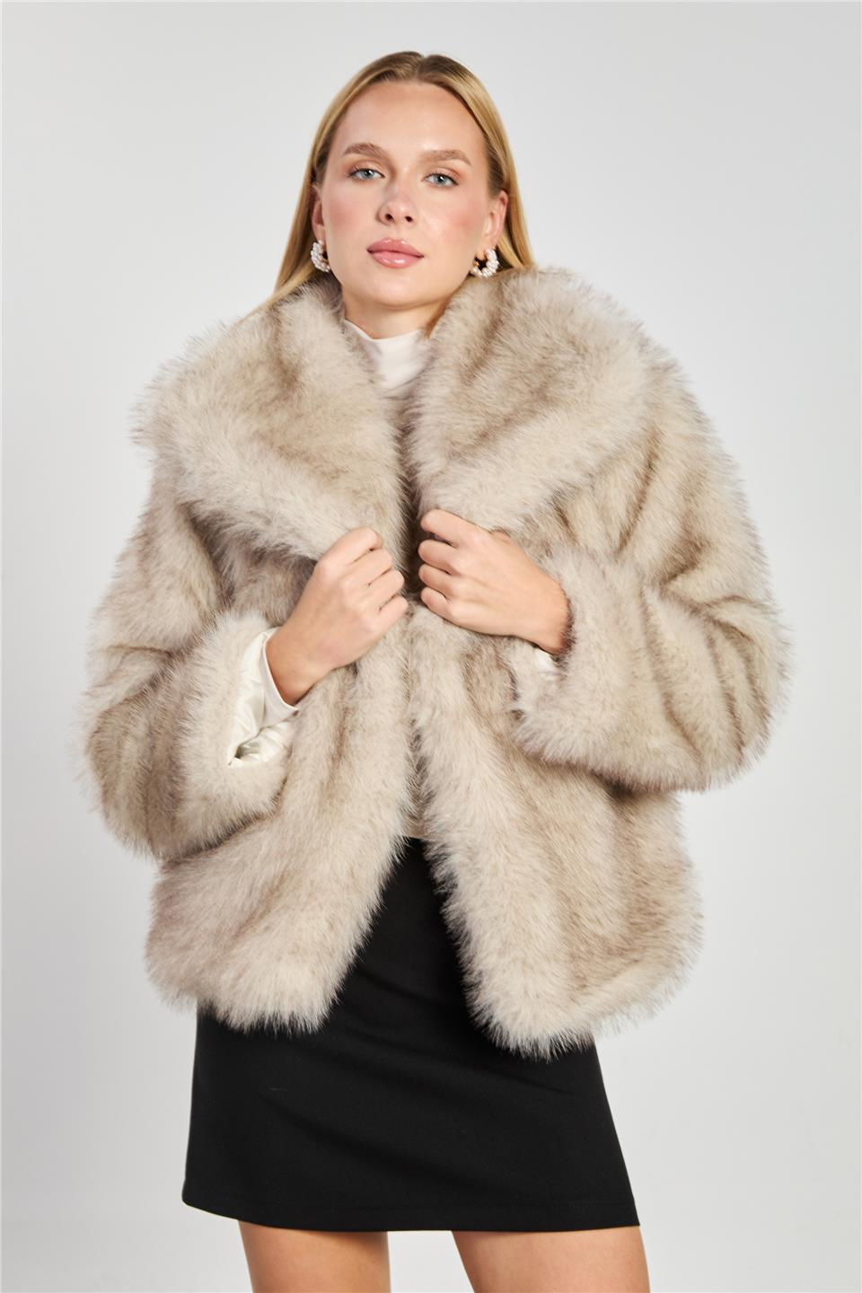 Kadın Şal Yaka Peluş Mont - Bej