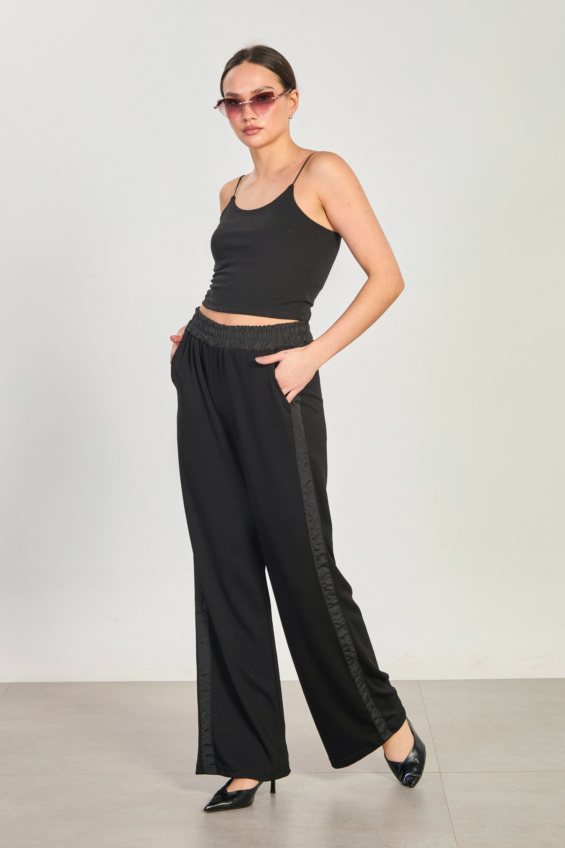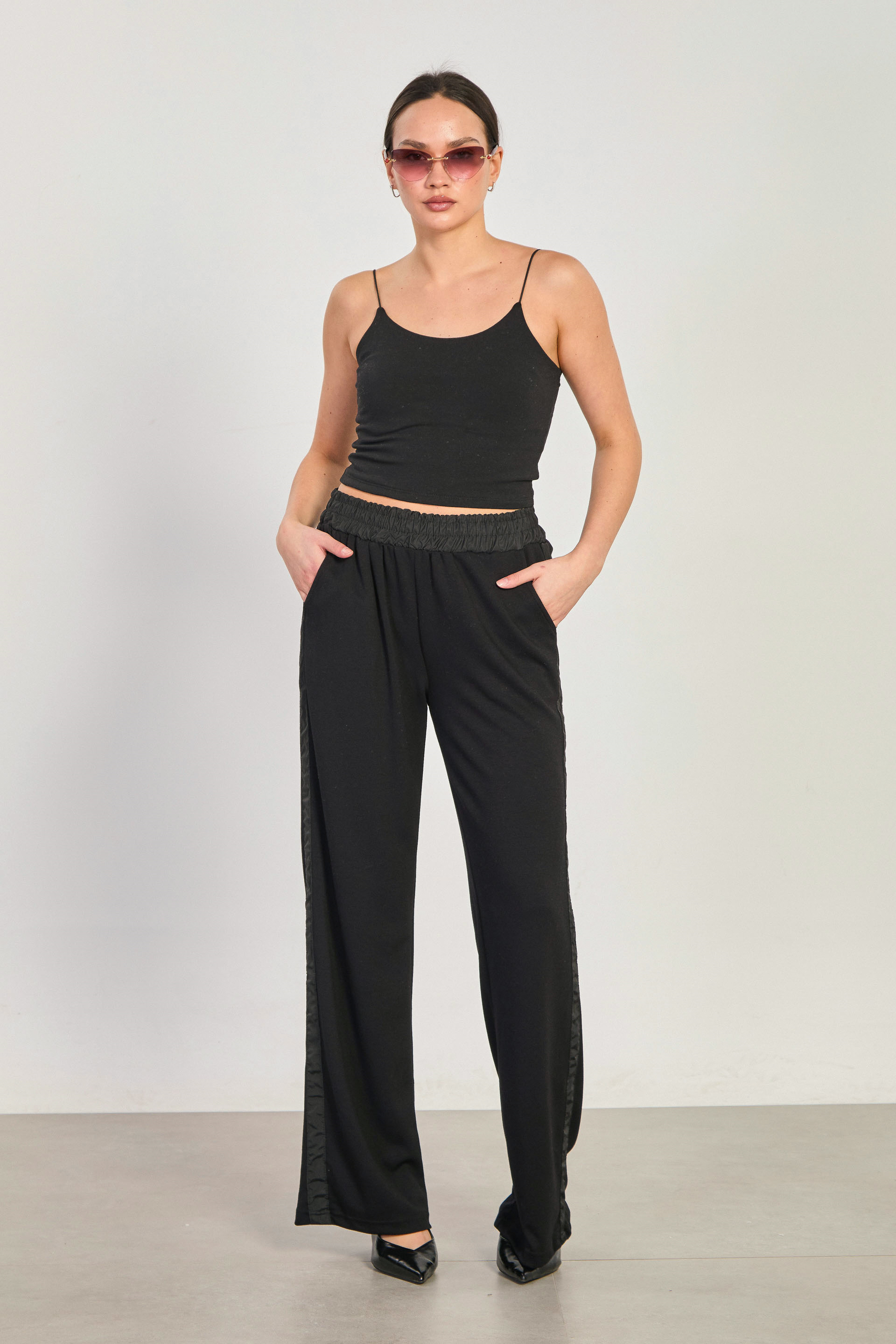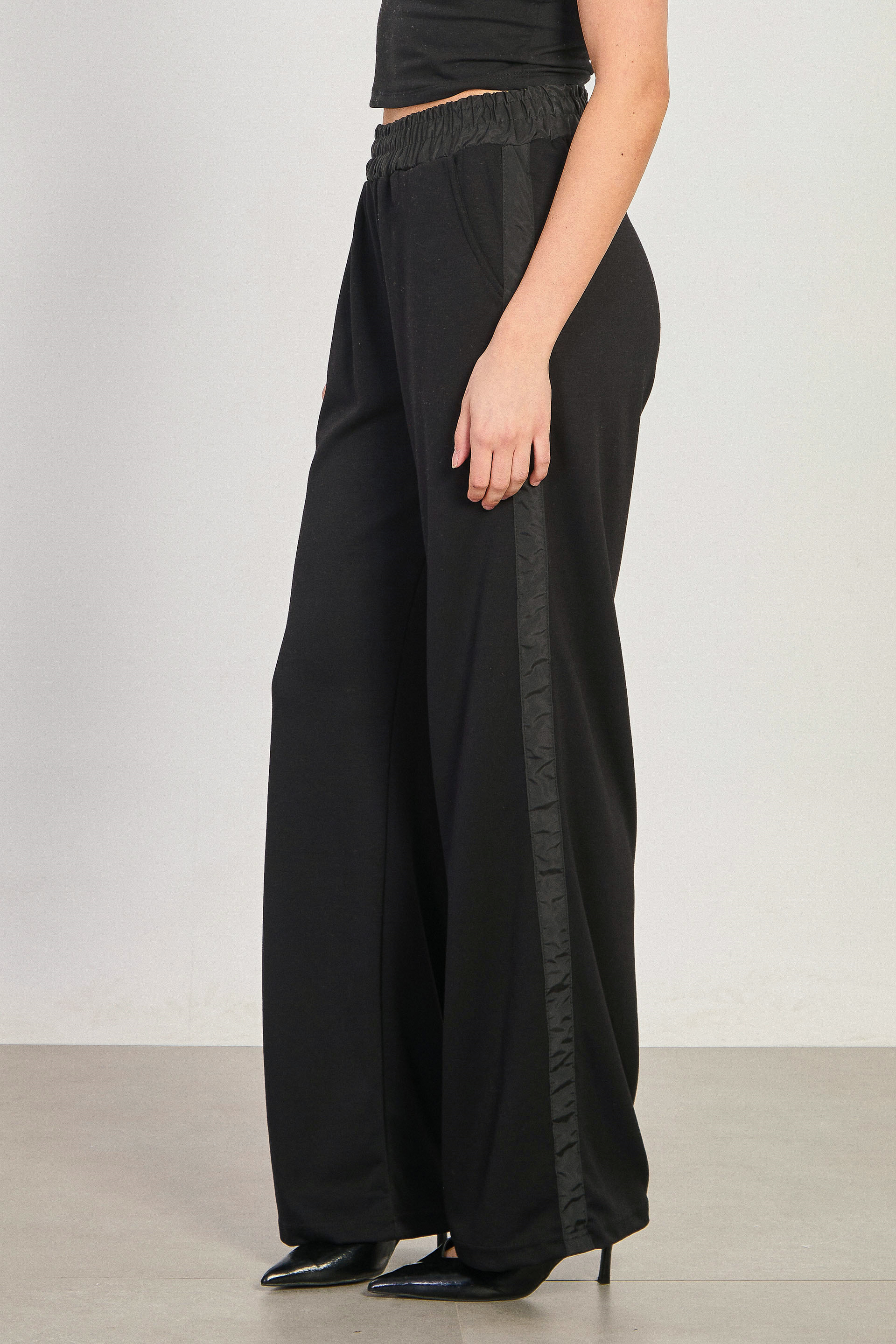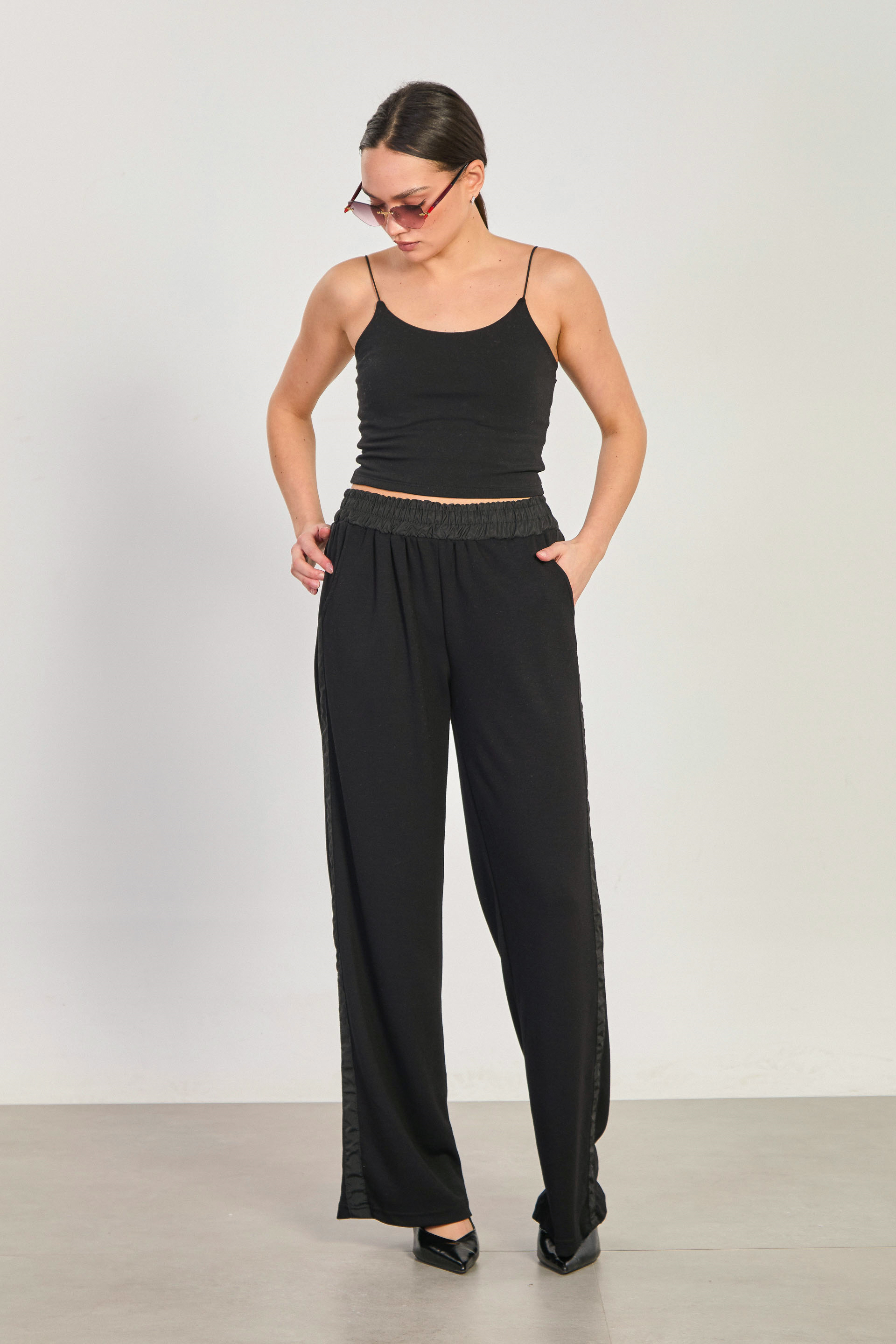 Kadın Şerit Detaylı Bol Paça Eşofman Altı - Siyah