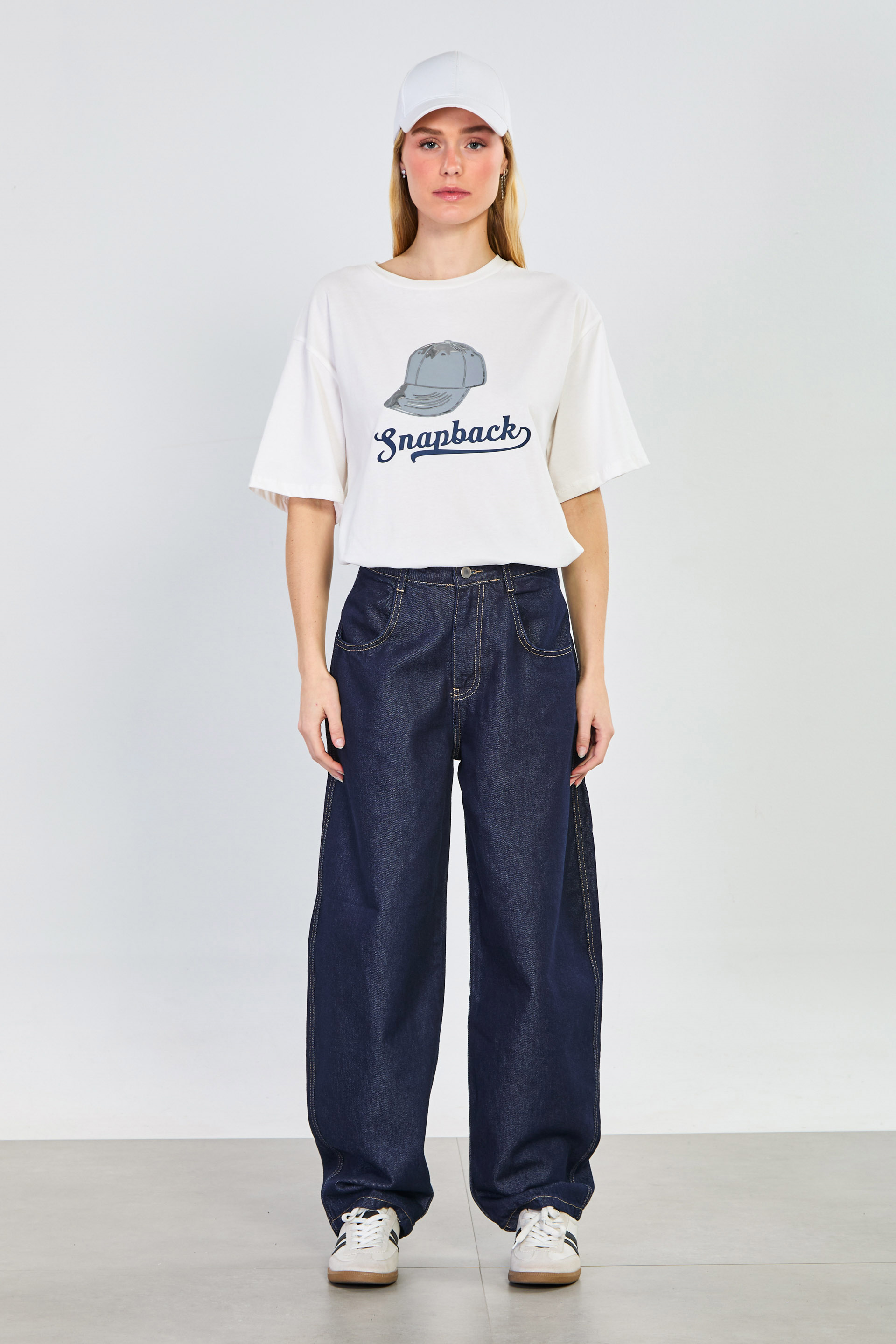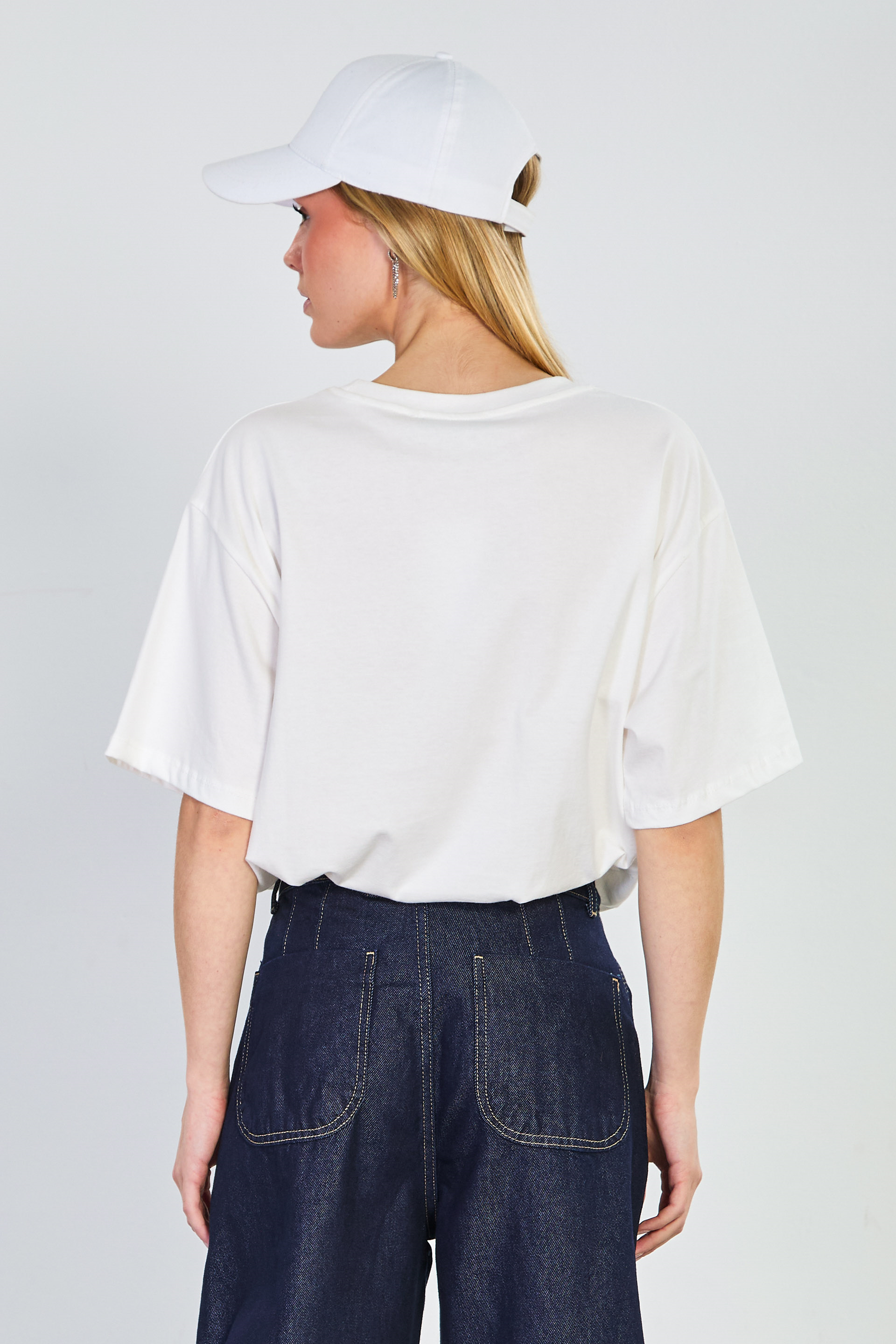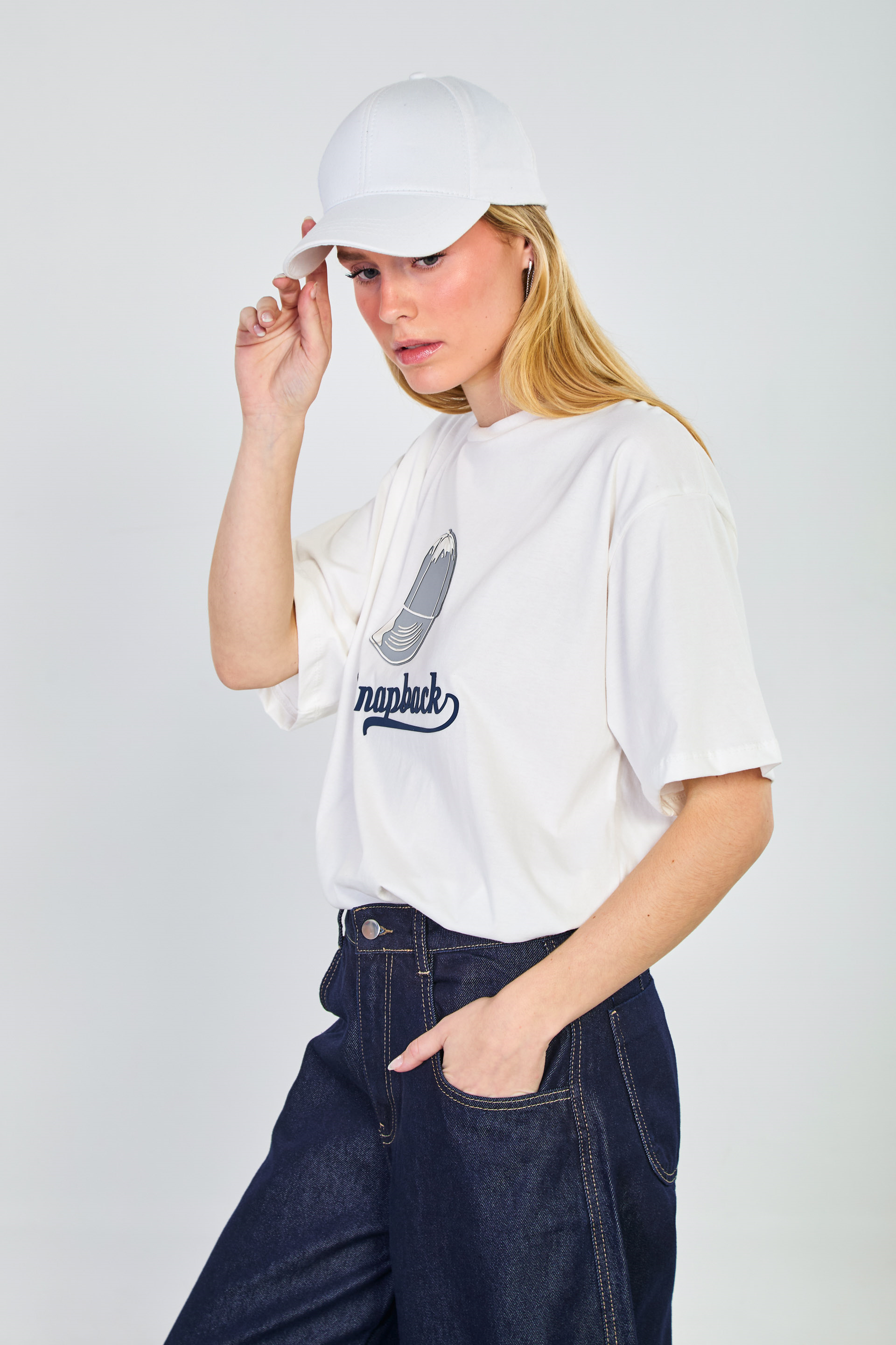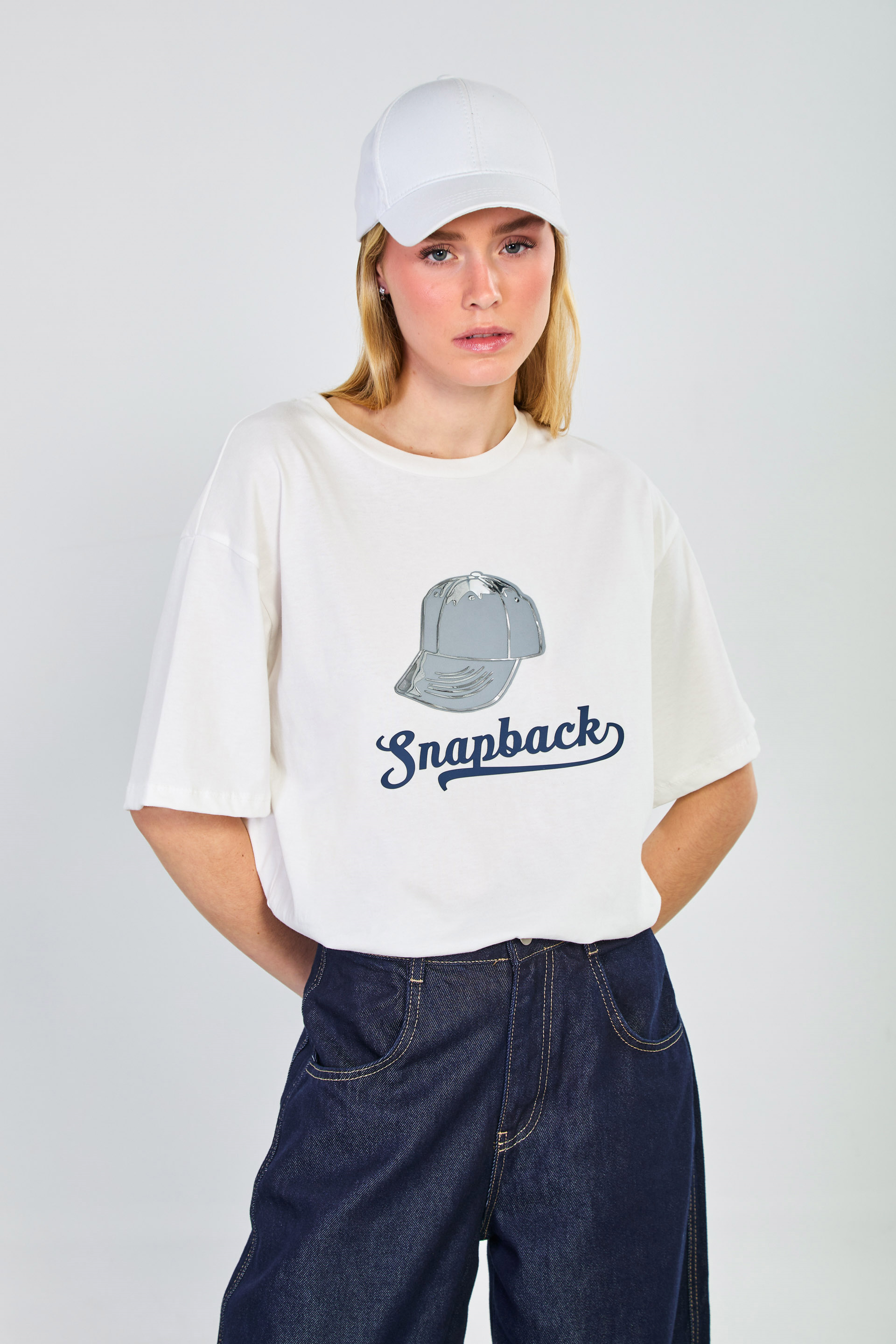 Kadın Snapback Baskılı T-Shirt - Ekru