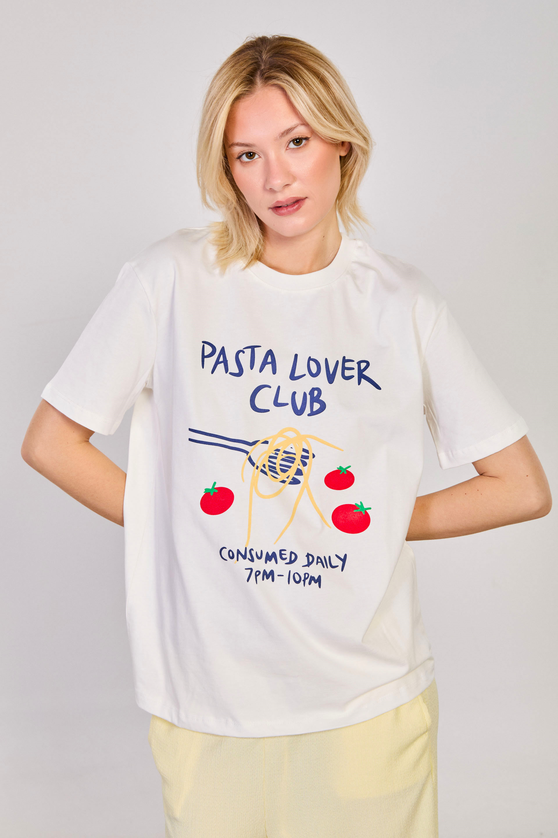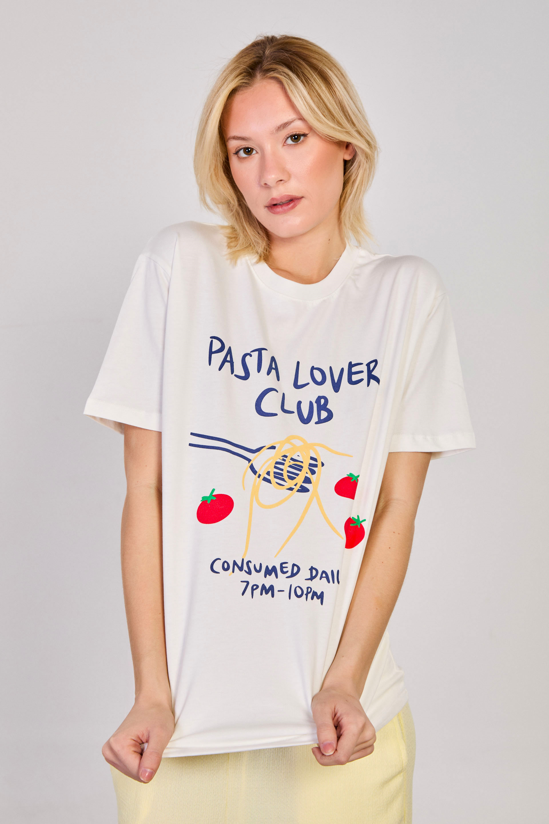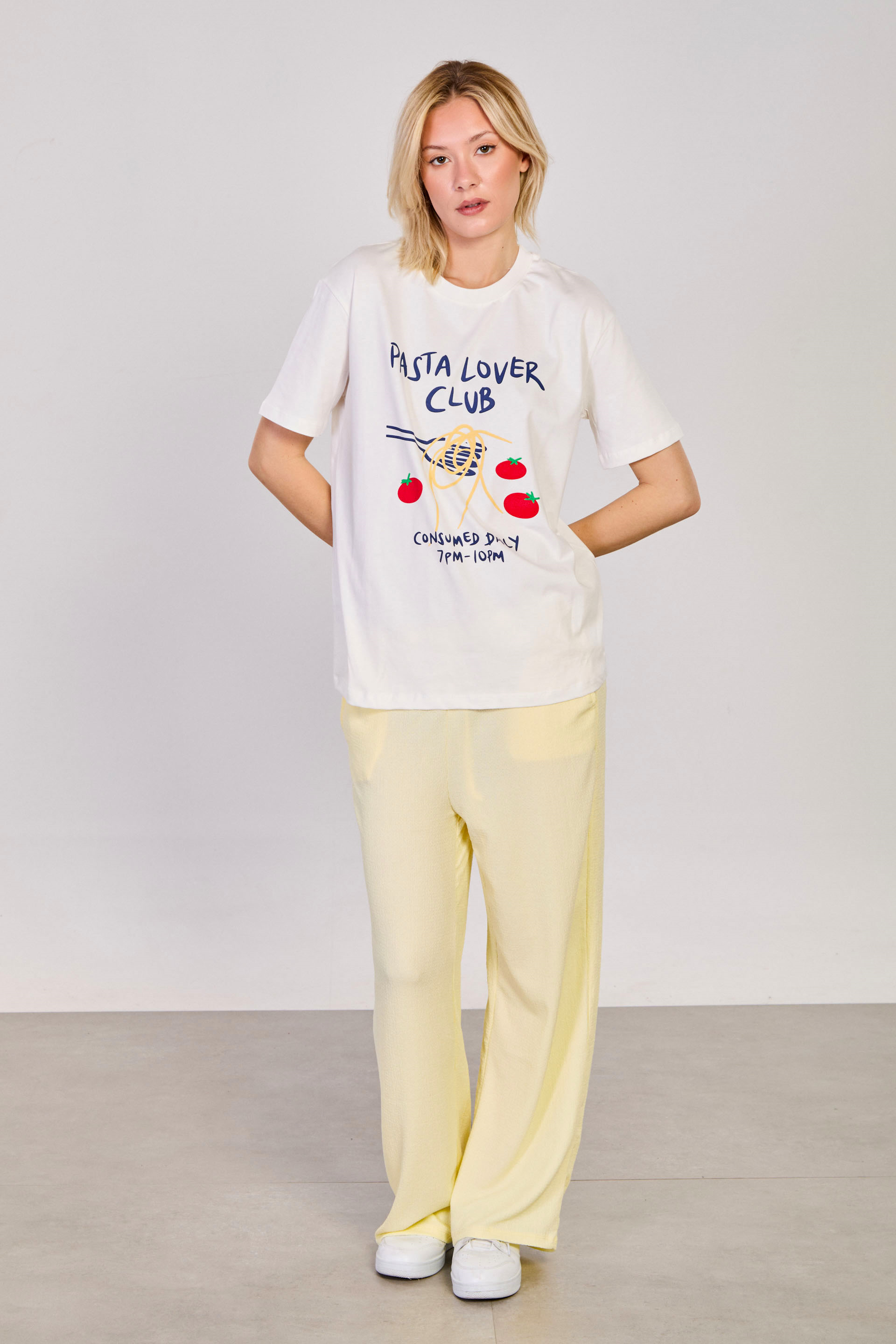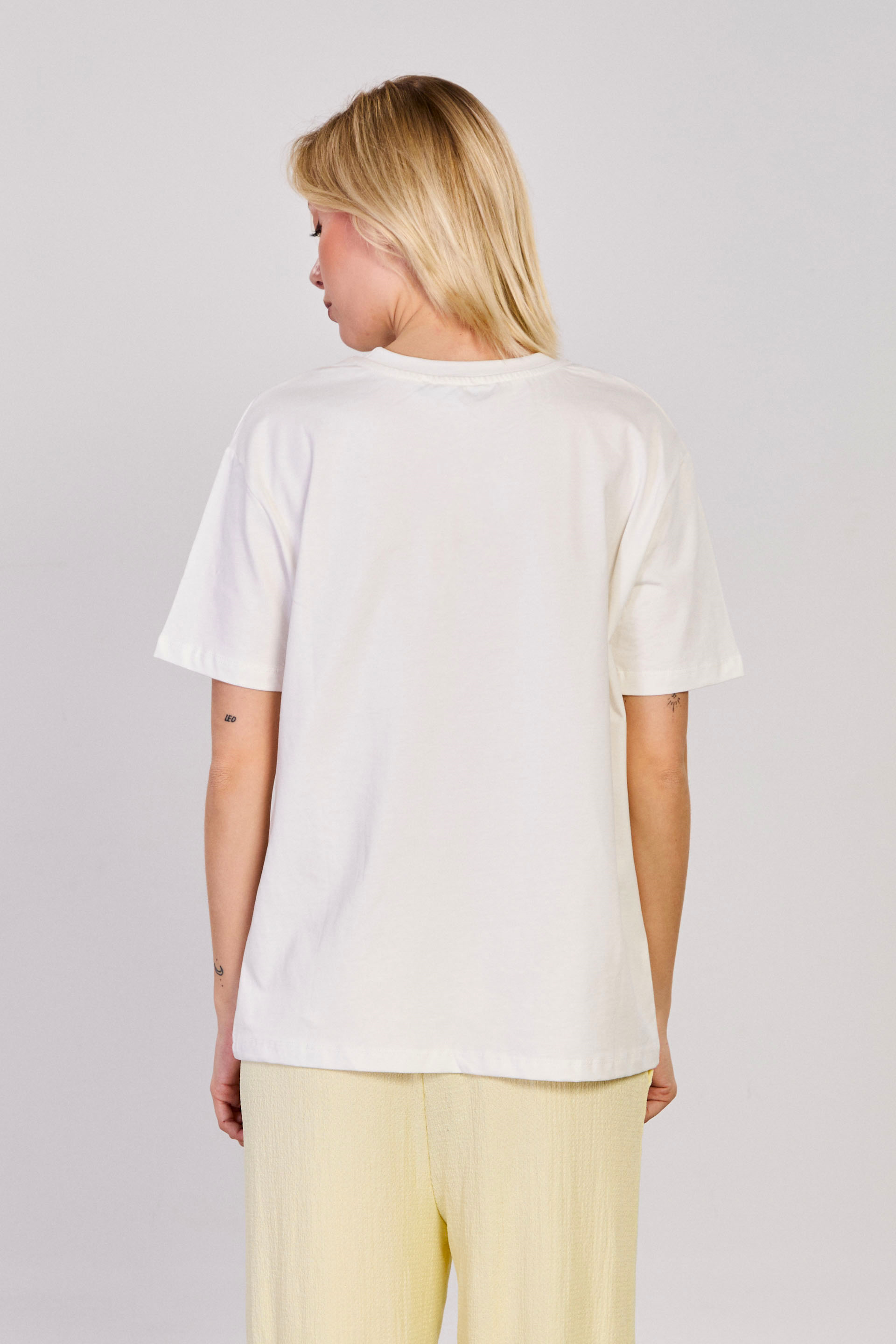 Kadın Spagetti Baskılı T-Shirt - Ekru