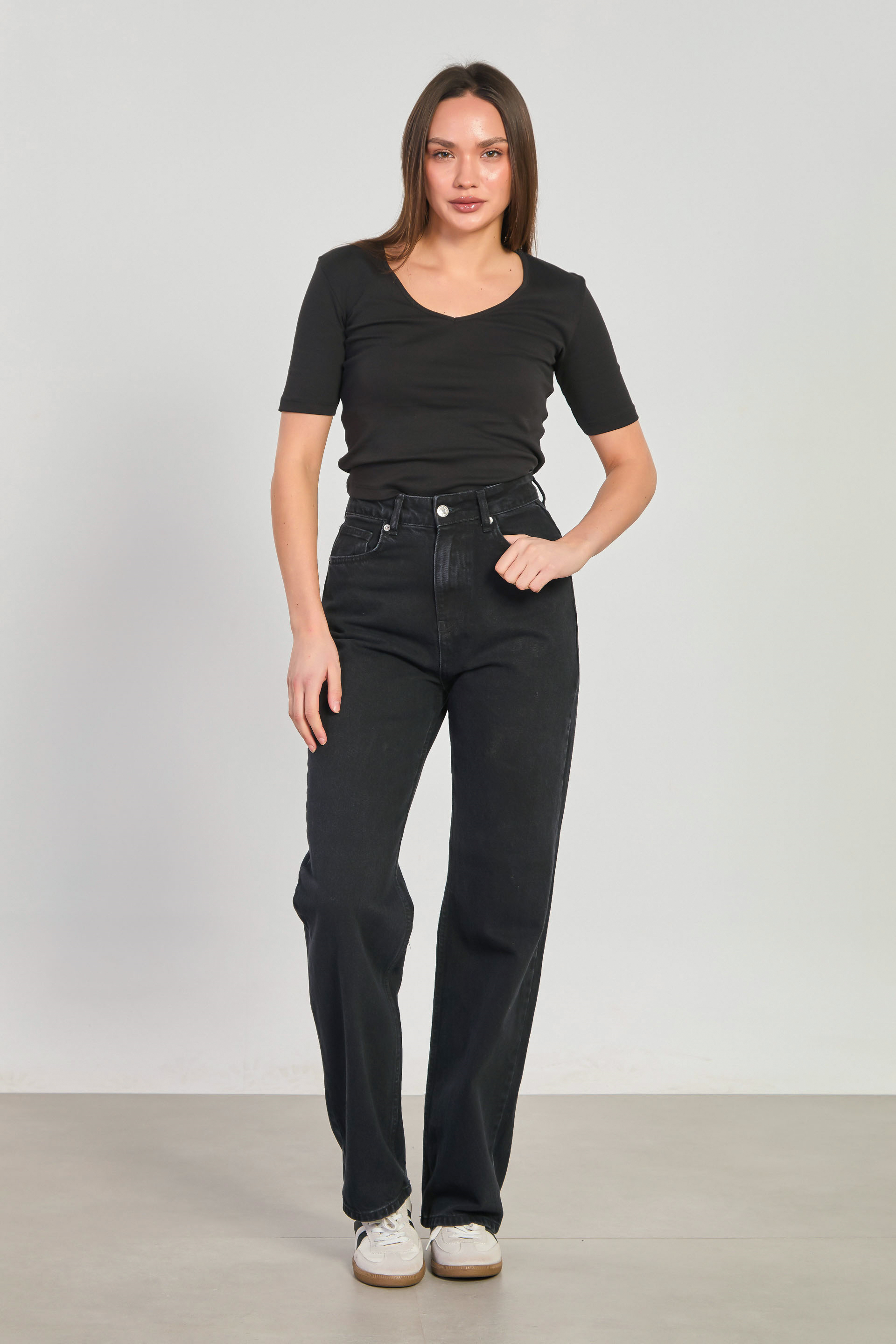 Kadın Straight Jean Pantolon - Siyah