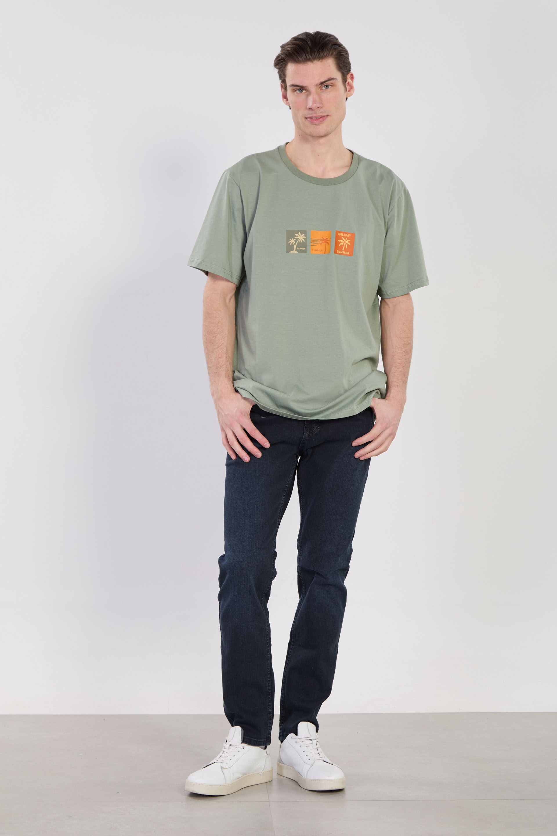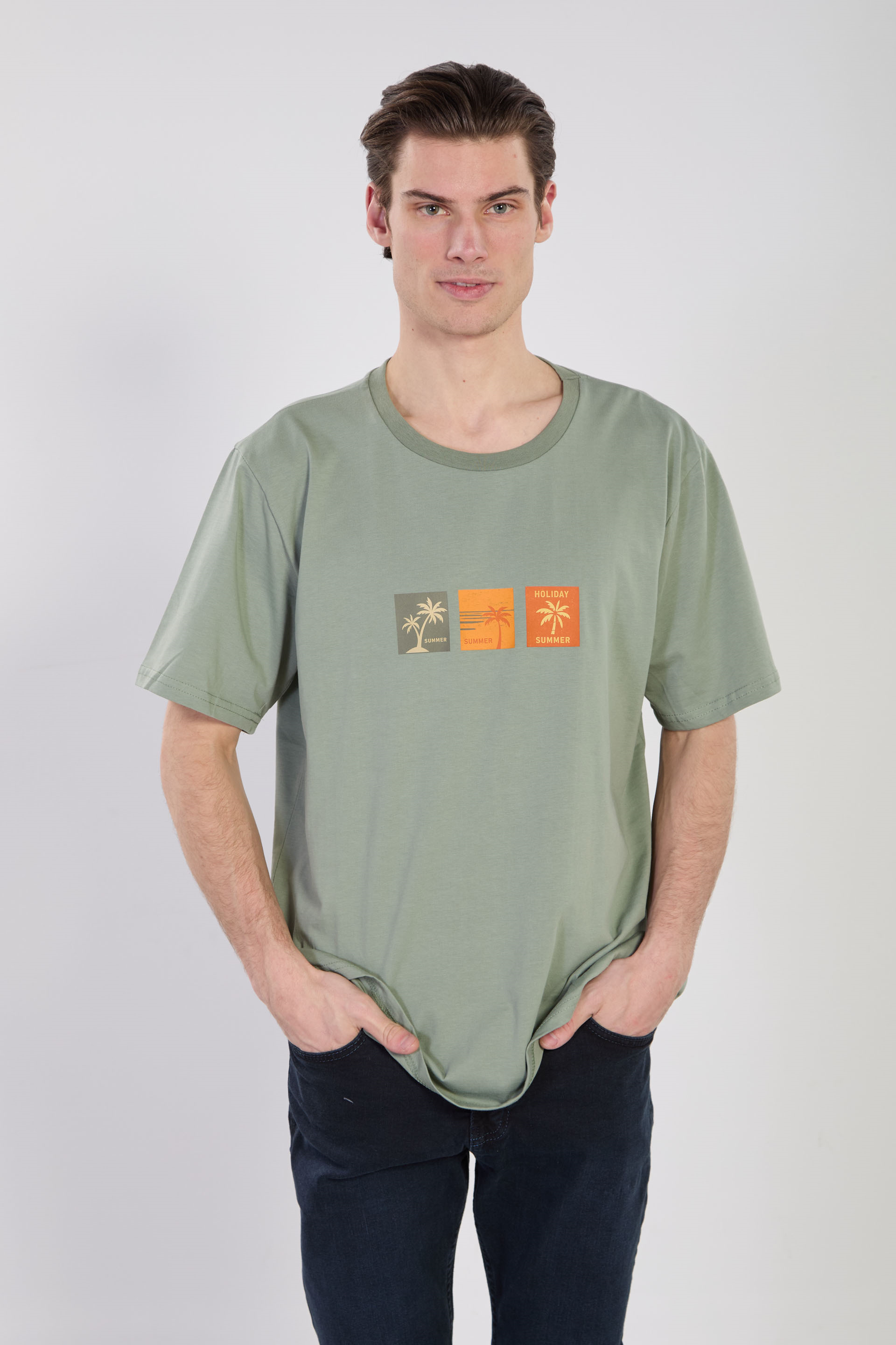 Erkek Summer Baskılı T-Shirt - Buz Yeşili