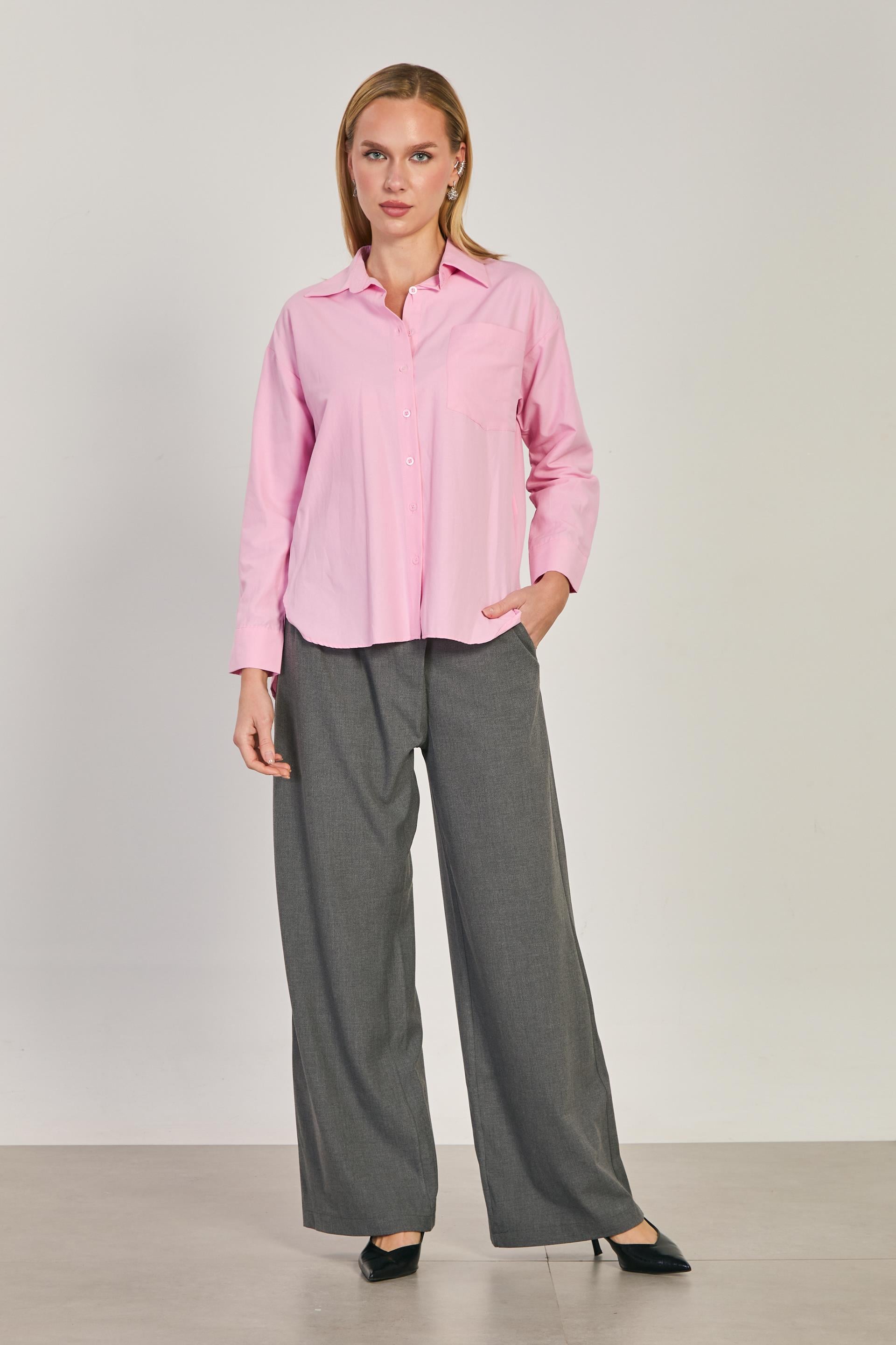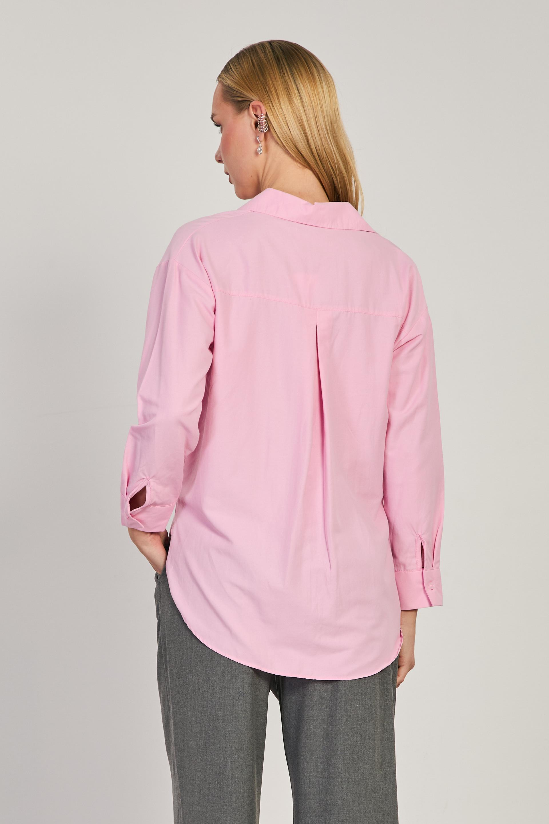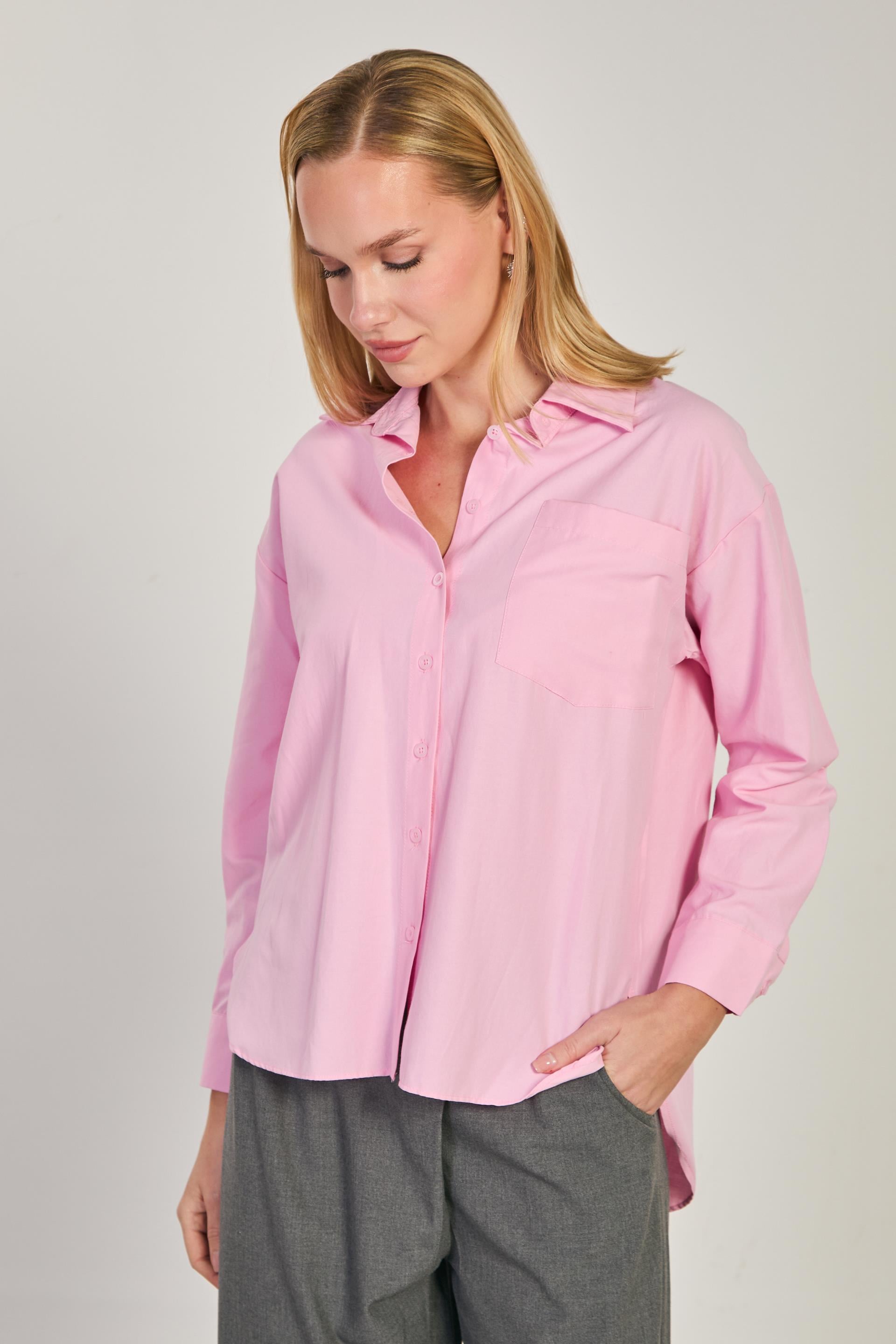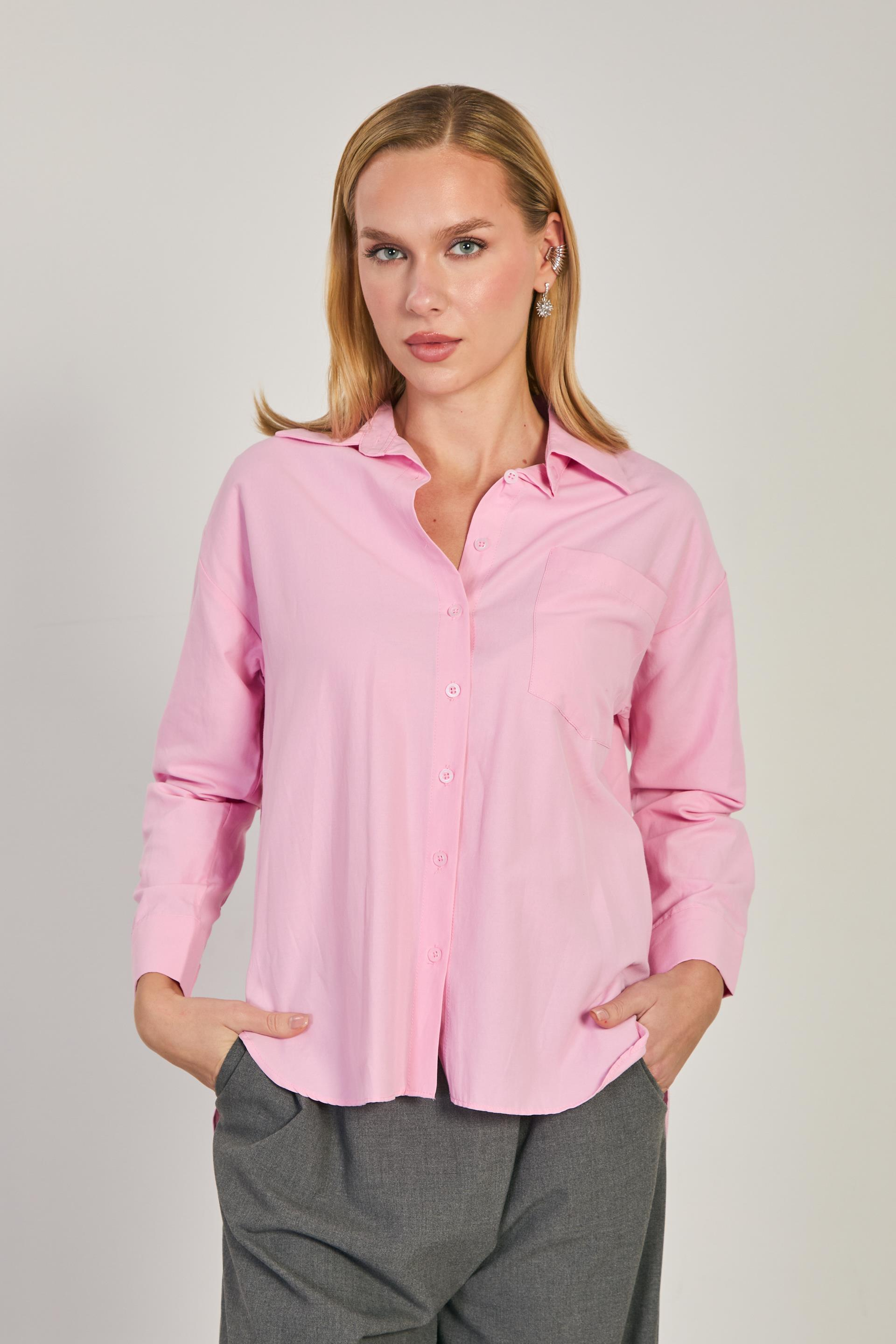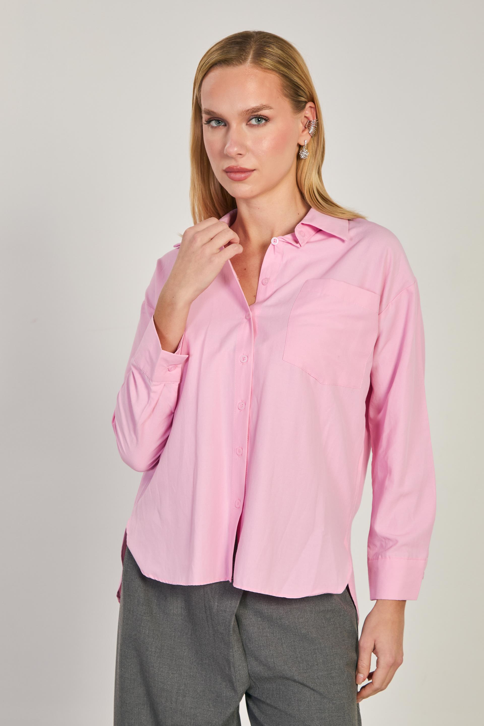 Kadın Tek Cepli Uzun Kol Gömlek - Pembe