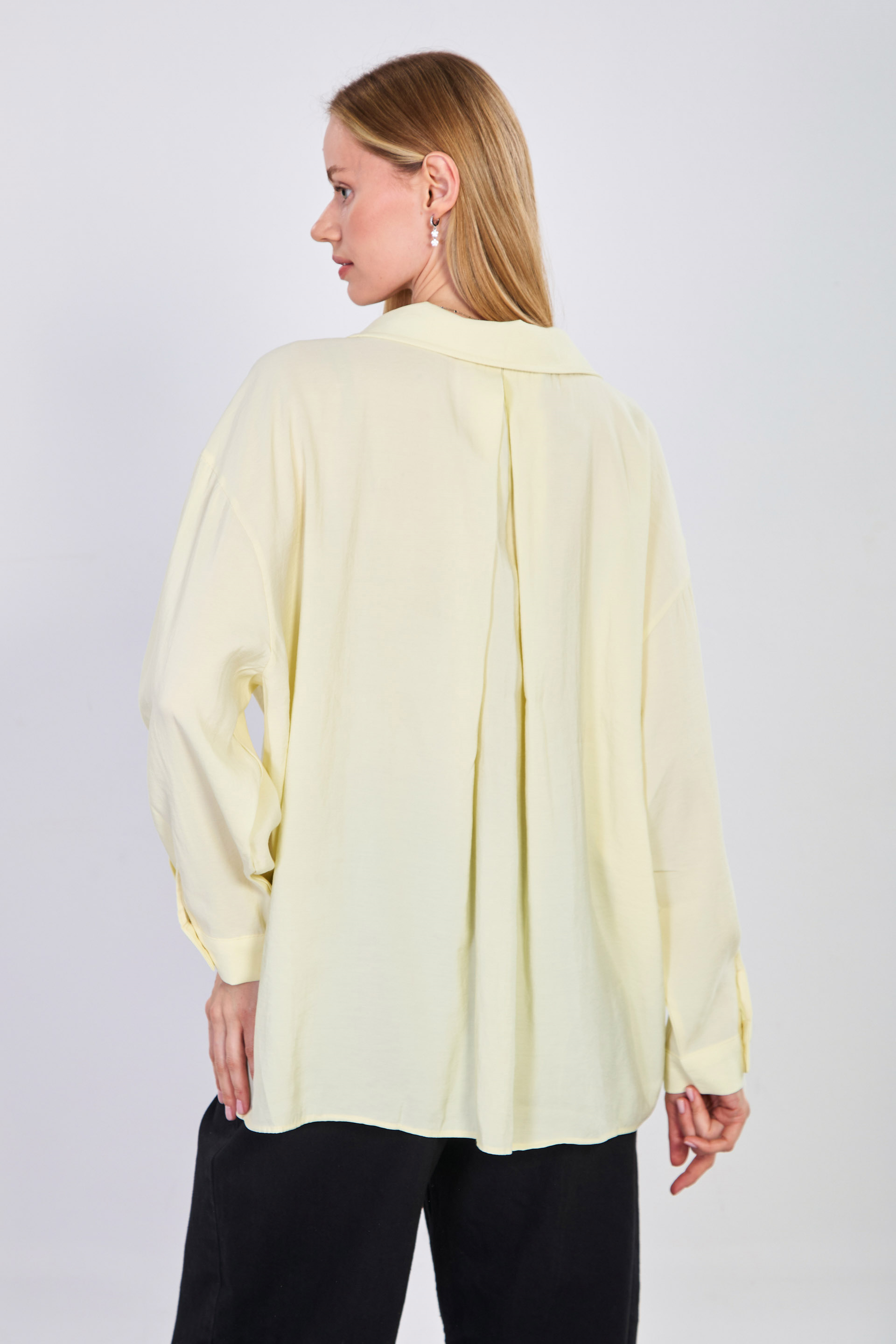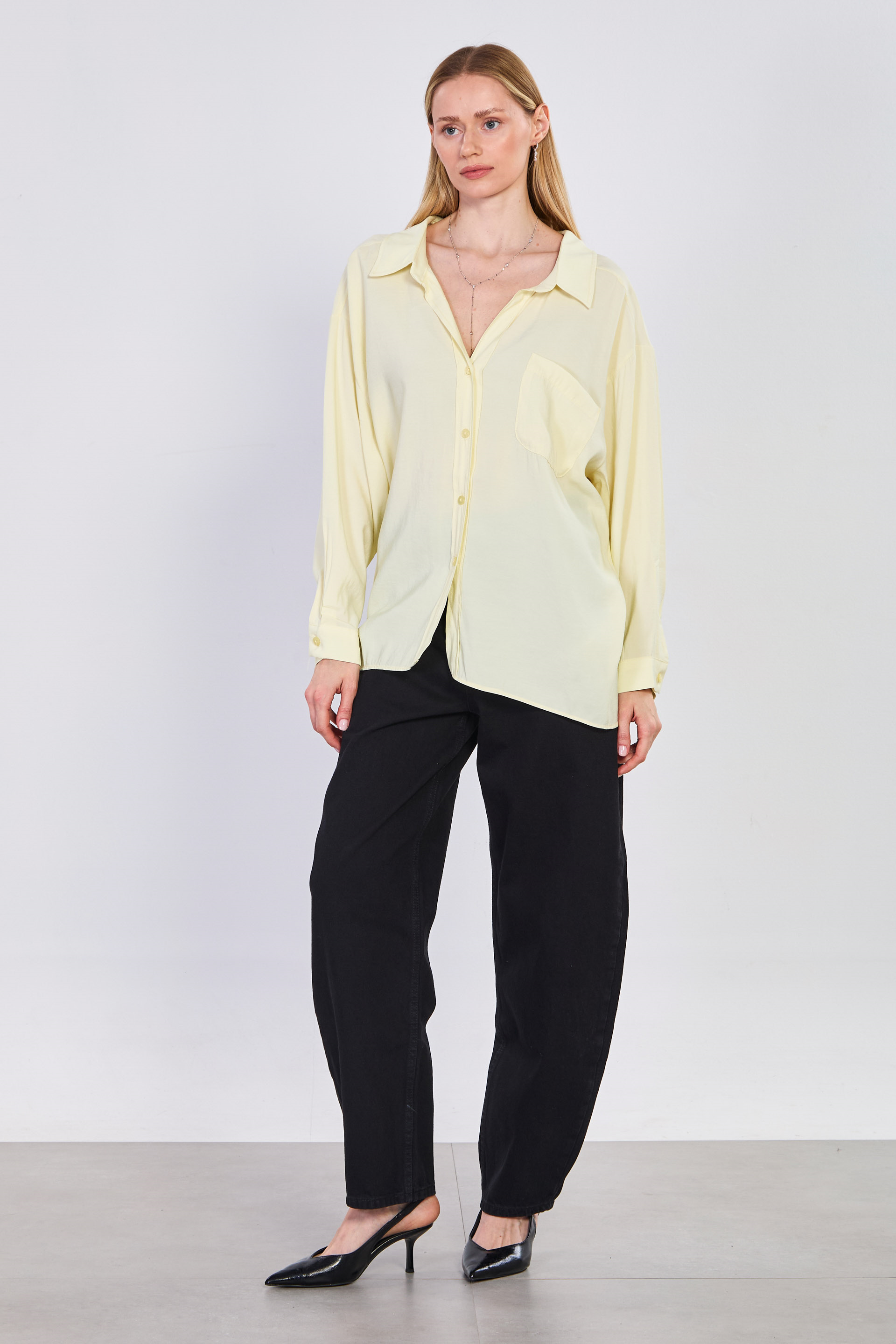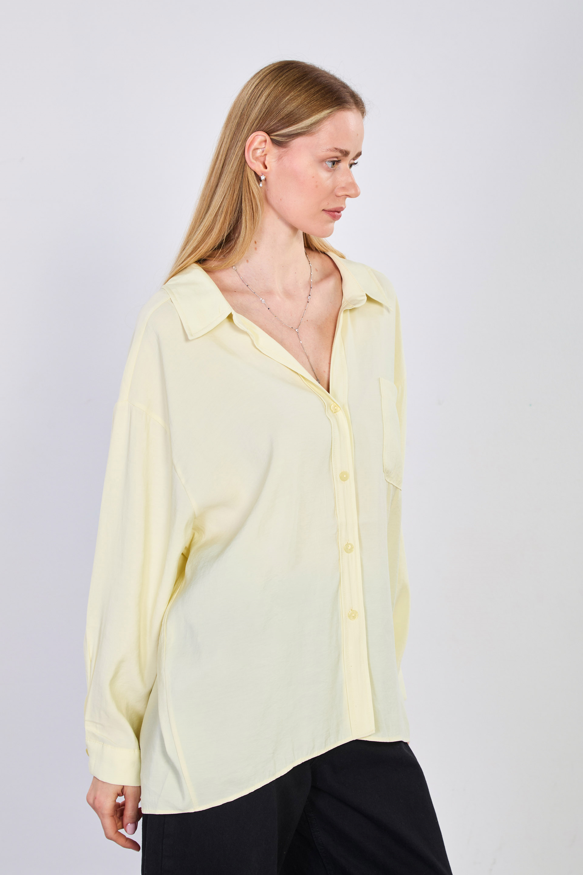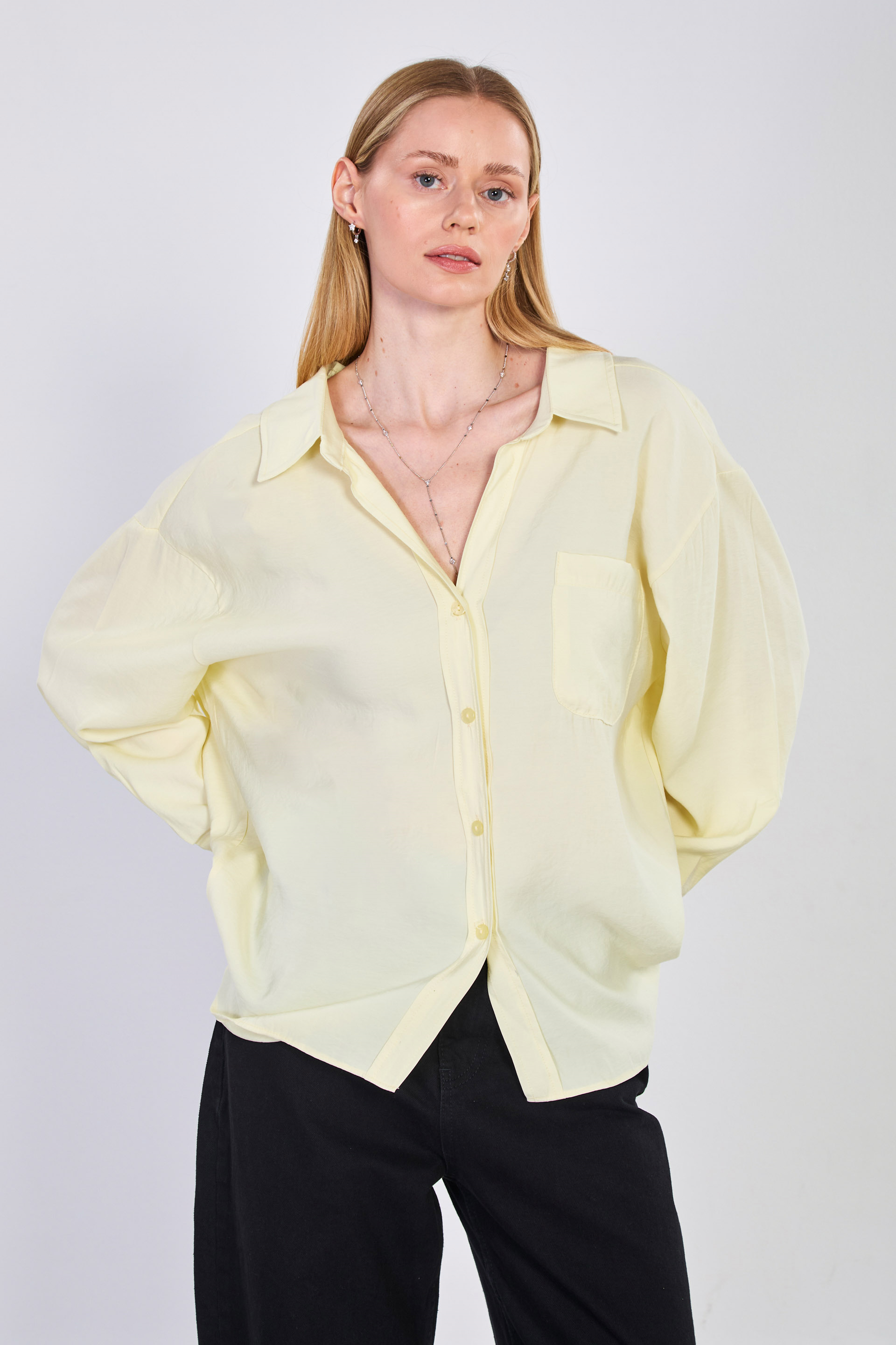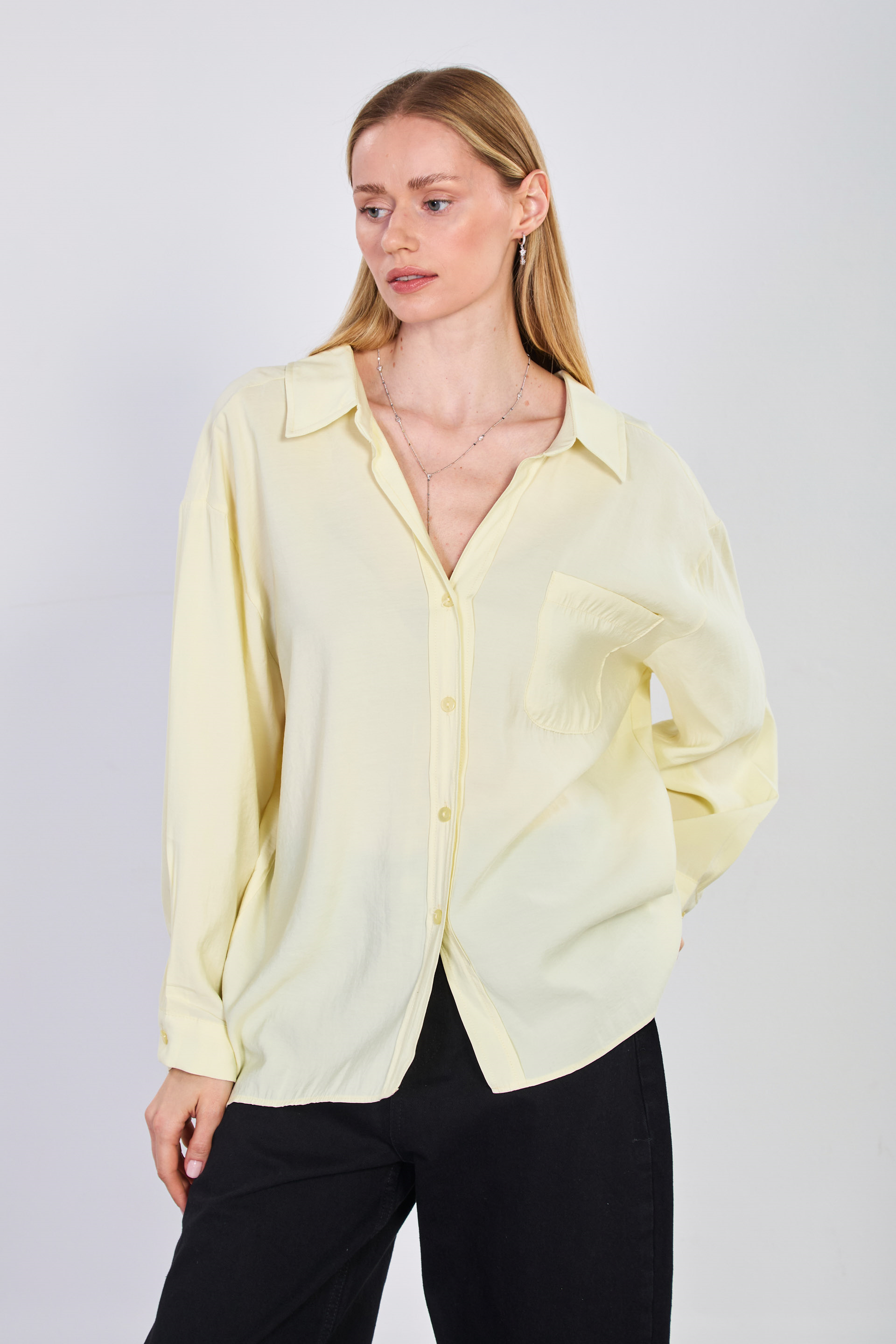 Kadın Tek Cepli V Yaka Gömlek - Sarı