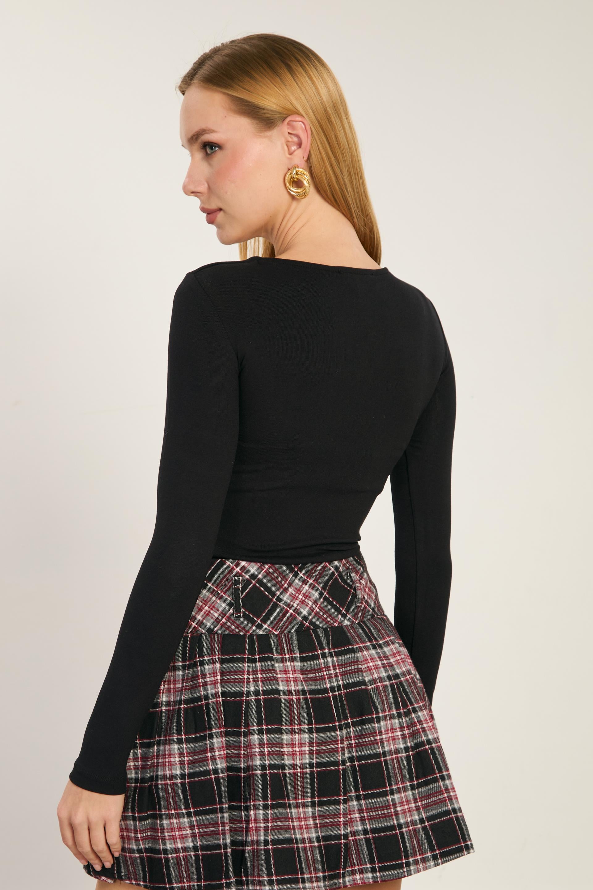 Kadın Toka Detaylı V Yaka Uzun Kol Bluz - Siyah